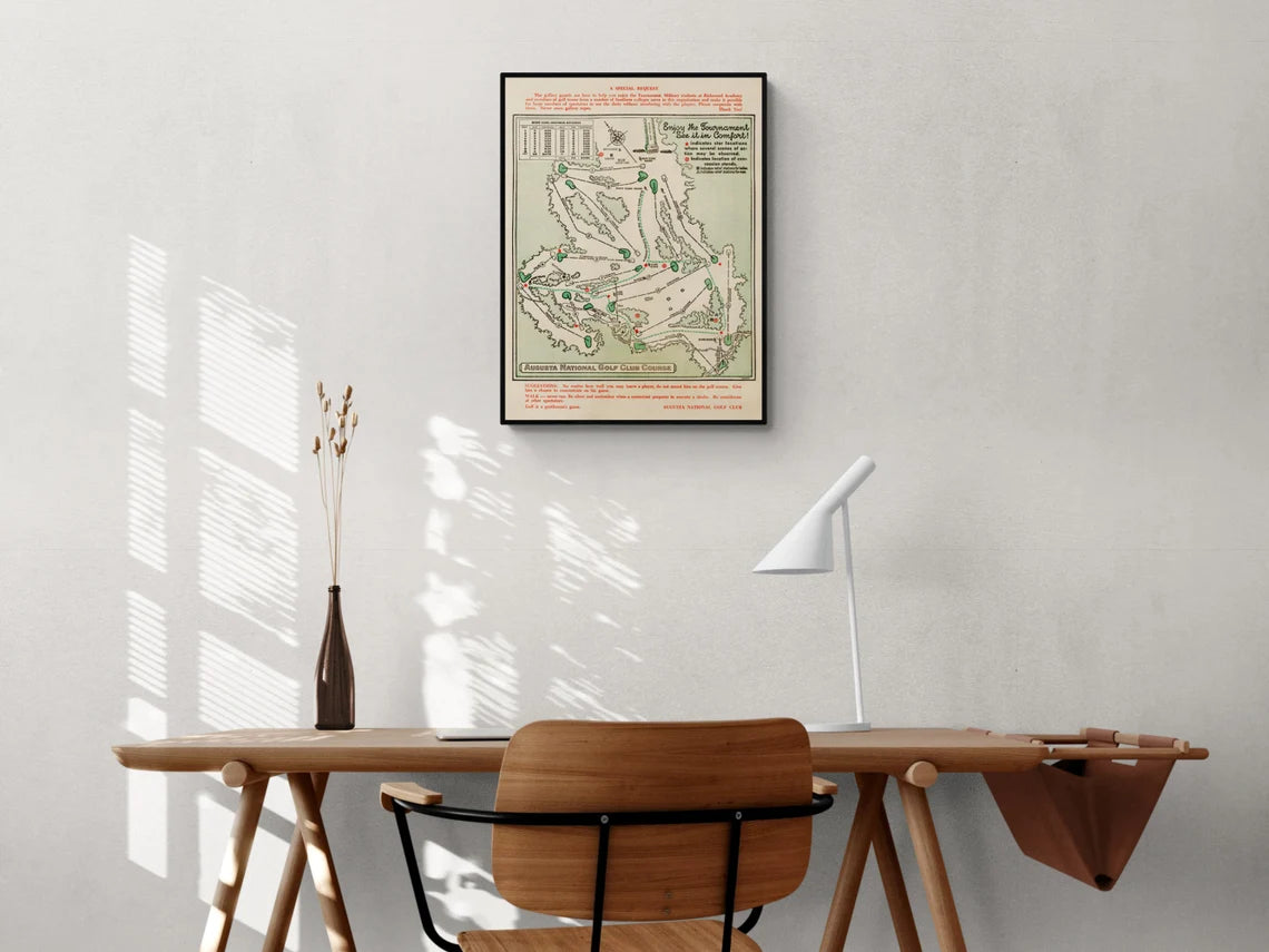 Capture the beauty and prestige of Augusta National Golf Club with this stunning canvas print. Featuring a detailed rendering of the iconic course, this piece is perfect for golf enthusiasts who appreciate the history and elegance of one of the world’s most famous golf courses.
