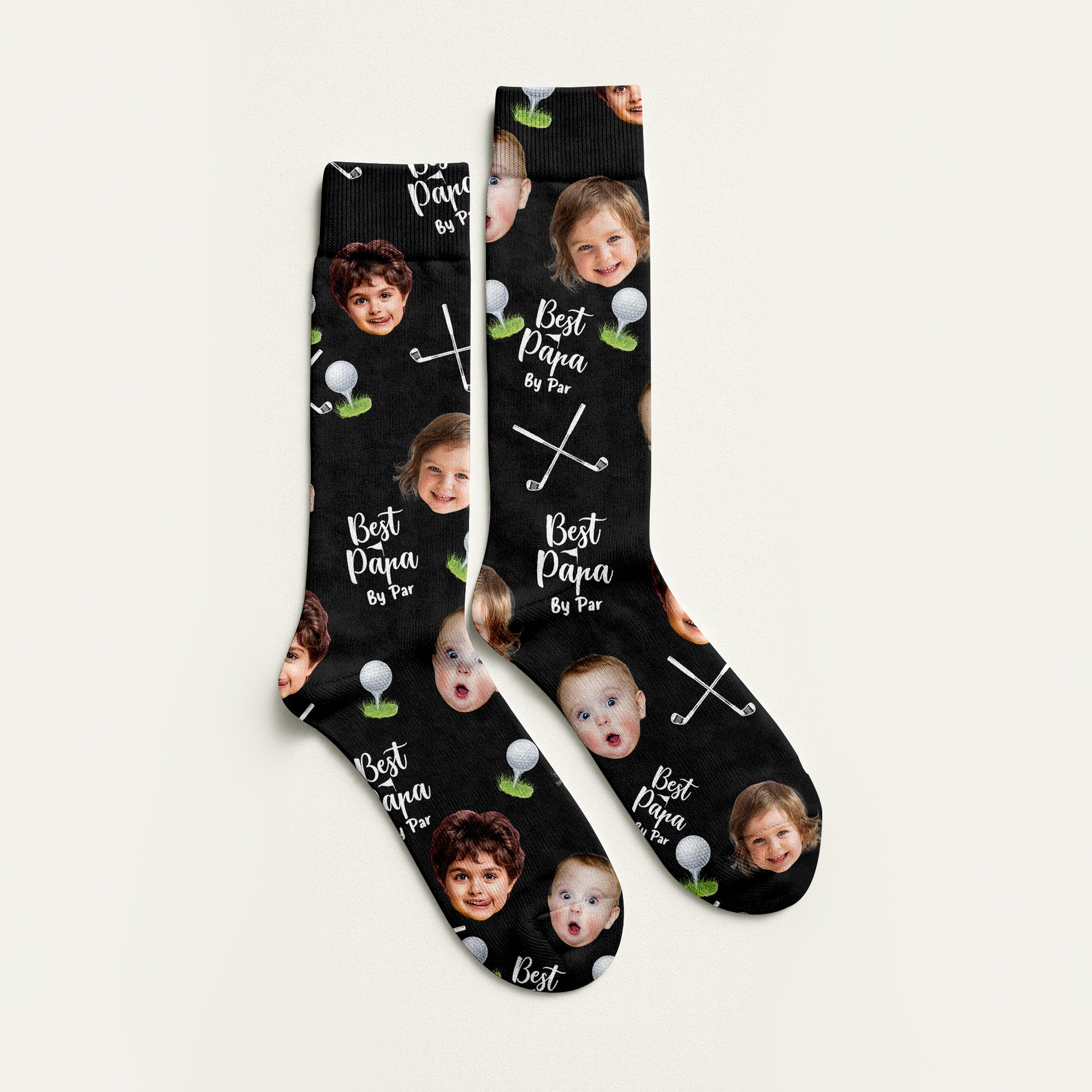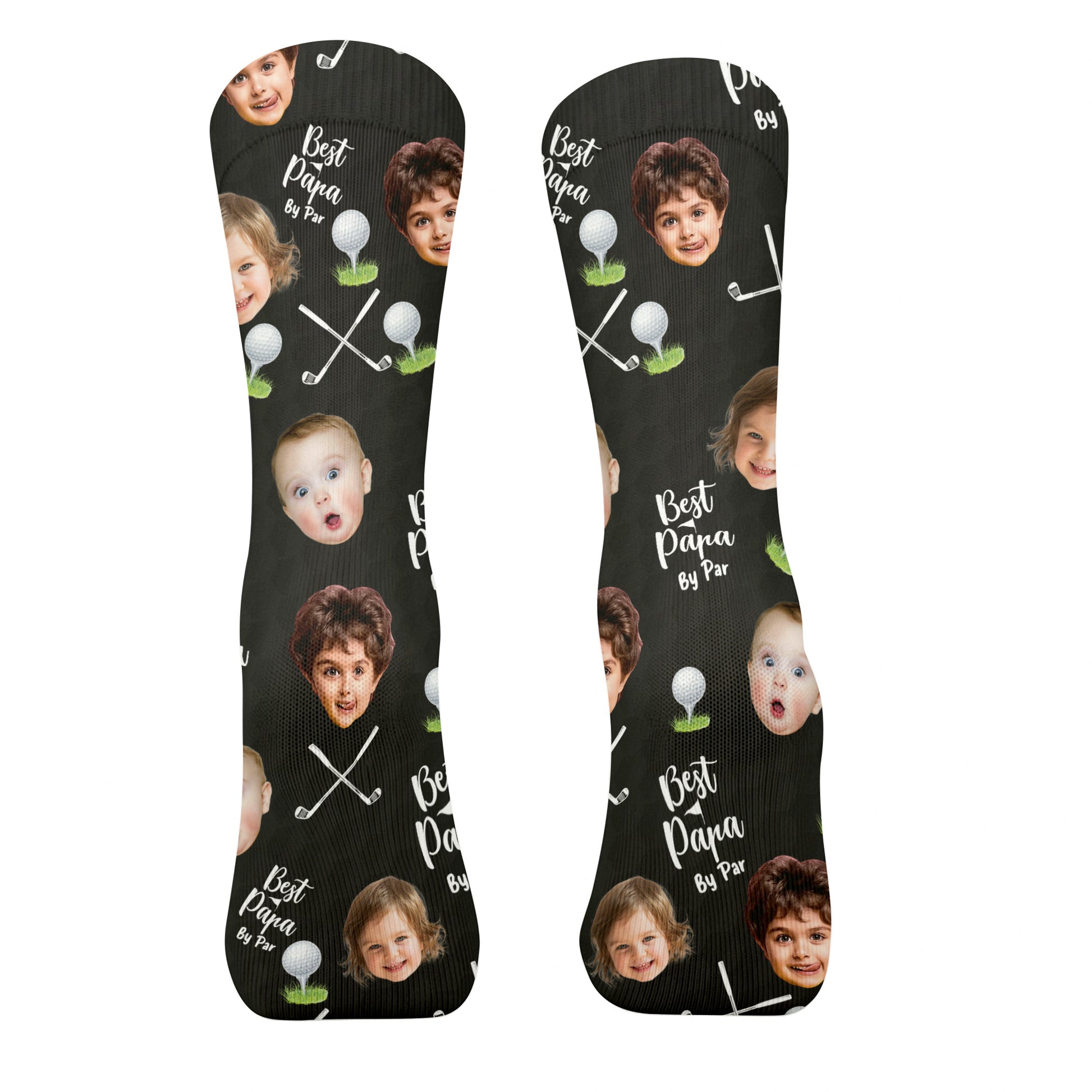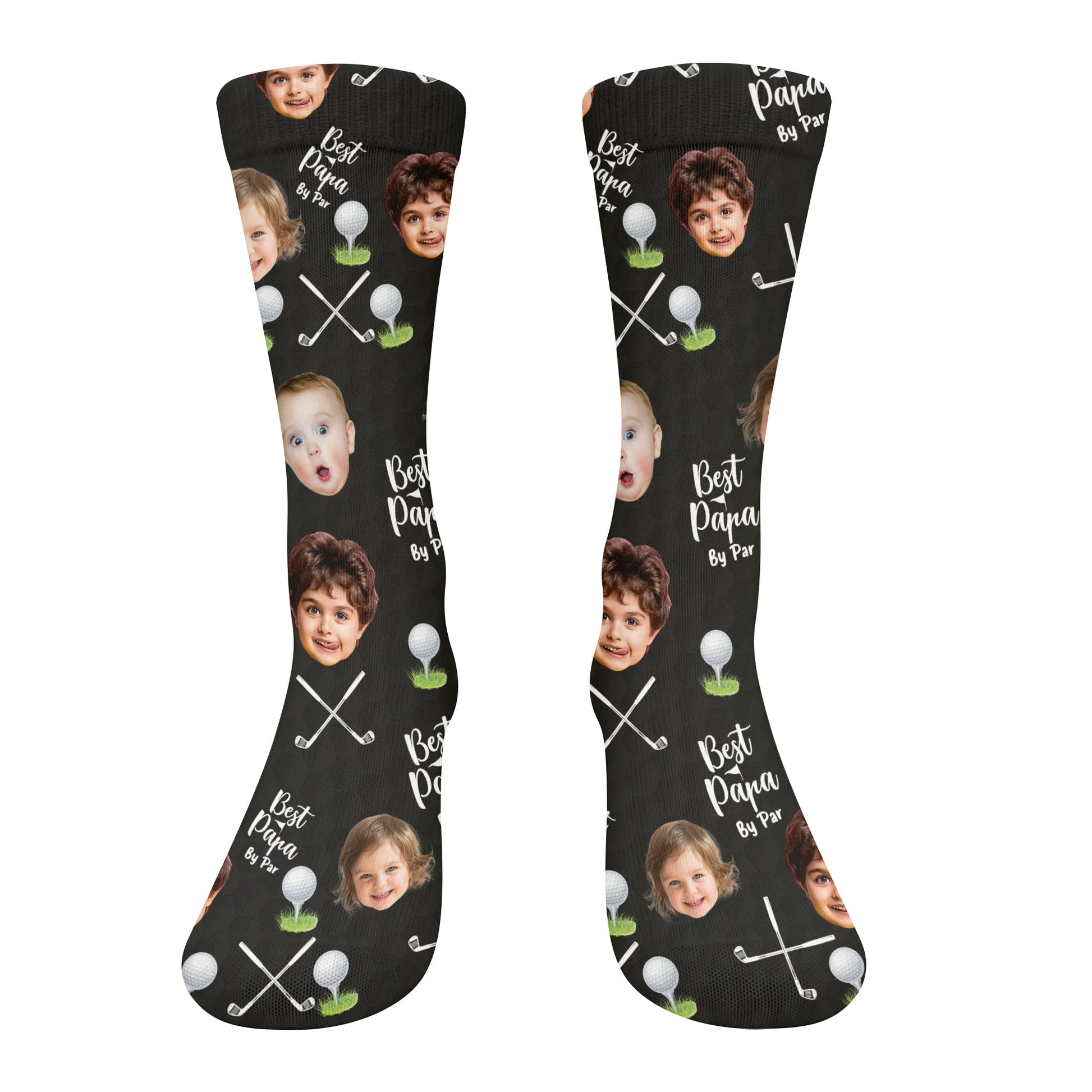 Best Dad By Par Custom Kids Face Black Socks, Personalized Socks With Photos, Dad Golf Gift
