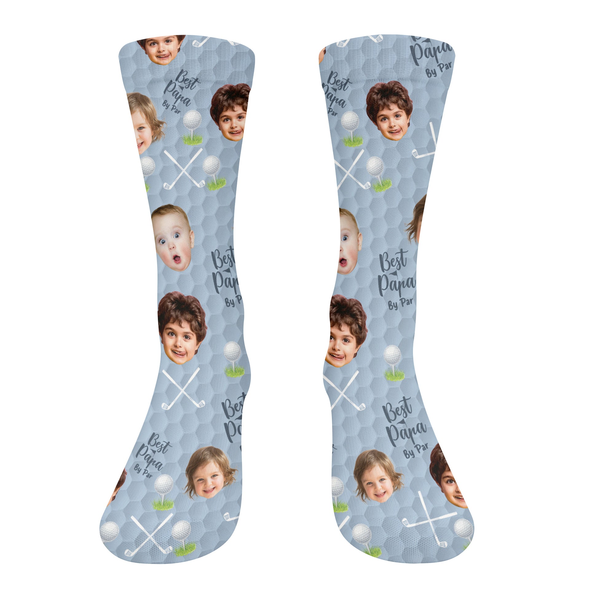 Best Dad By Par Custom Kids Face Blue Socks, Personalized Socks With Photos, Dad Golf Gift