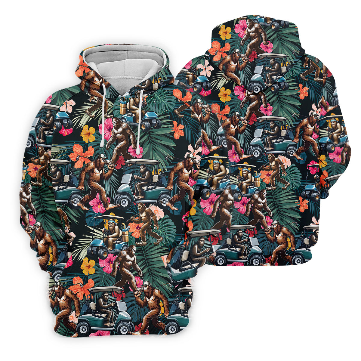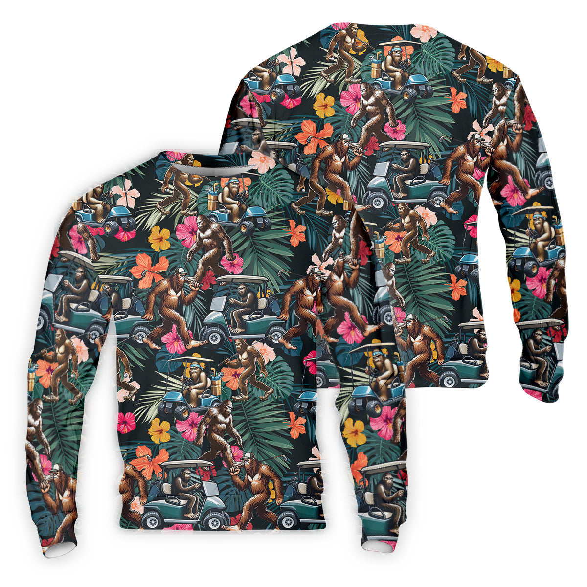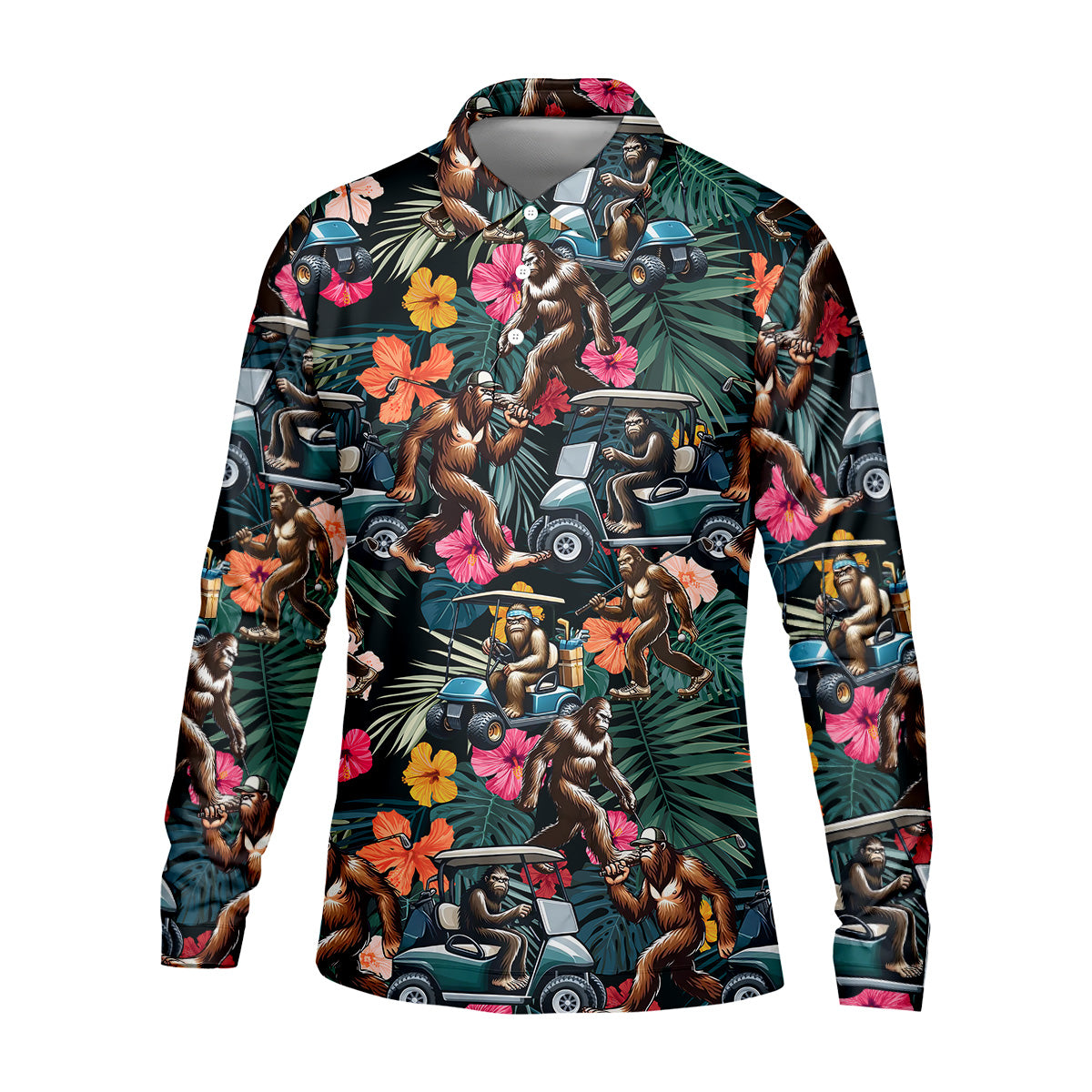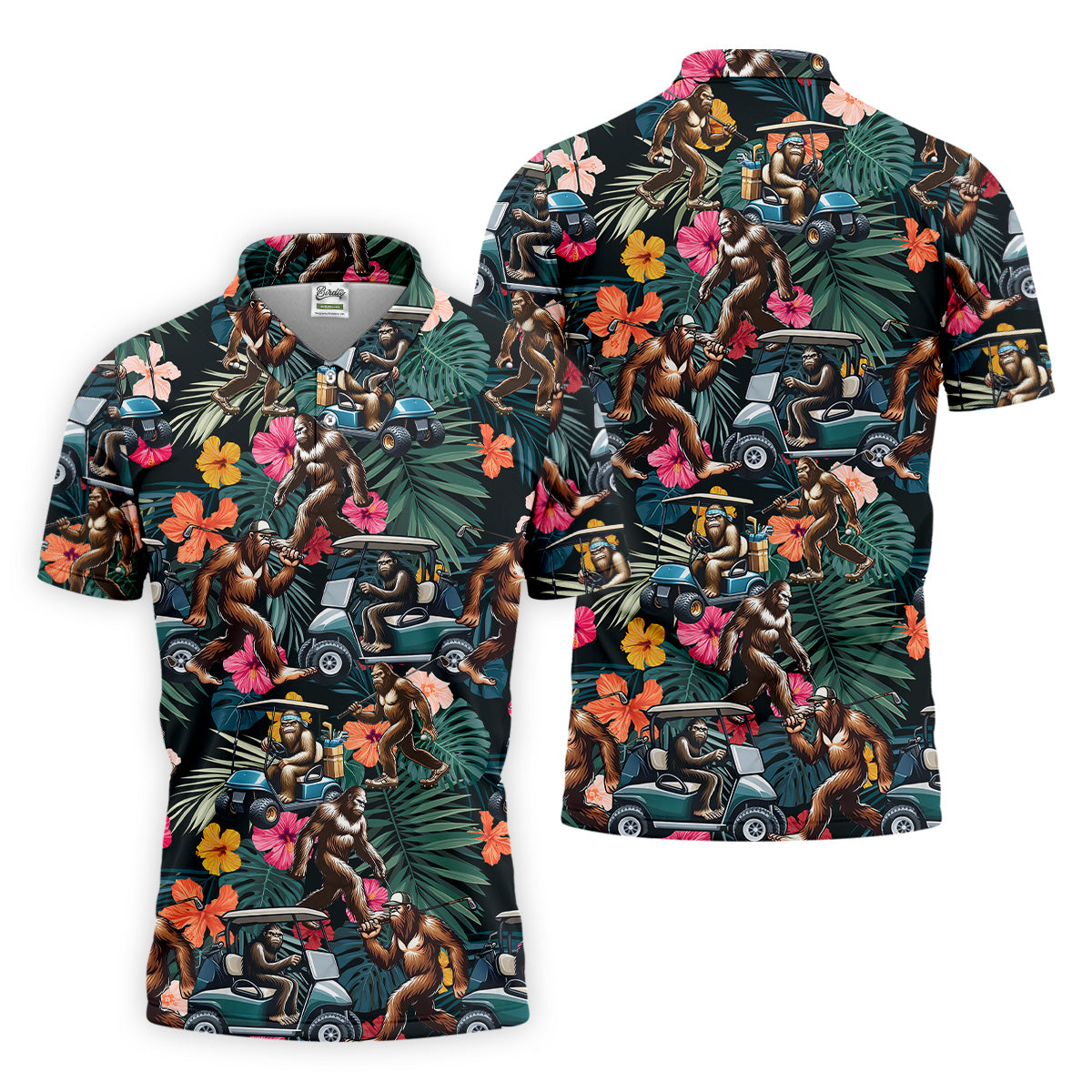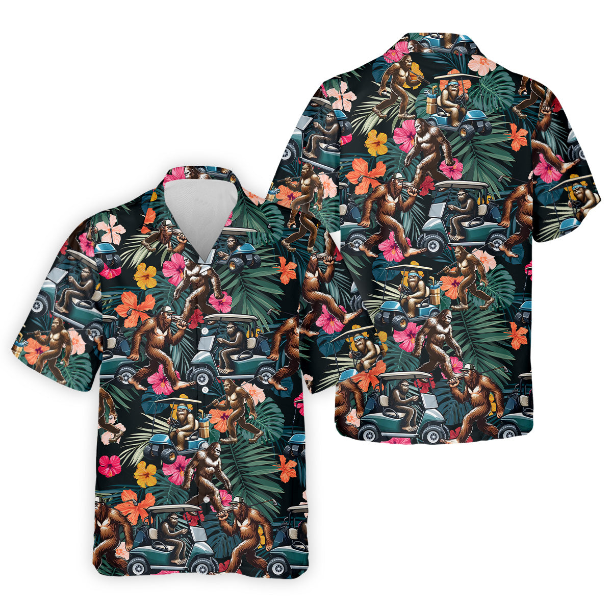 Bigfoot Golf Cart Tropical Floral Golf Tops For Men, Hawaiian Golf Shirts, Golf Gift For Men
