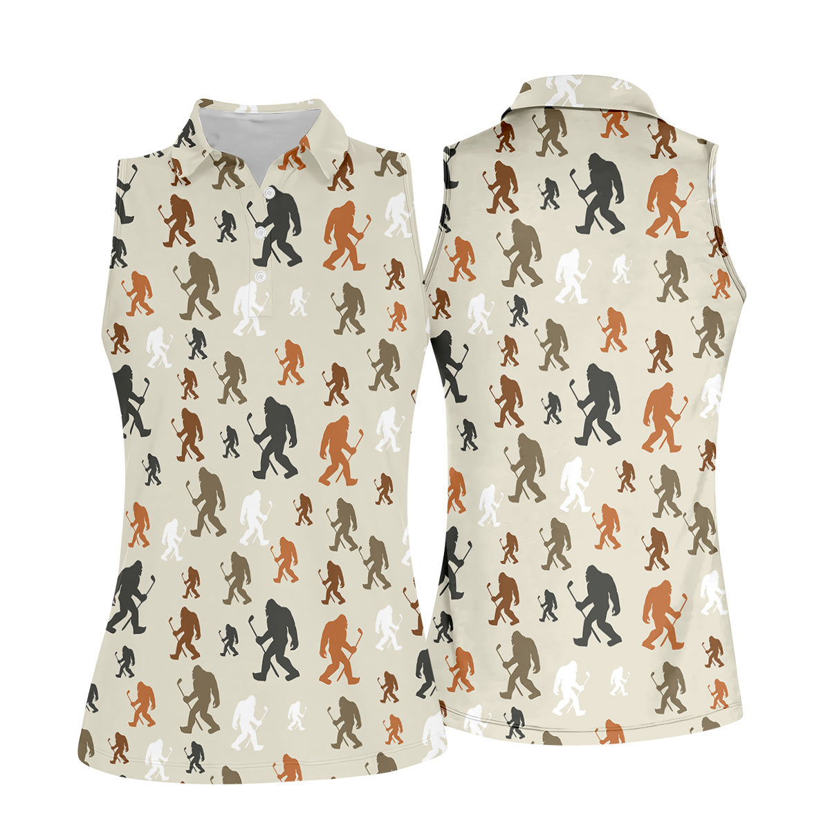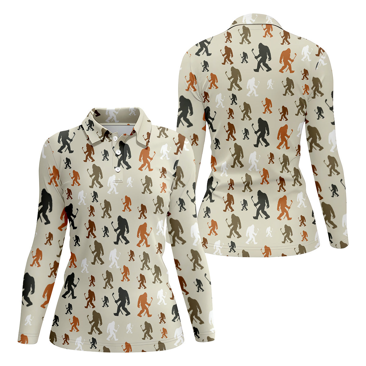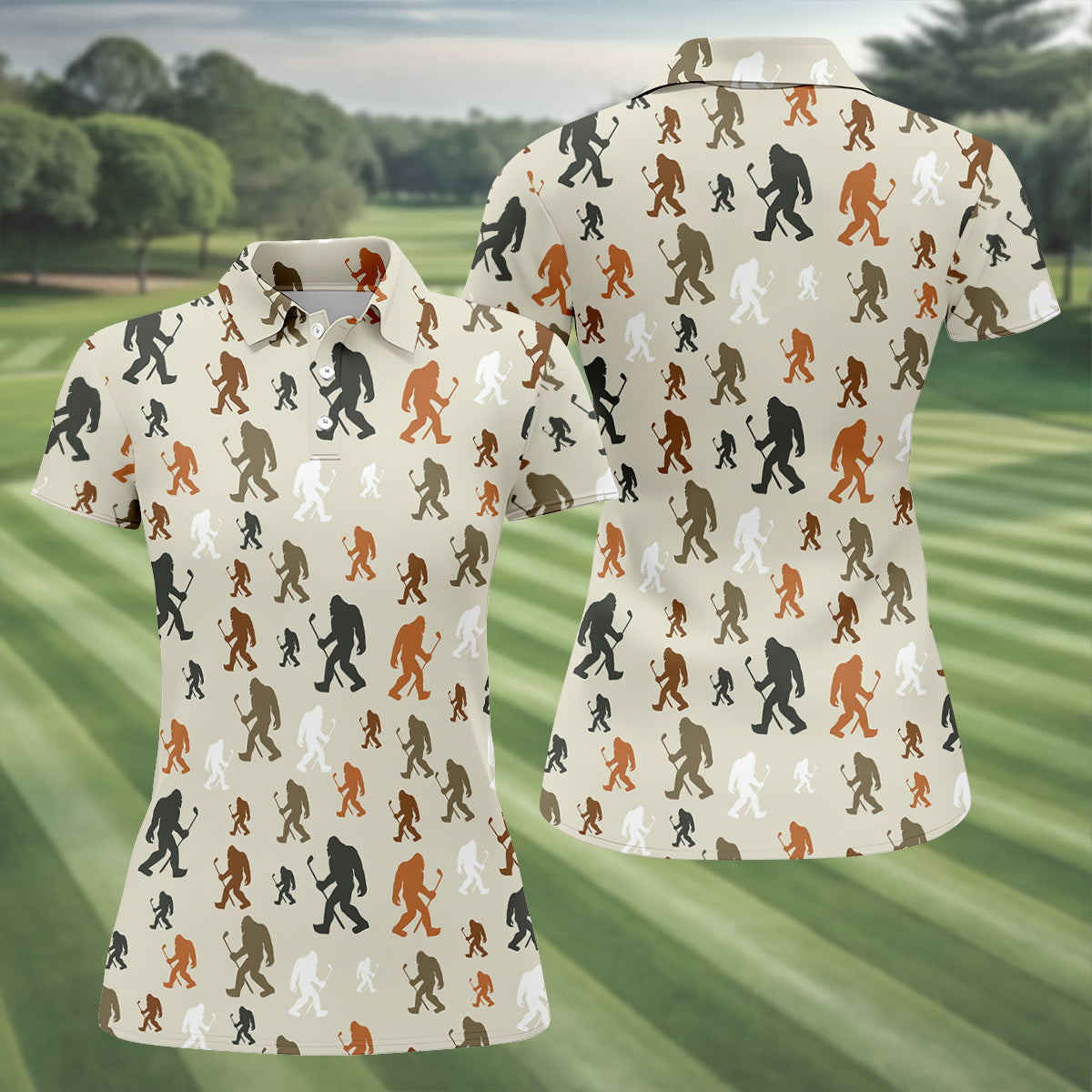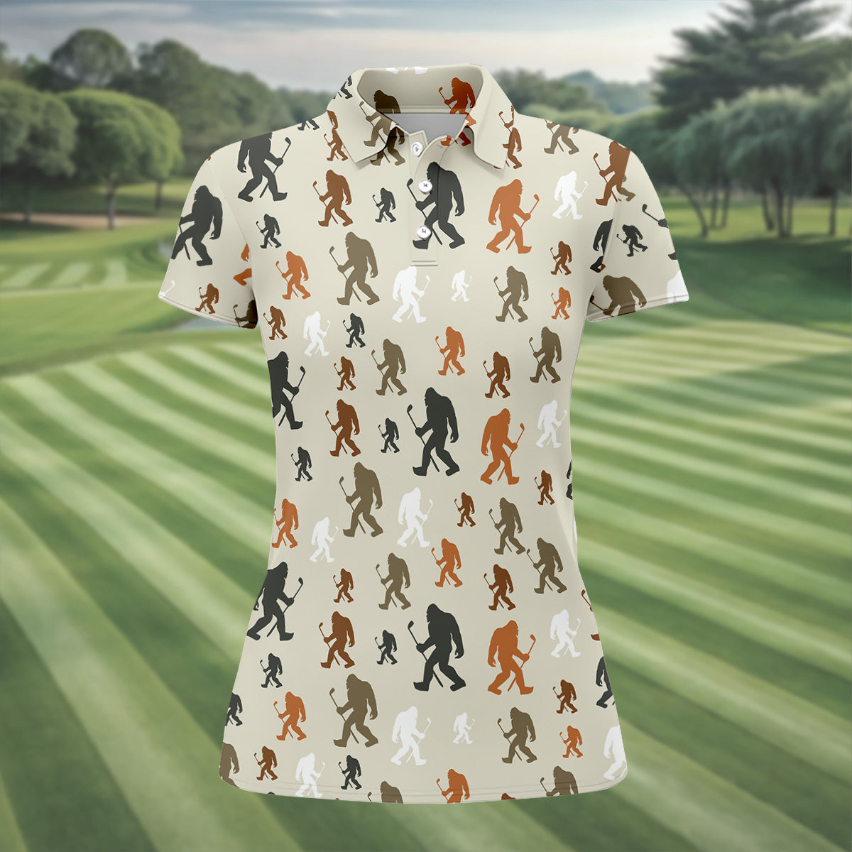 Bigfoot Silhouette Pattern Fun Women's Golf Shirts, Unique Gift For Golfer, Ladies Golf Polos