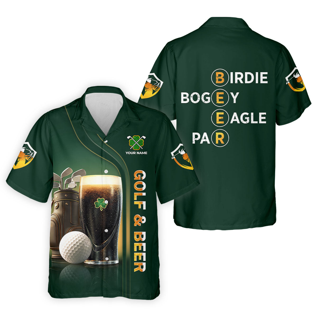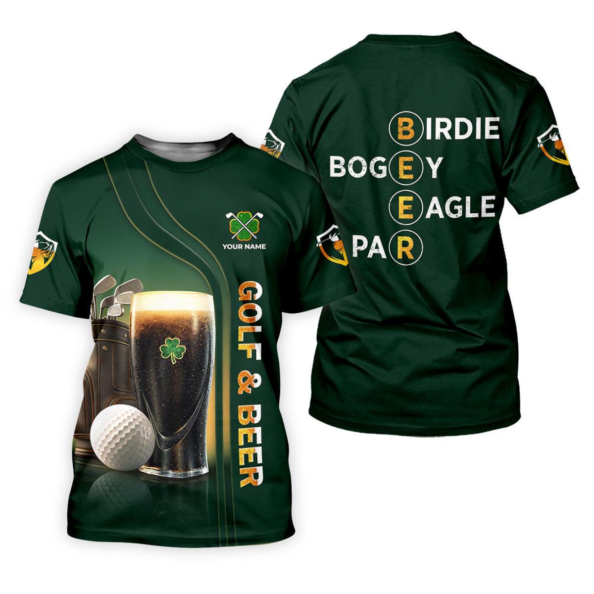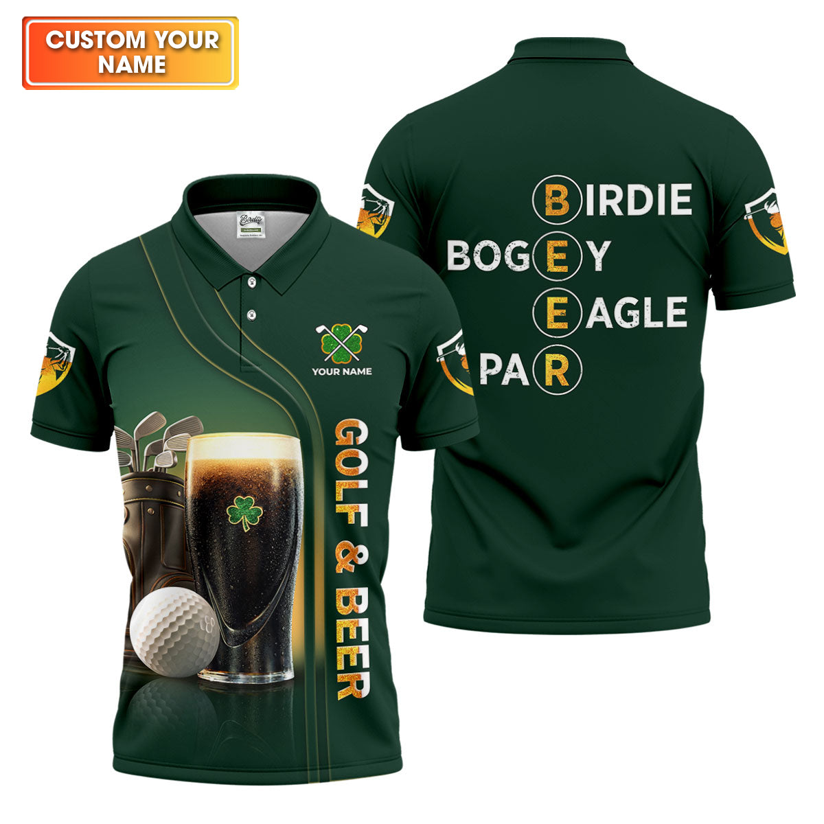 Birdie Bogey Eagle Par Golf And Beer St Patrick's Day Green Golf Tops For Men, Golf Shirts For Men