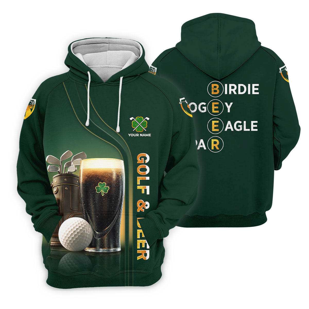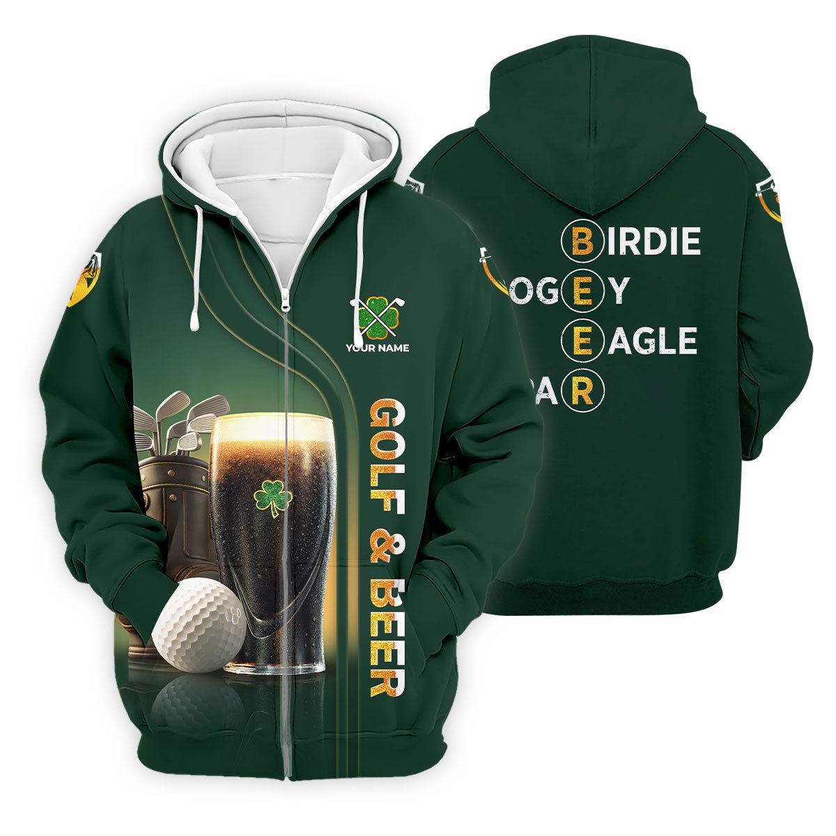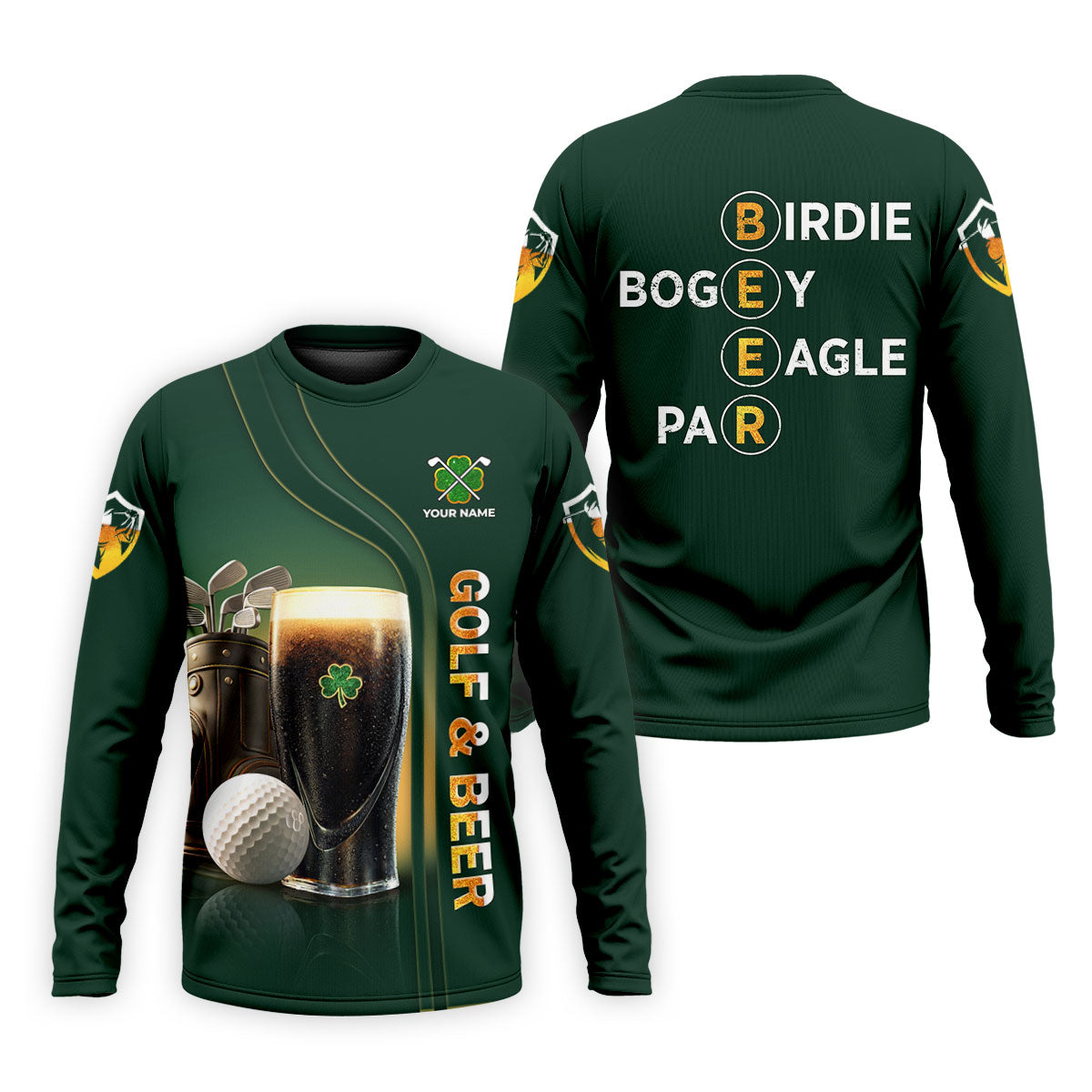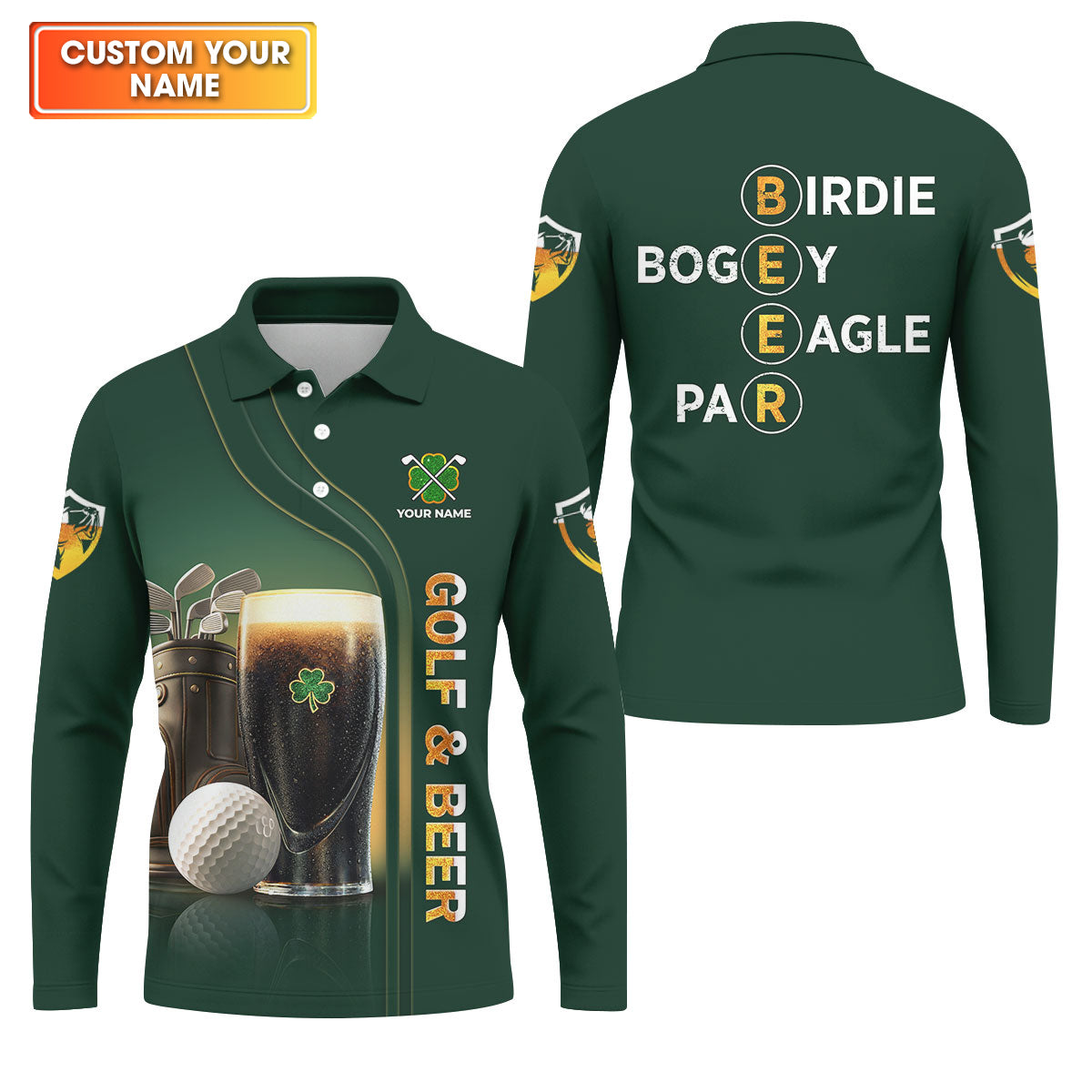 Birdie Bogey Eagle Par Golf And Beer St Patrick's Day Green Golf Tops For Men, Golf Shirts For Men
