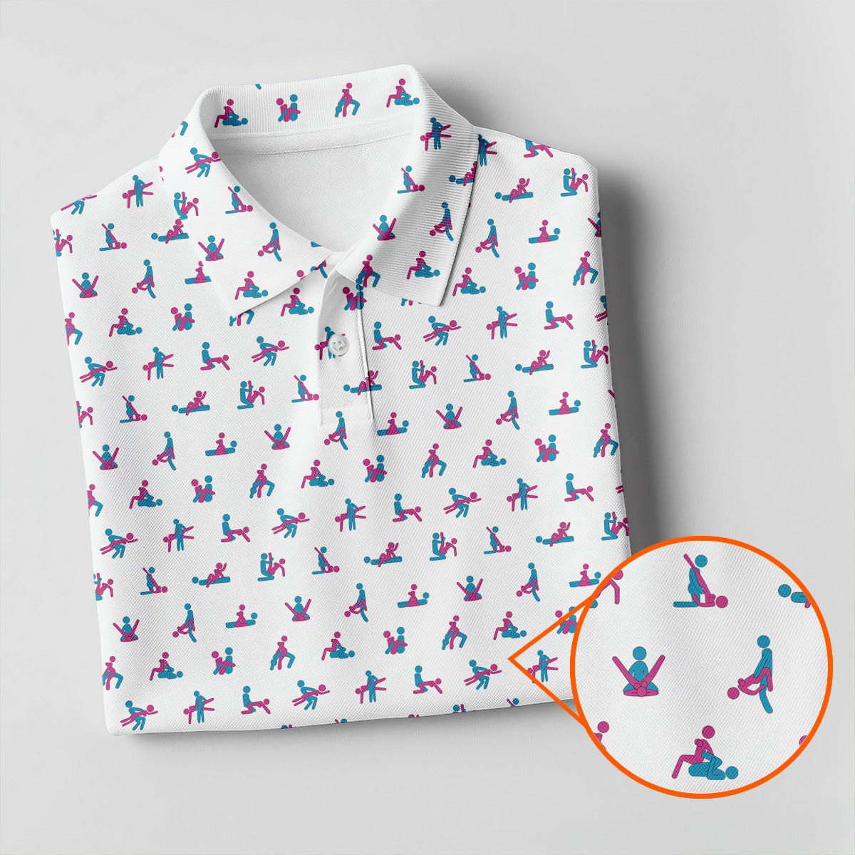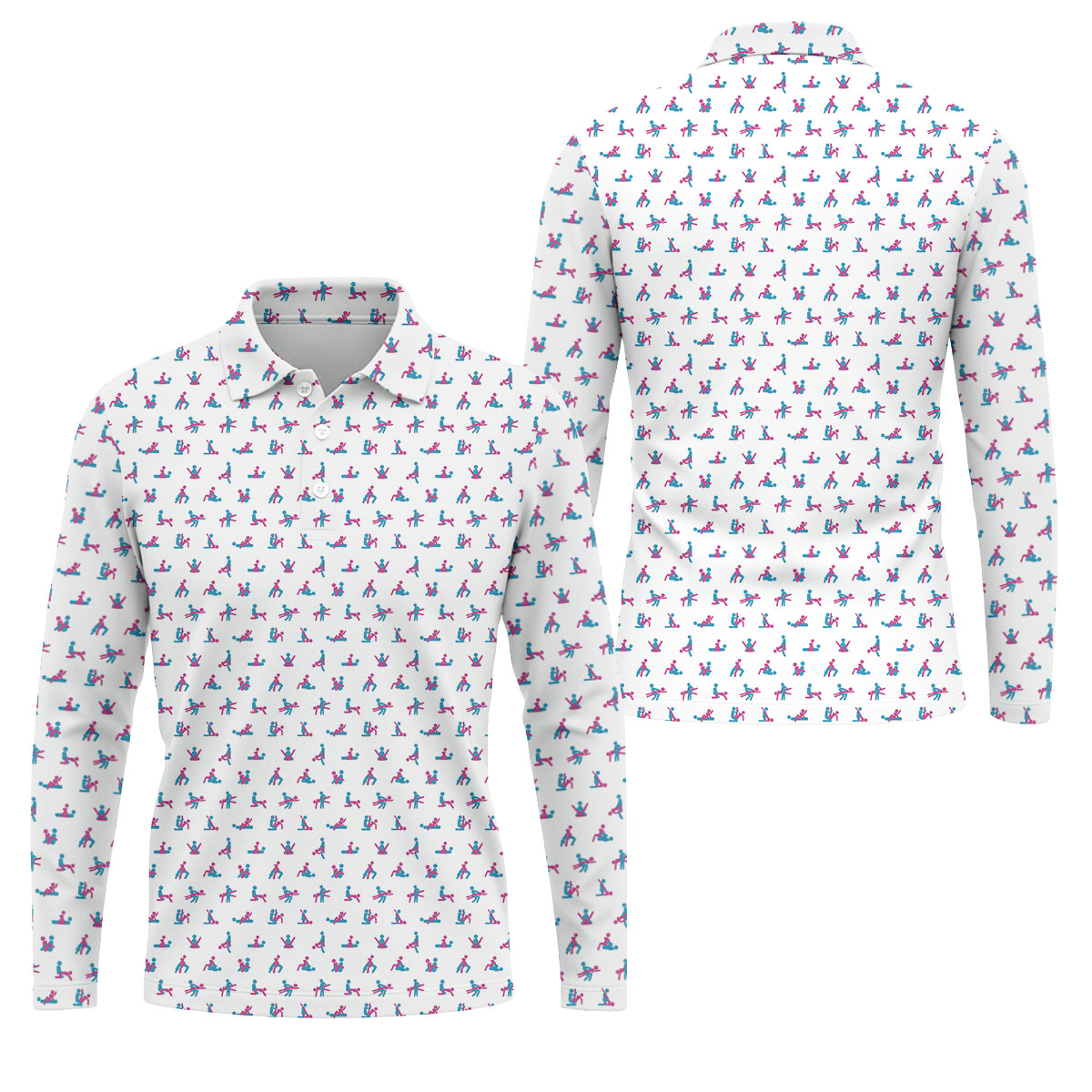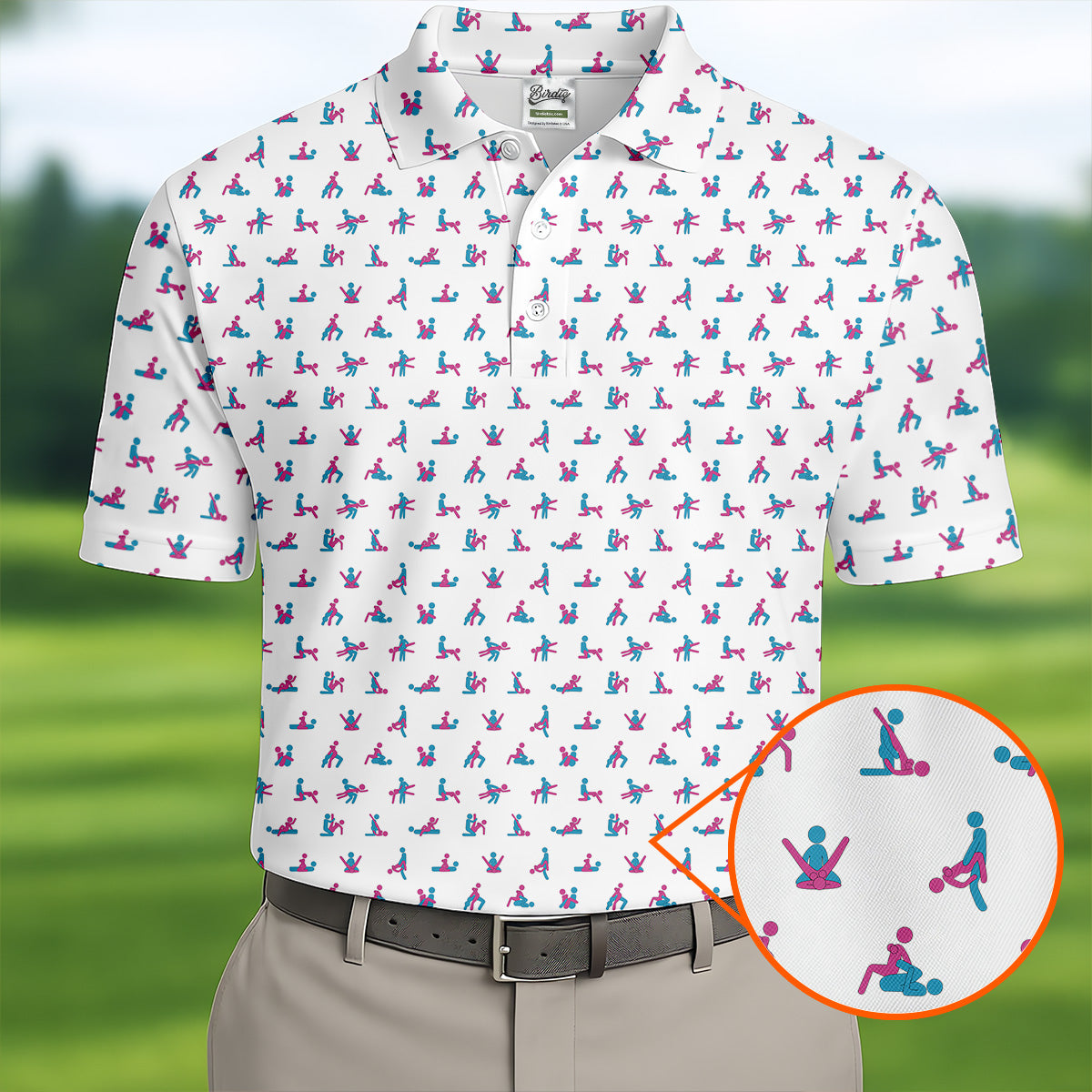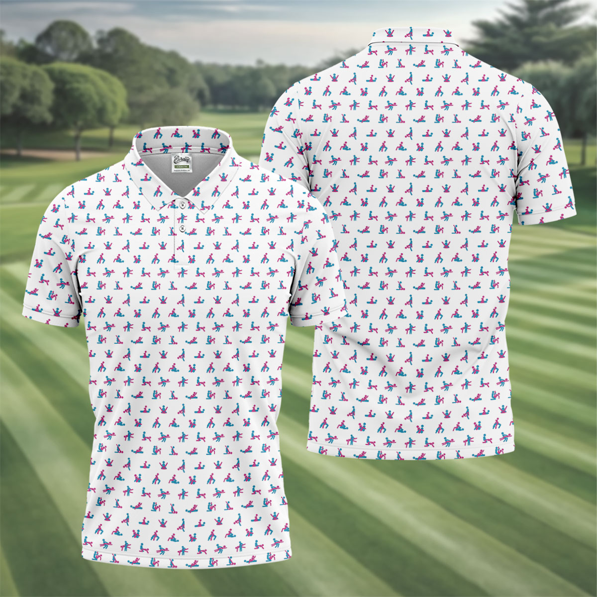 Blue And Pink Naughty Stick People White Golf Shirt, Polo Shirts For Men, Golf Gift For Men