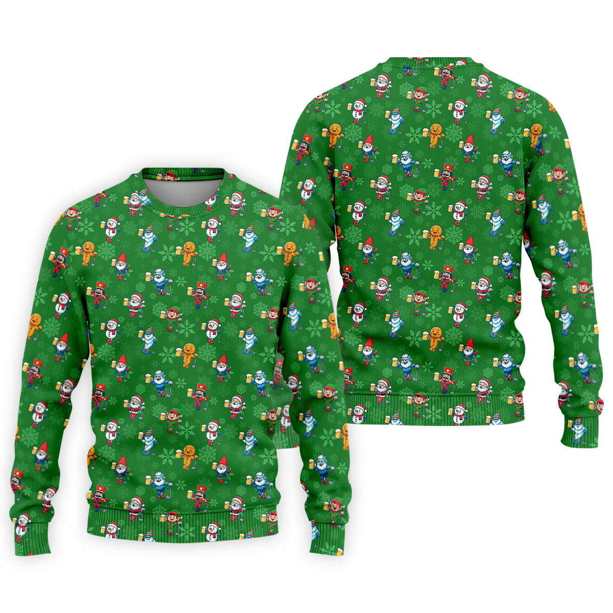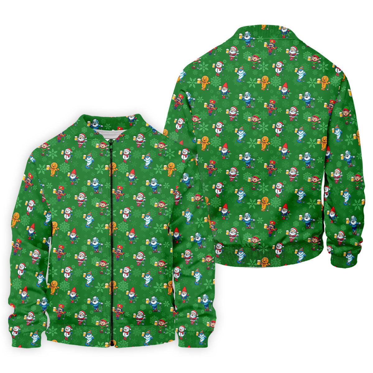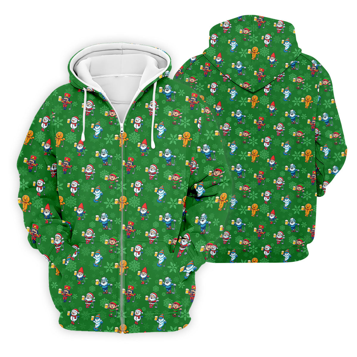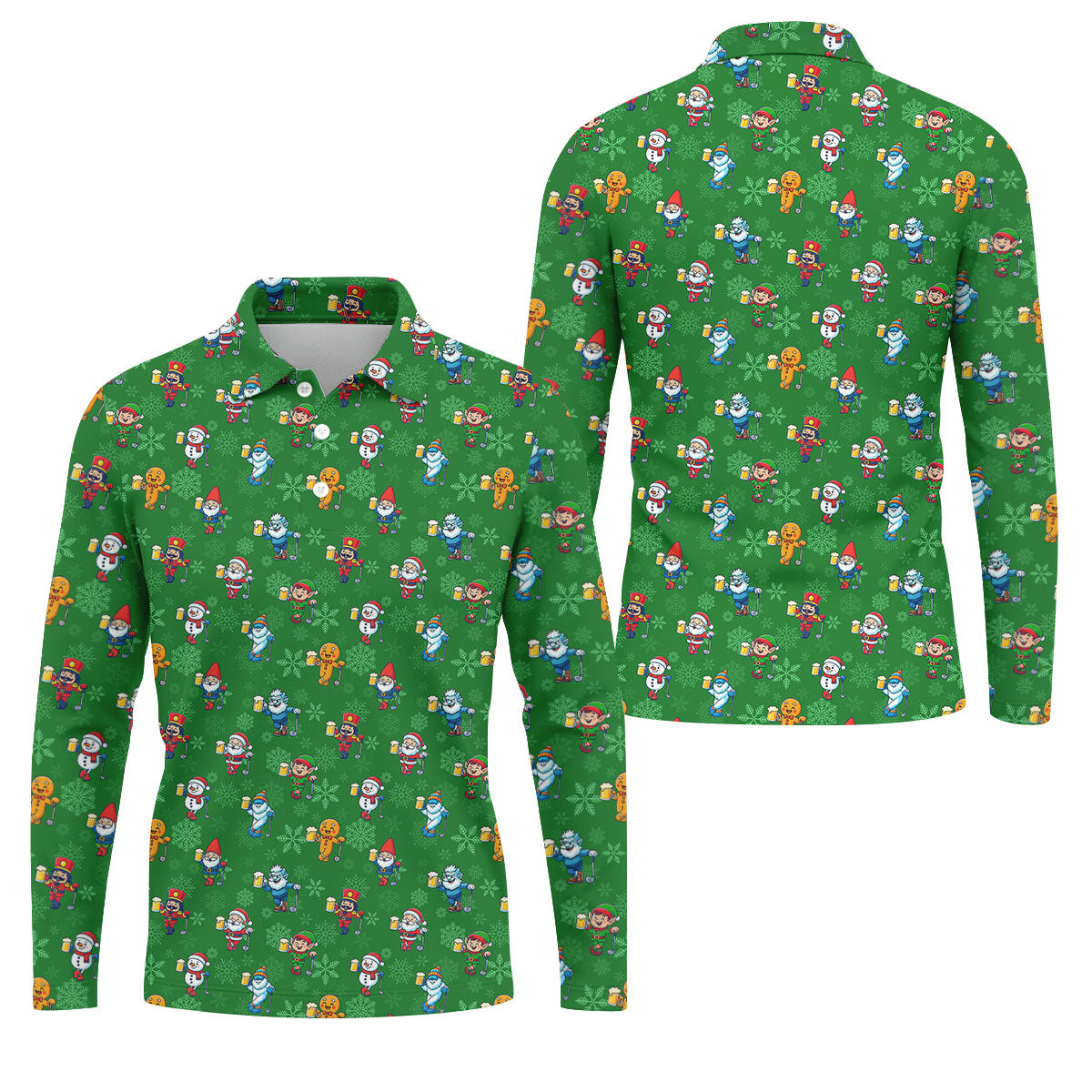 Christmas Characters Golf And Beer Green Men's Funny Golf Shirts, Christmas Golf Shirt, Polo Shirts For Men