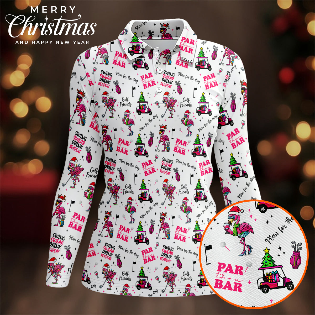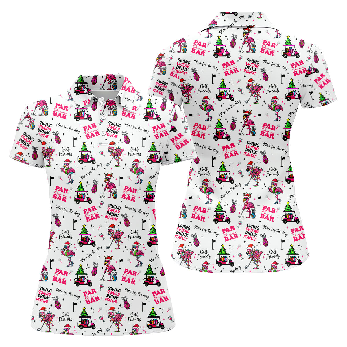 Christmas Flamingo Par Then Bar Women's Golf Shirts, Christmas Golf Shirt, Ladies Golf Shirts, Women's Golf Gifts