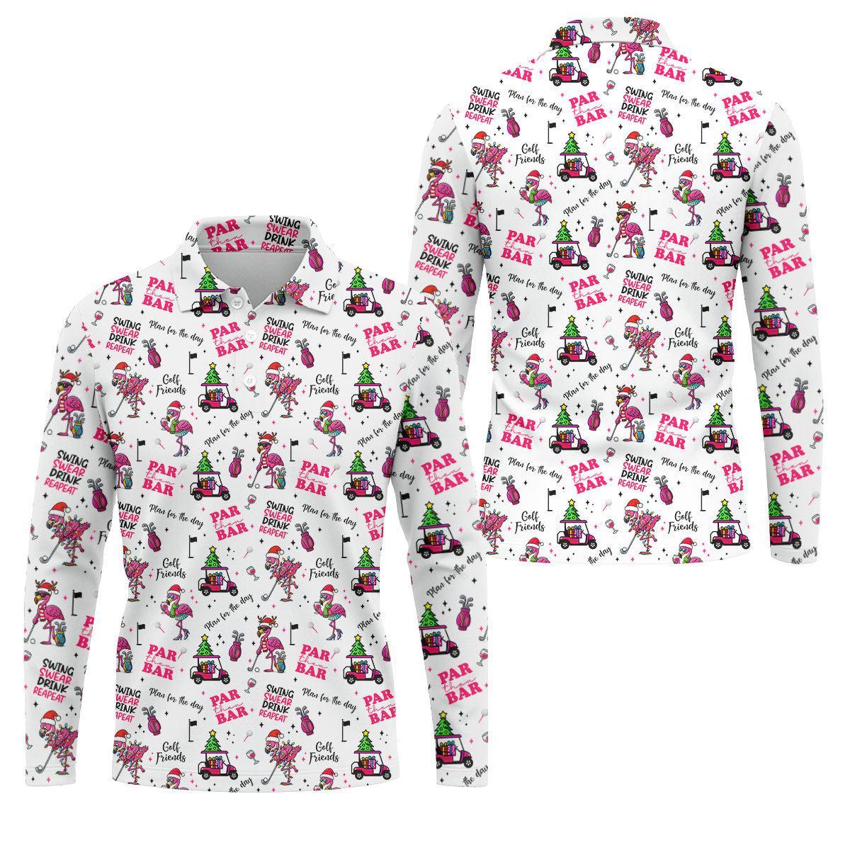 Christmas Flamingo Par Then Bar Men's Funny Golf Shirts, Christmas Golf Shirt, Polo Shirts For Men, Golf Gift For Men