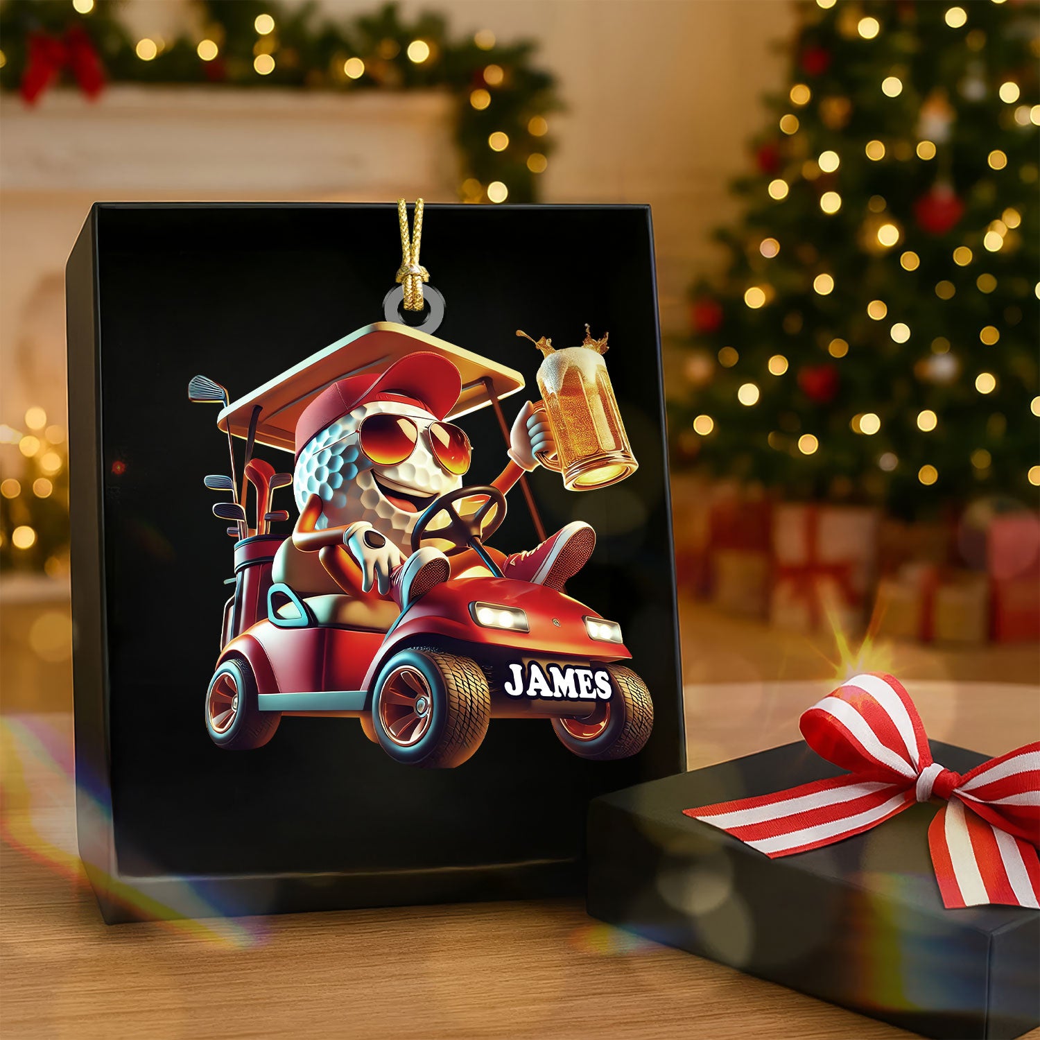 Cool Golf Ball Drinking Beer On Red Golf Cart Acrylic Ornament, Golf Xmas Ornaments, Golf Christmas Gifts