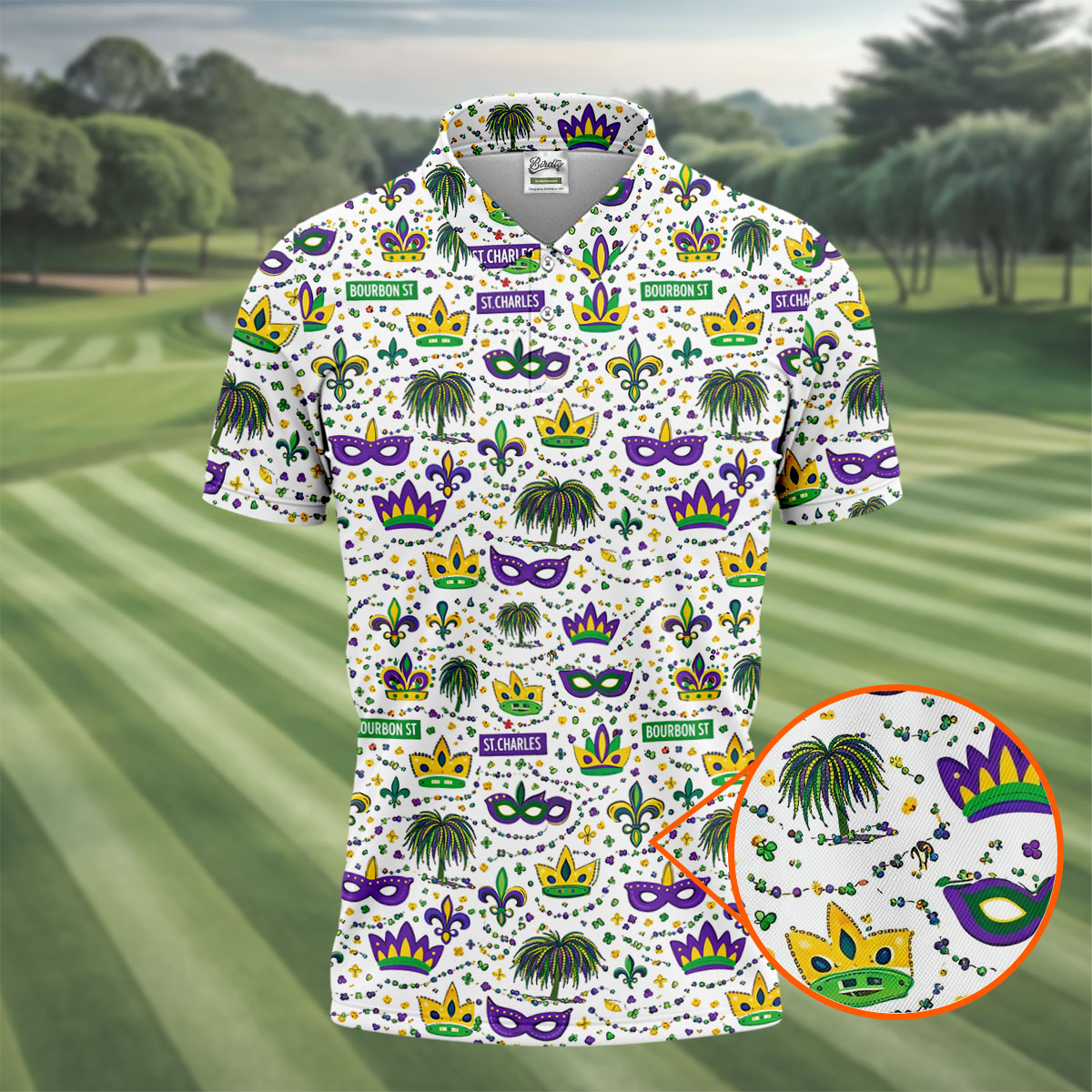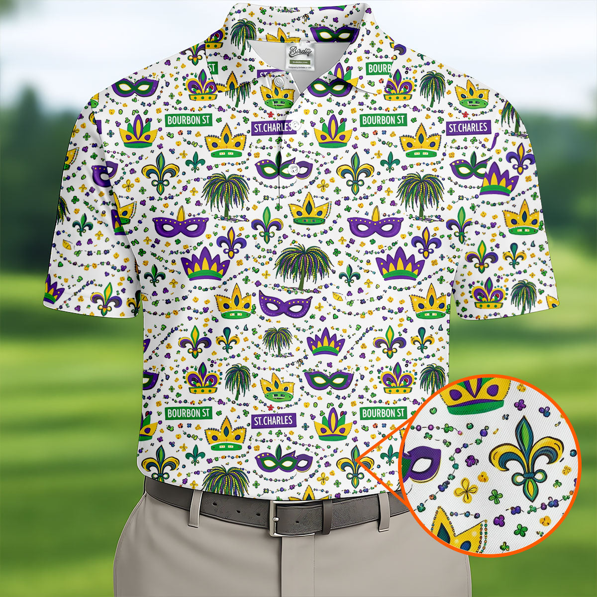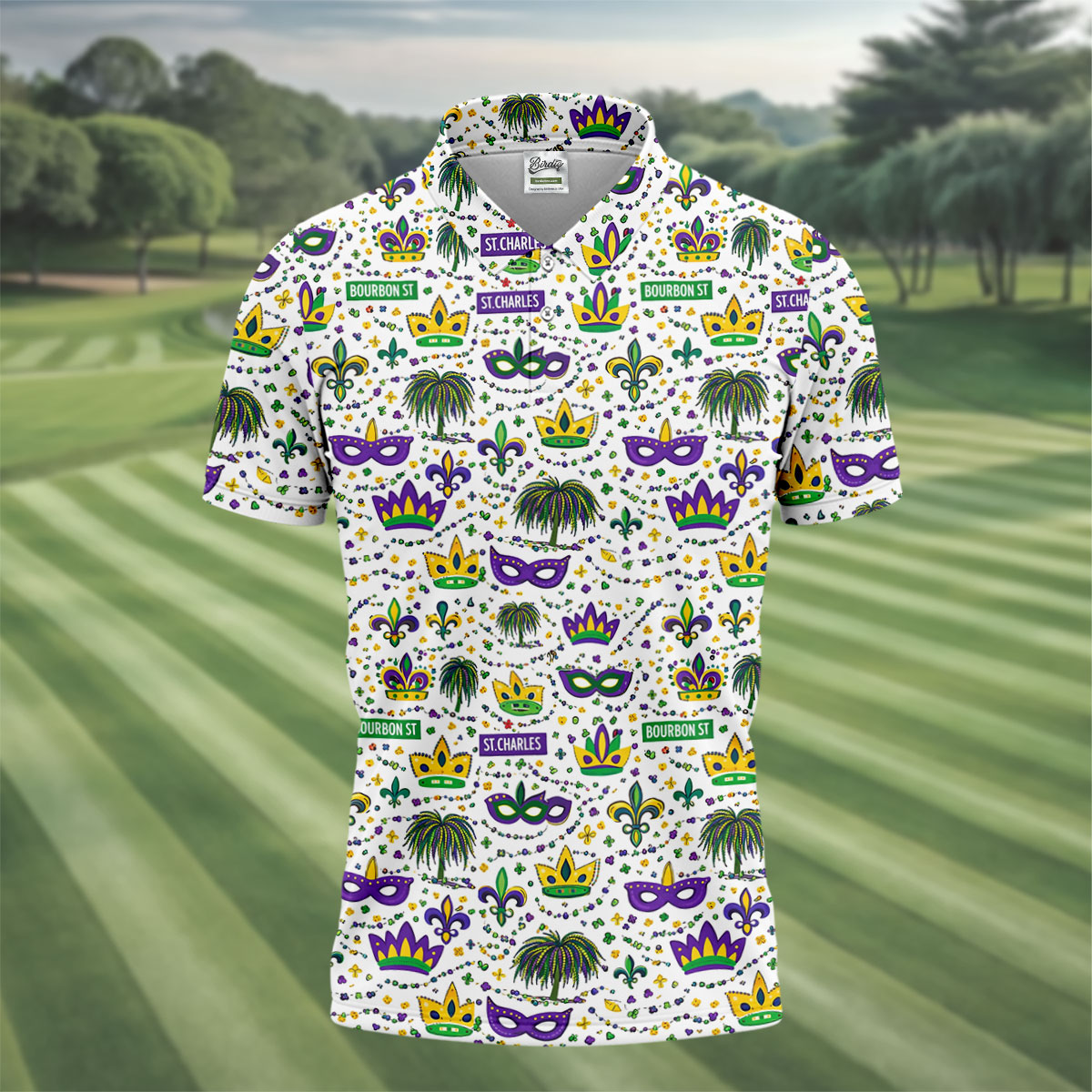 Whether you’re teeing off during Mardi Gras week, playing a themed tournament, or just looking for an excuse to bring festival vibes to the course — this shirt shows up ready to celebrate.