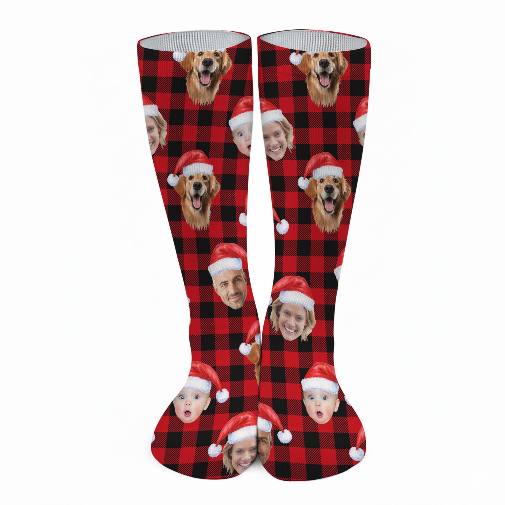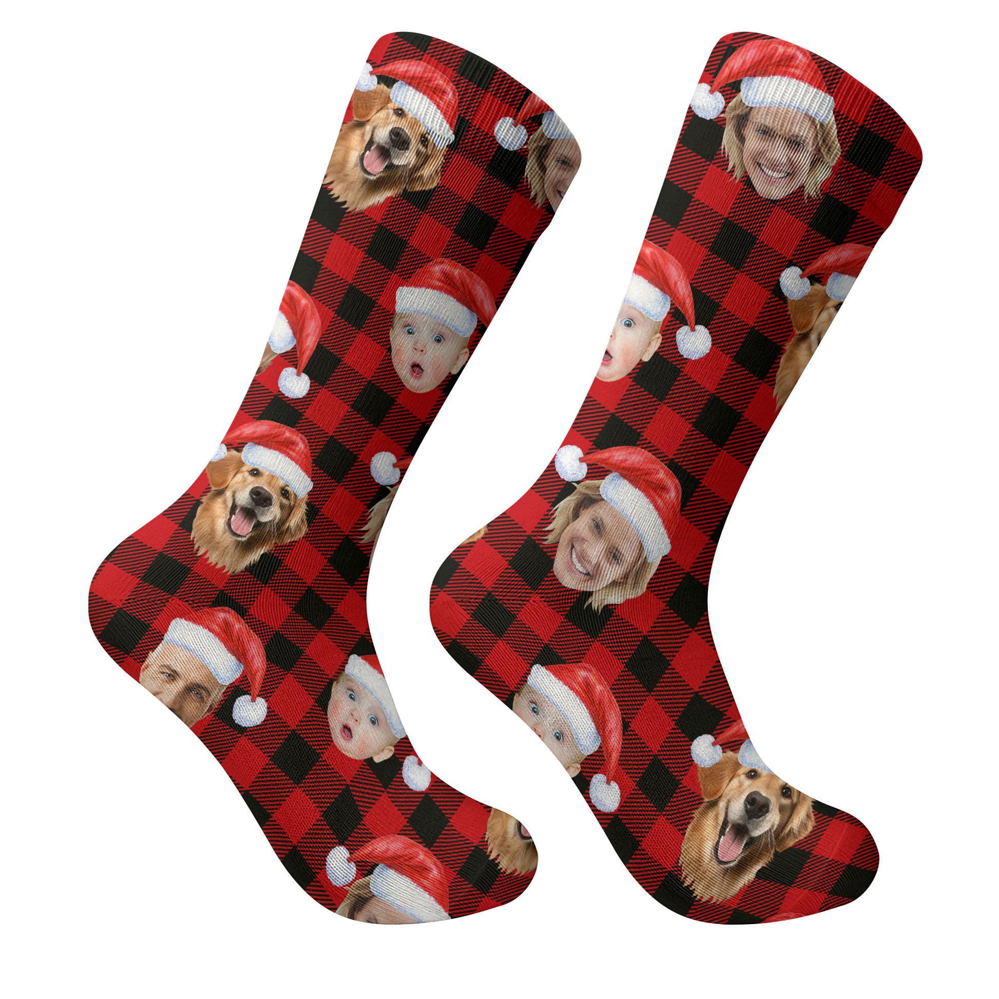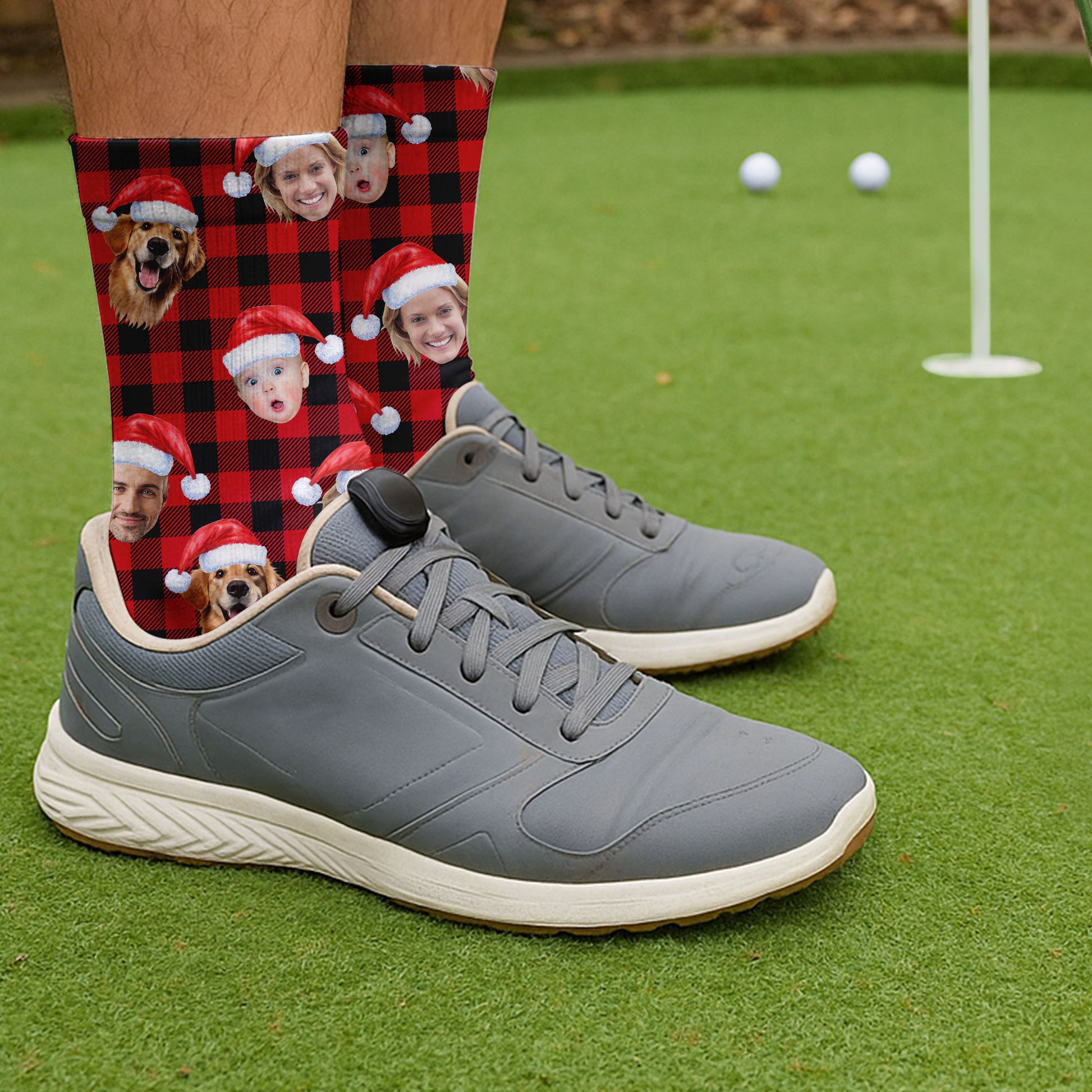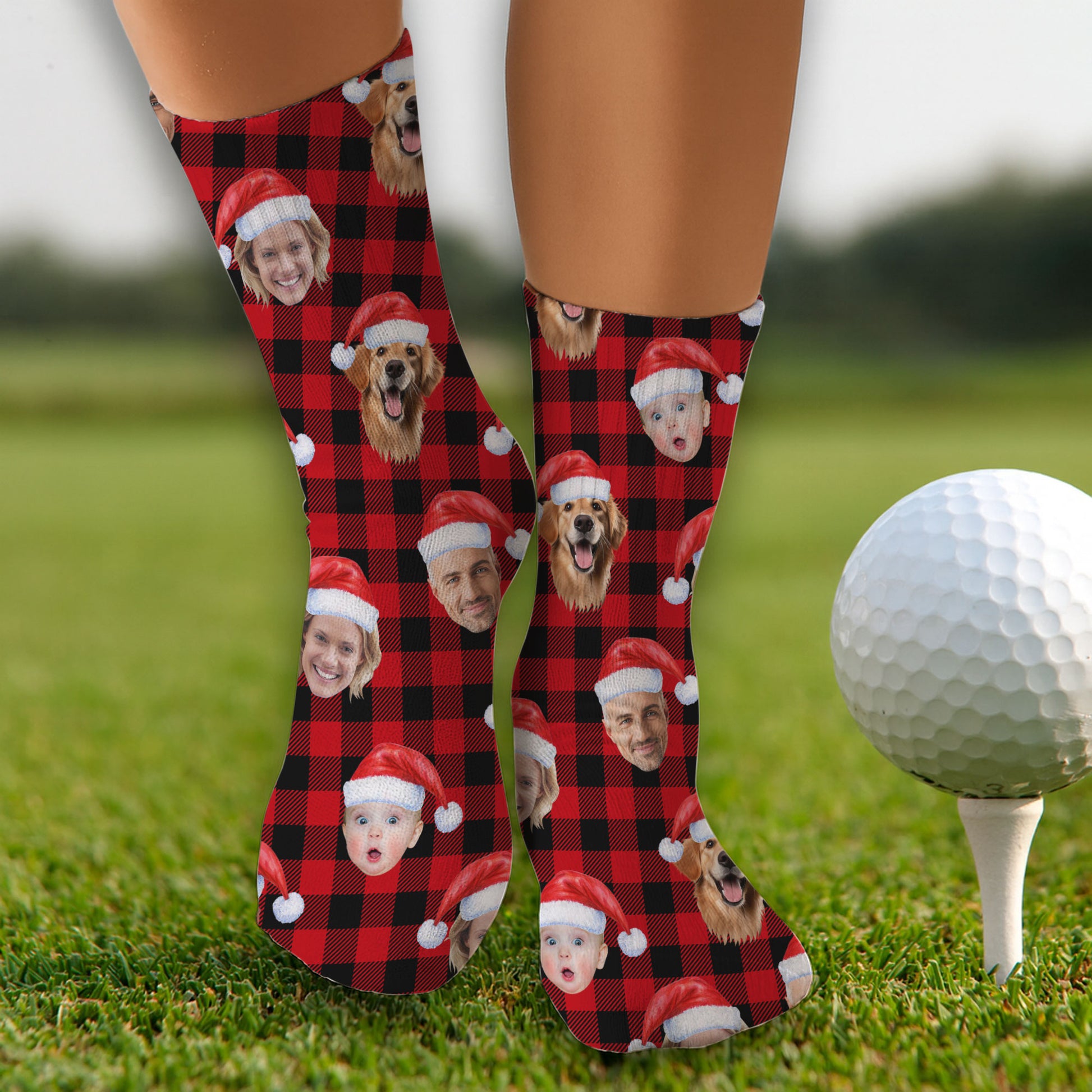 Custom Face Black And Red Checkered Golf Socks, Christmas Golf Gift, Custom Golf Accessories