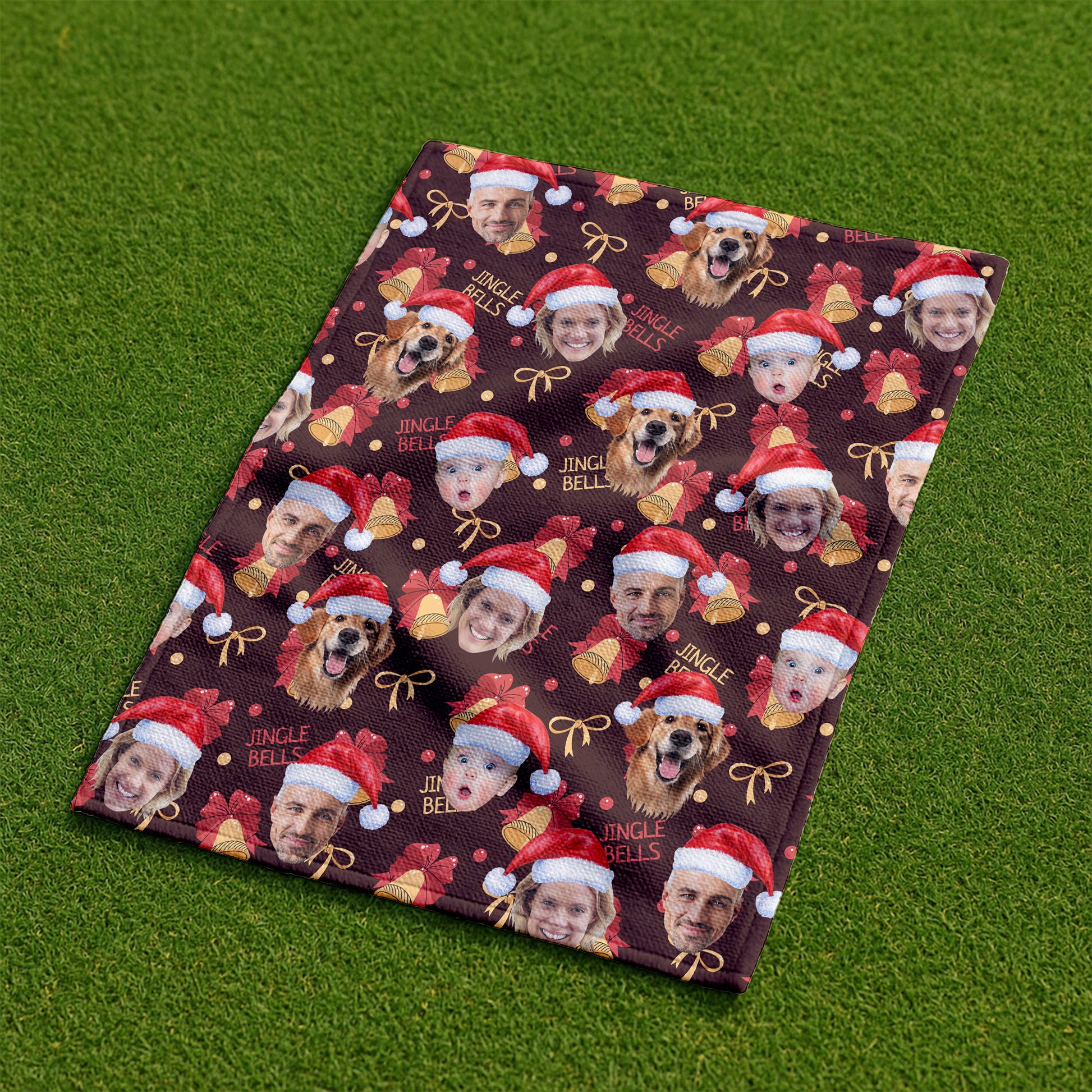 Custom Face Christmas Jingle Bells Brown Golf Towels, Christmas Golf Gift, Custom Golf Accessories