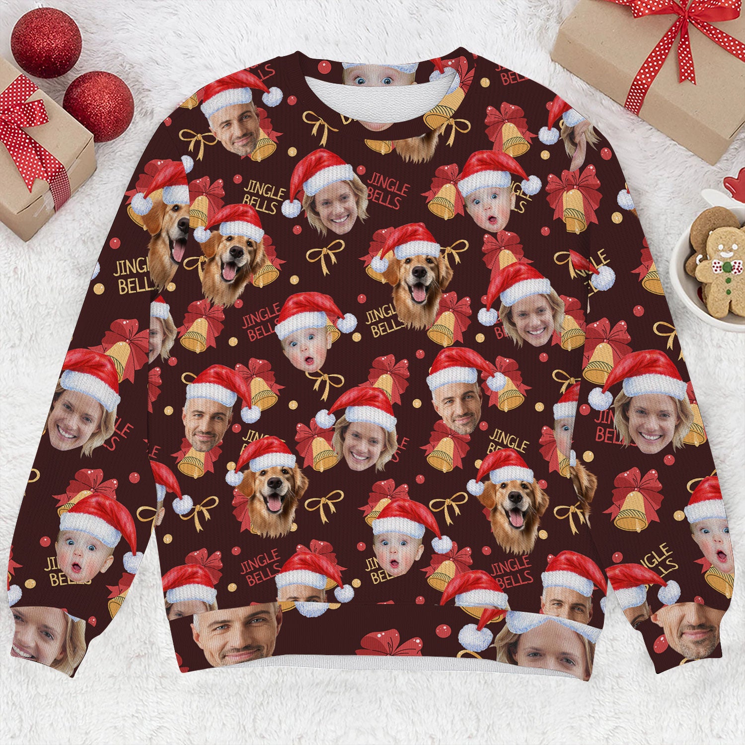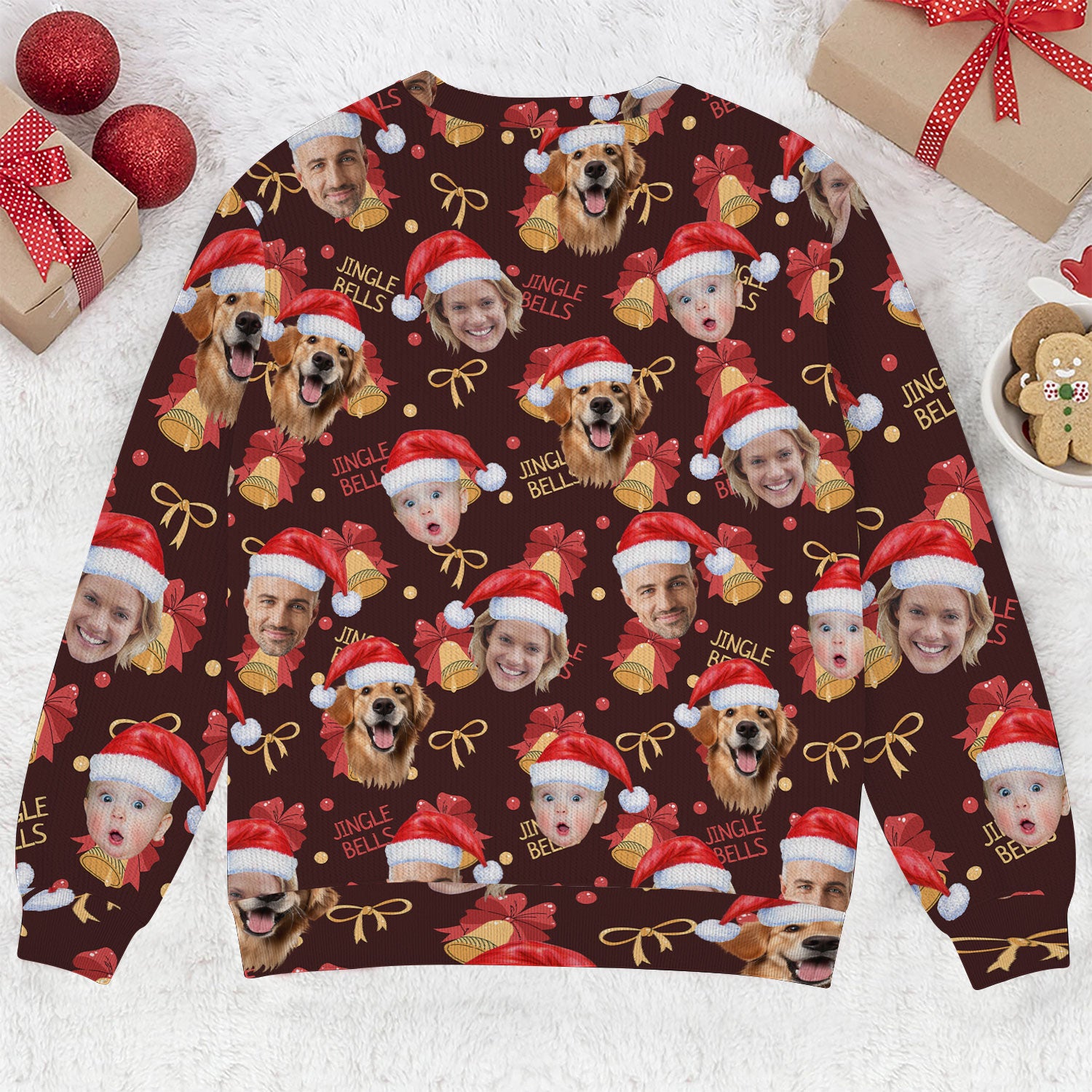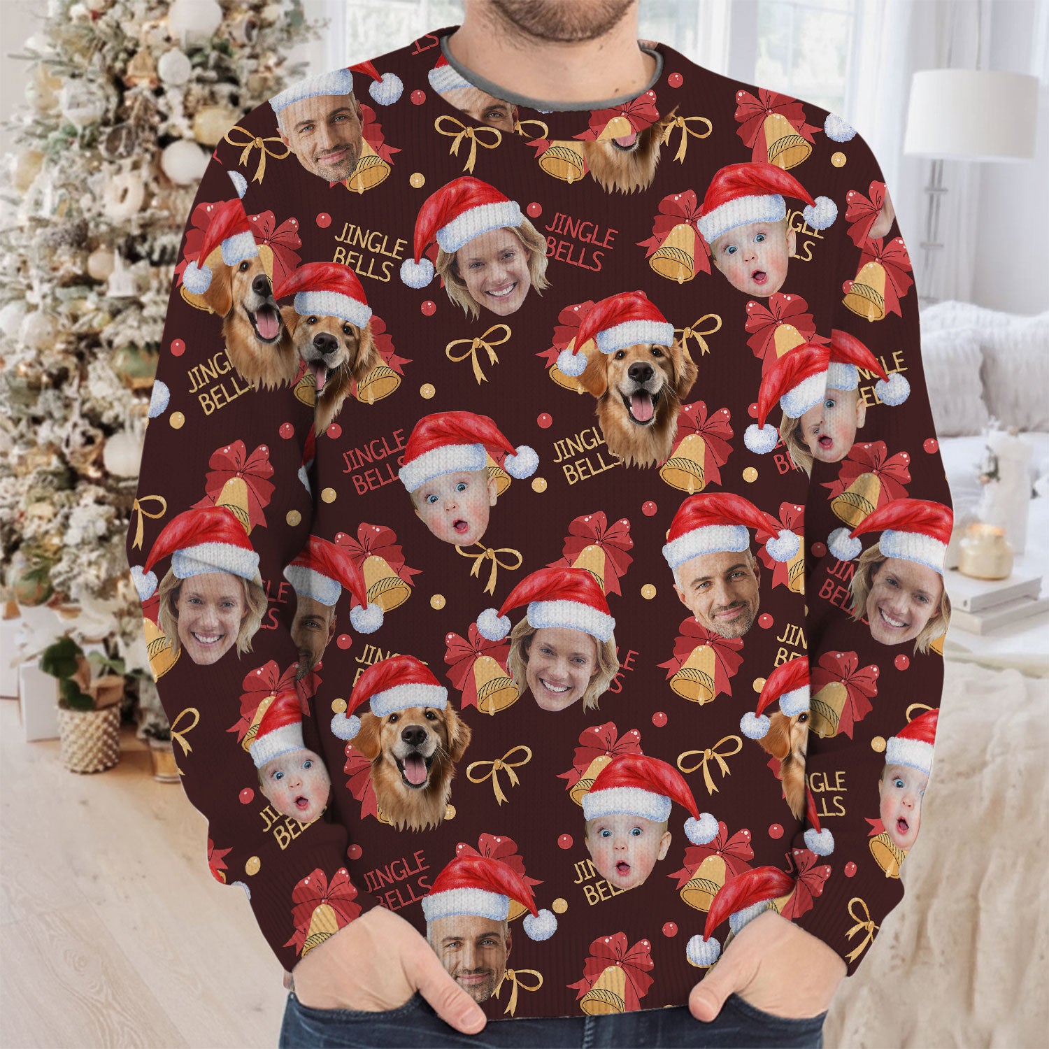 Custom Face Christmas Jingle Bells Brown Golf Ugly Sweater, Christmas Golf Shirt, Golf Sweater