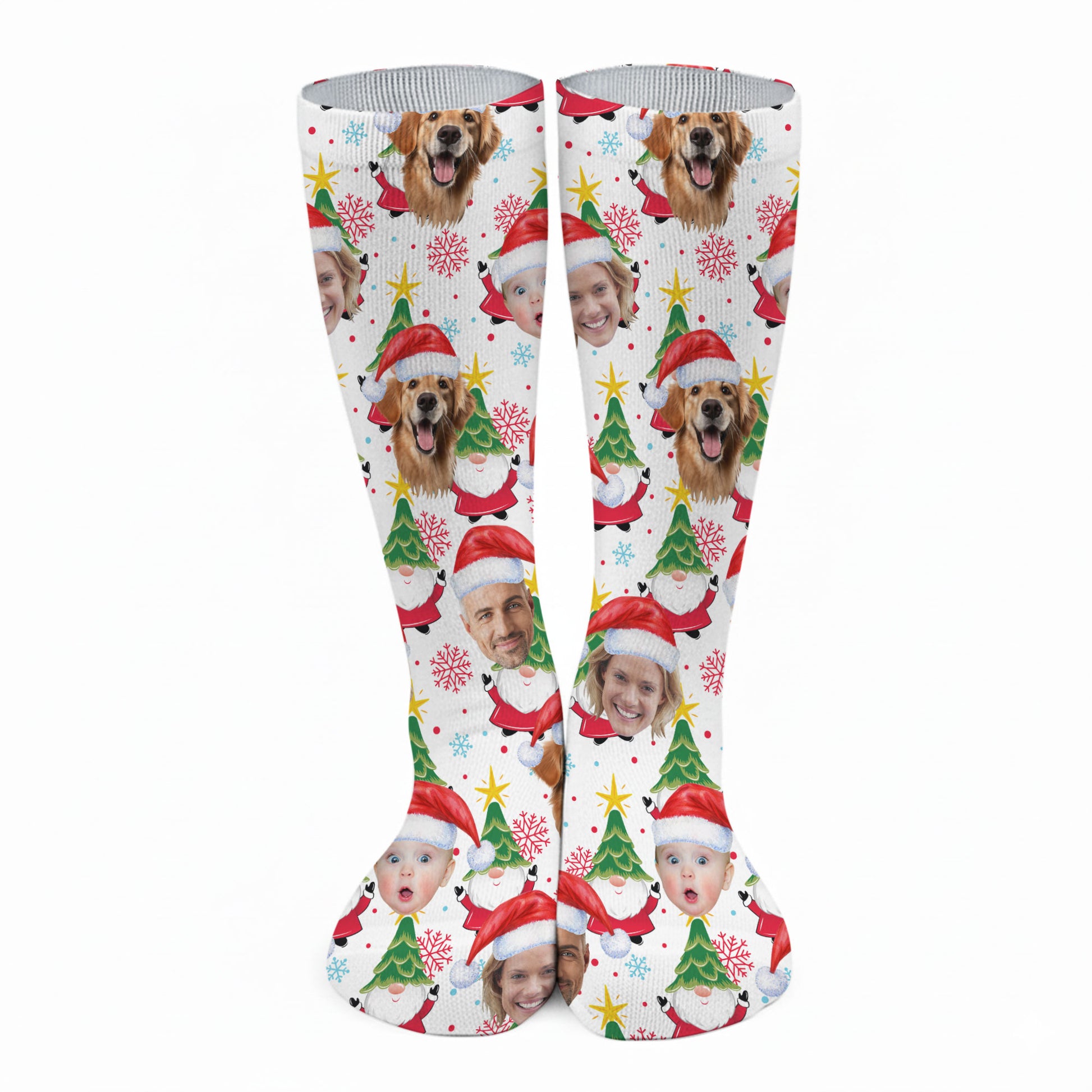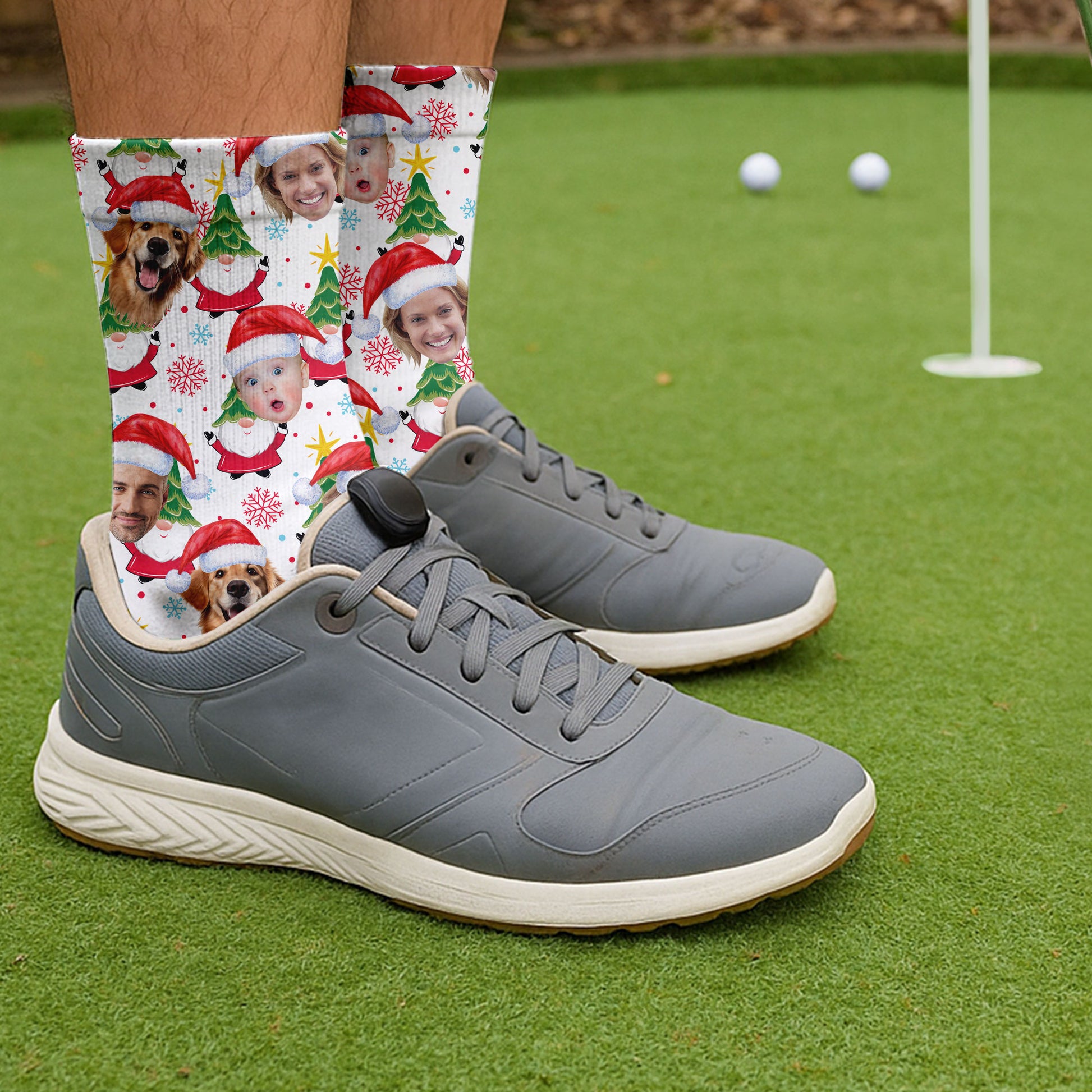 Custom Face Cute Christmas Gnome White Golf Socks, Christmas Golf Gift, Custom Golf Accessories