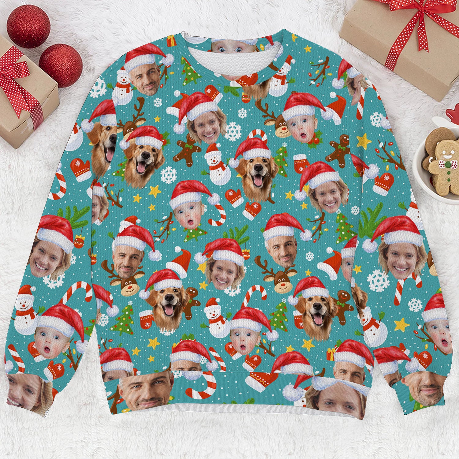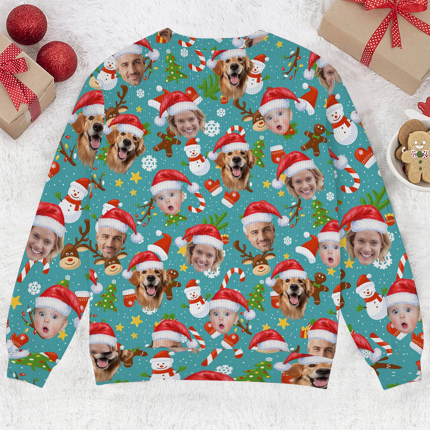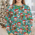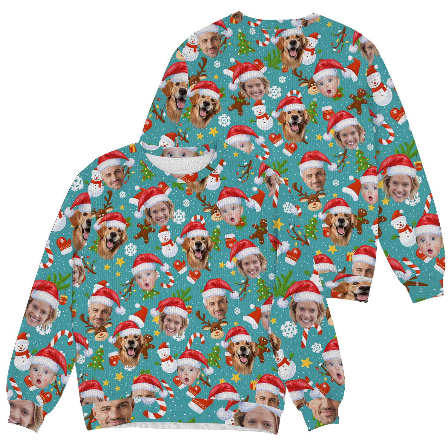 Custom Face Cute Christmas Pattern Teal Golf Ugly Sweater, Christmas Golf Shirt, Golf Sweater, Christmas Golf Gift