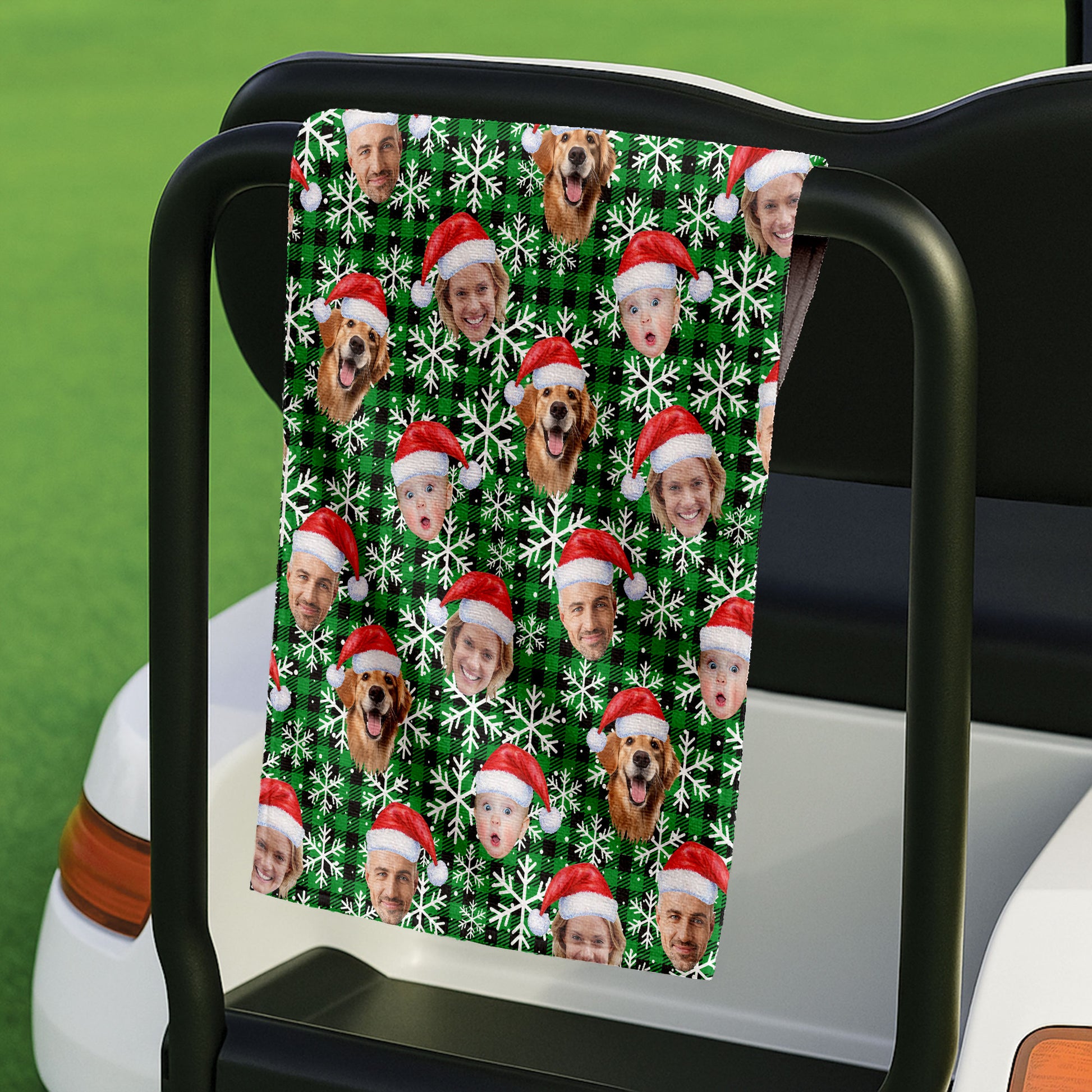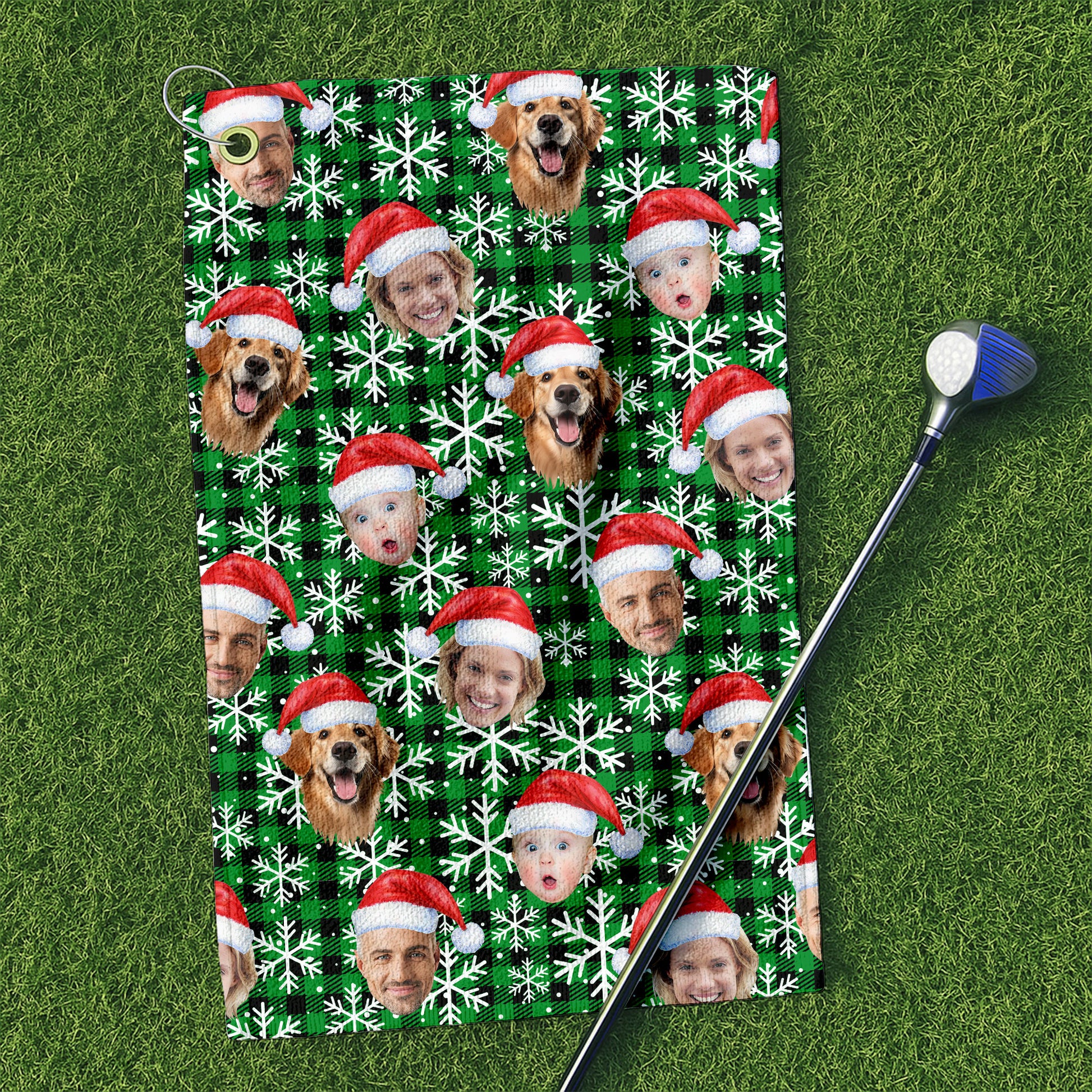 Custom Face Green And Black Checkered Cute Golf Towels, Christmas Golf Gift, Custom Golf Accessories