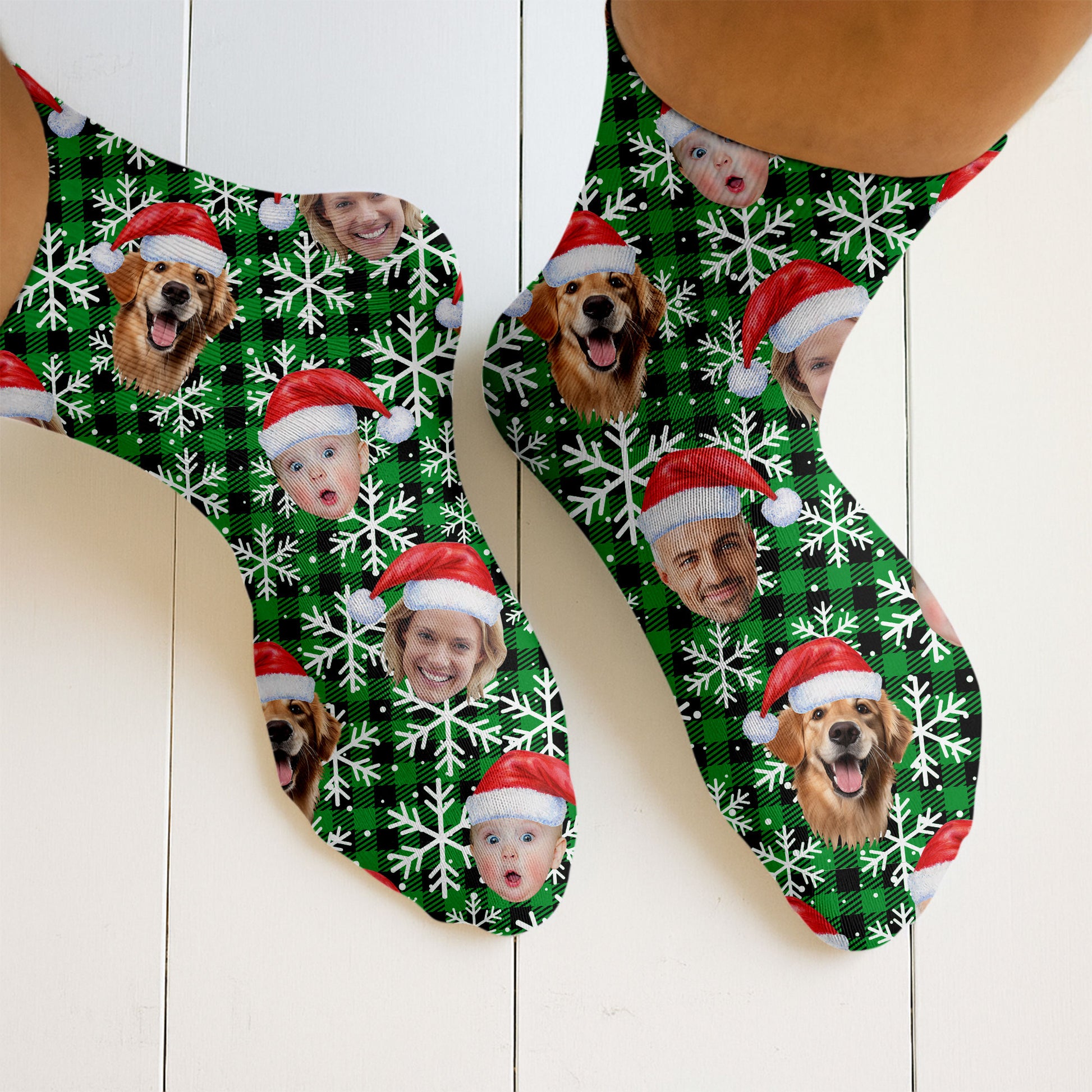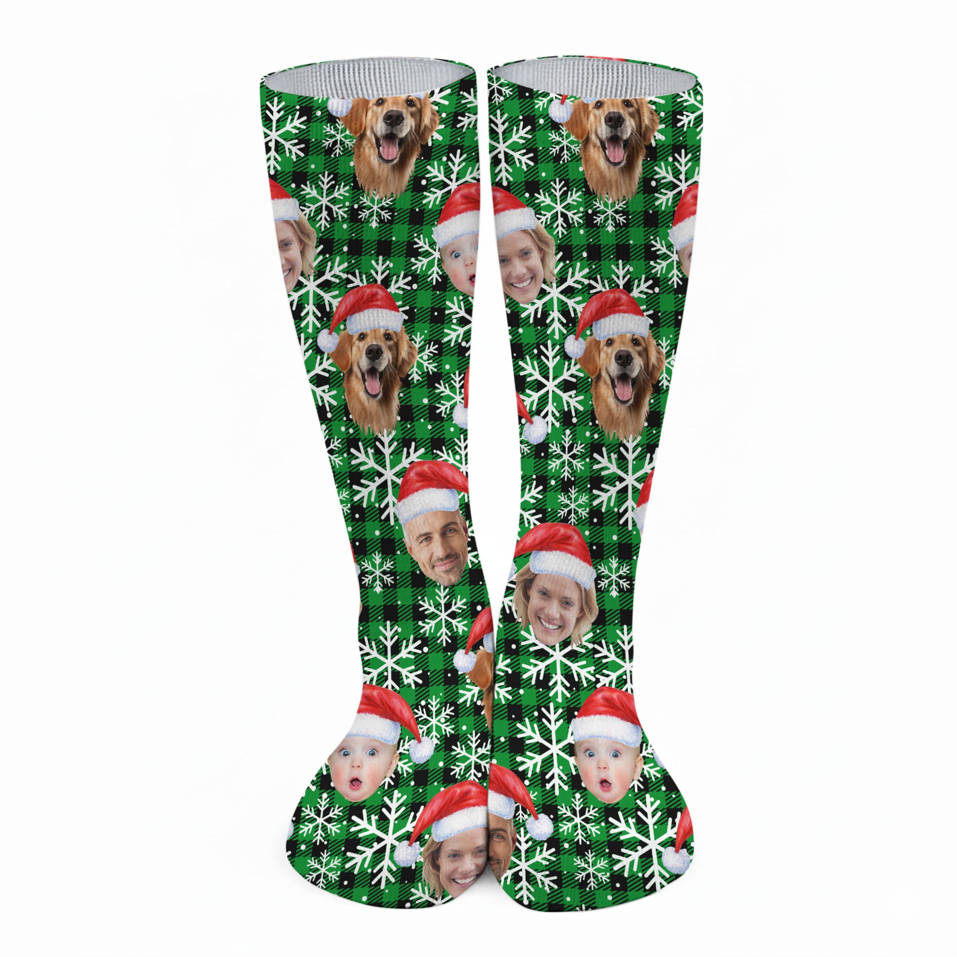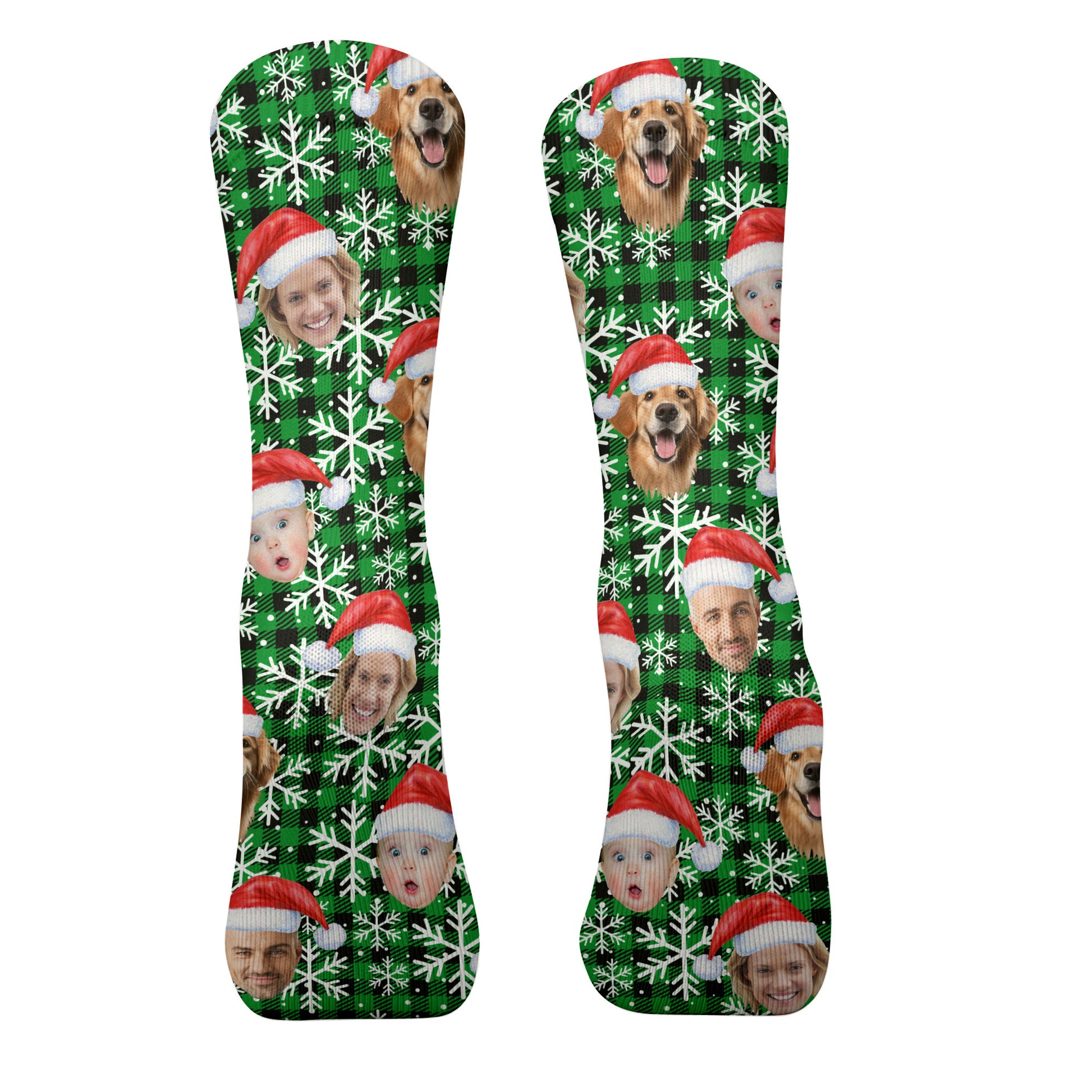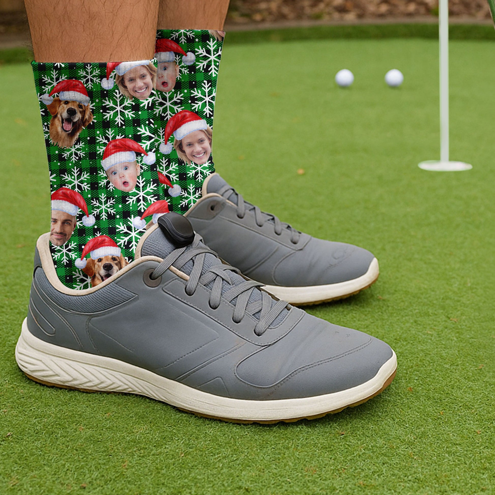 Custom Face Green And Black Checkered Golf Socks, Christmas Golf Gift, Custom Golf Accessories