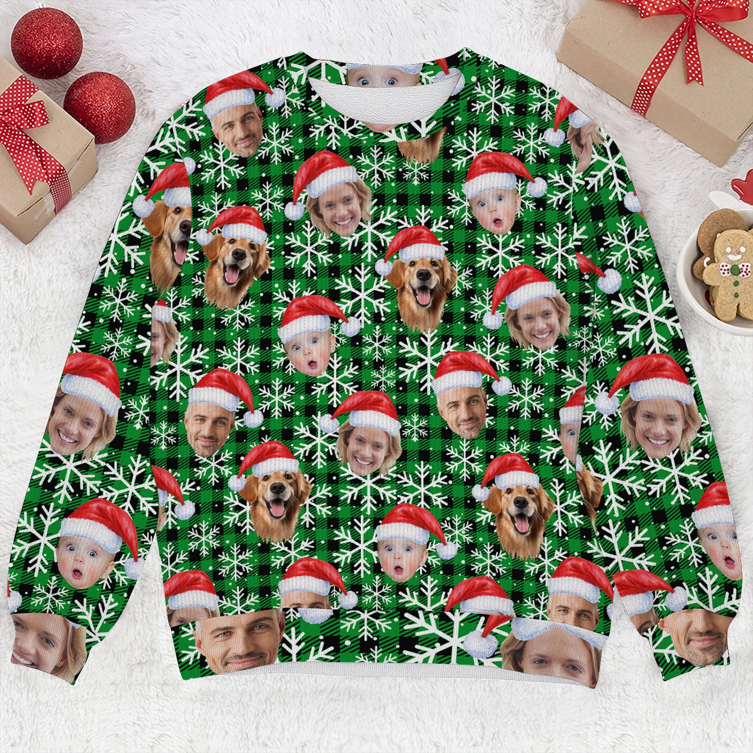 Custom Face Green And Black Checkered Golf Ugly Sweater, Christmas Golf Shirt, Golf Sweater, Christmas Golf Gift