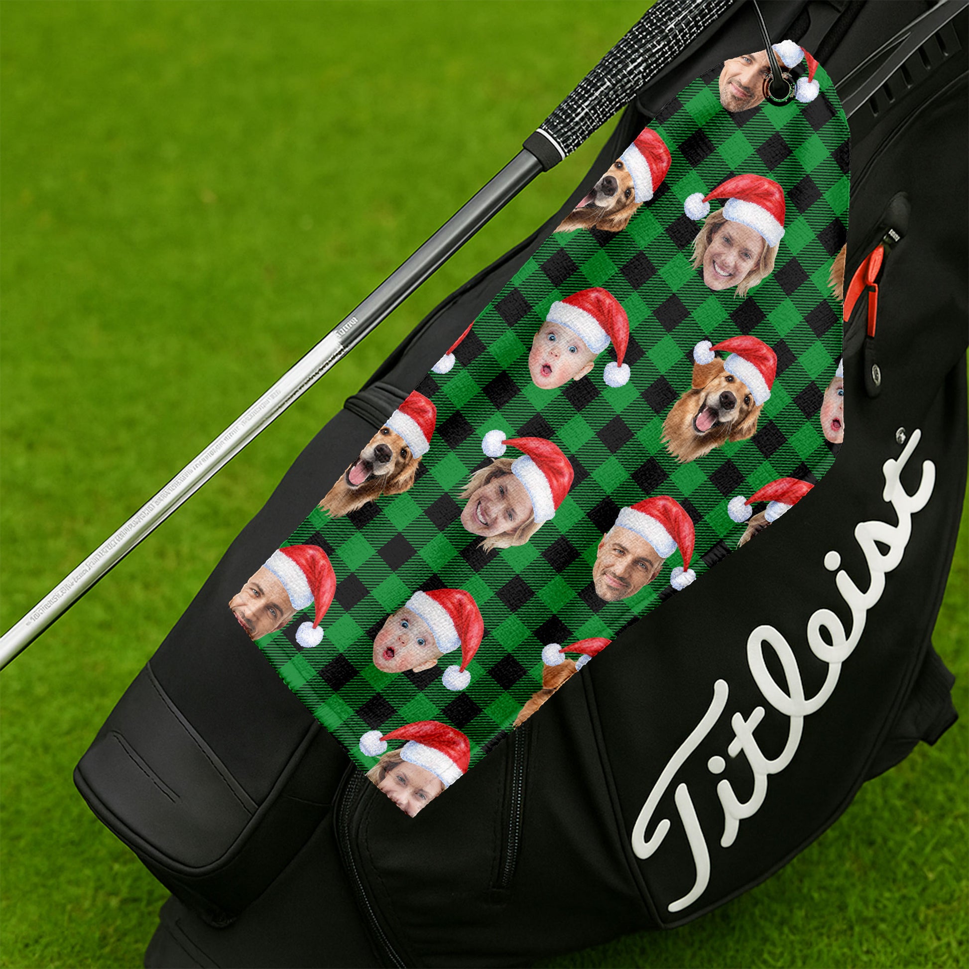 Custom Face Green Buffalo Plaid Golf Towels, Christmas Golf Gift, Custom Golf Accessories