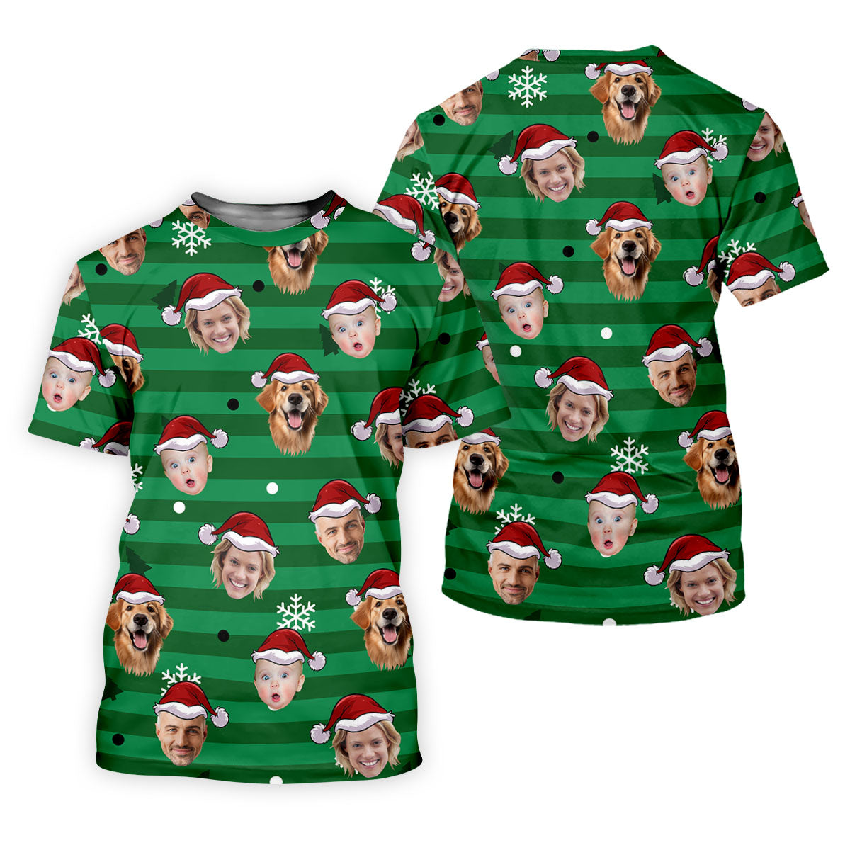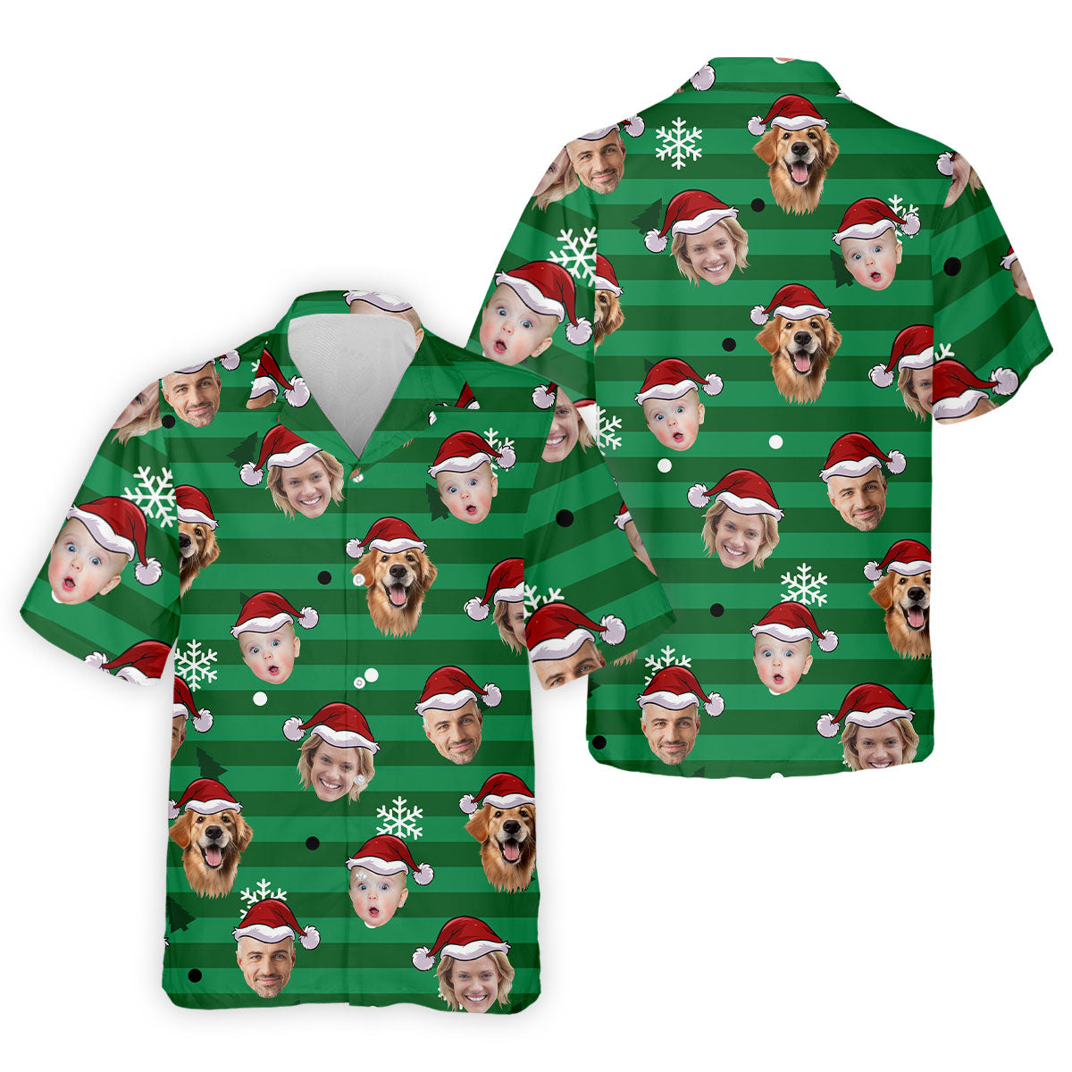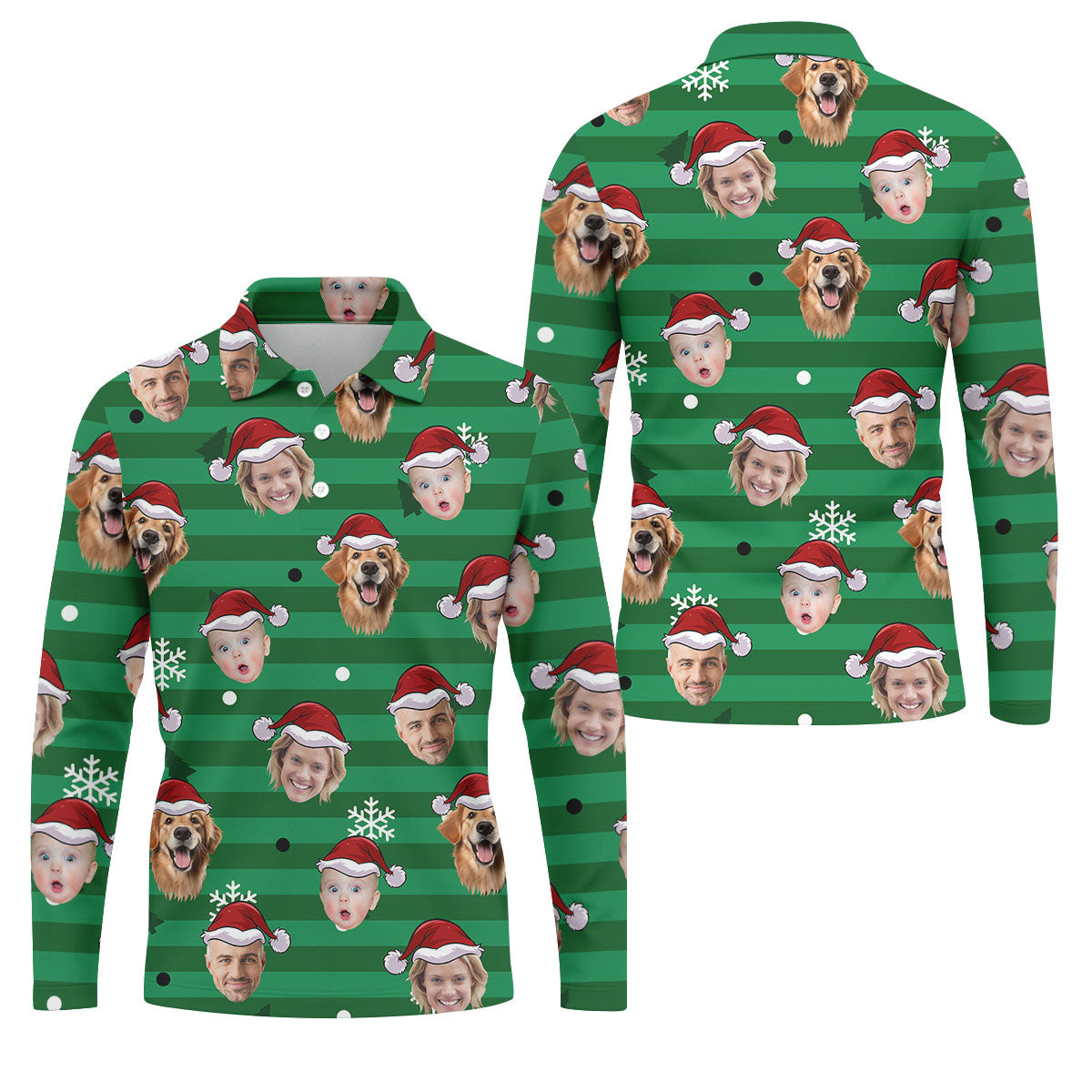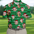 Custom Face Green Stripe Christmas Golf Shirt, Golf Tops For Men, Polo Shirts For Men, Christmas Golf Gift