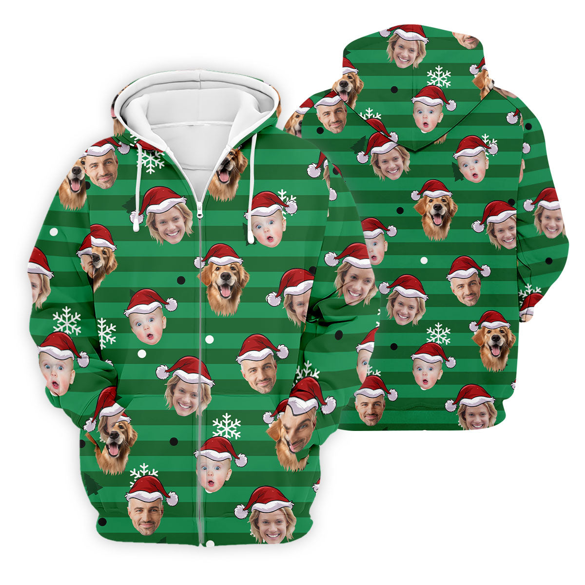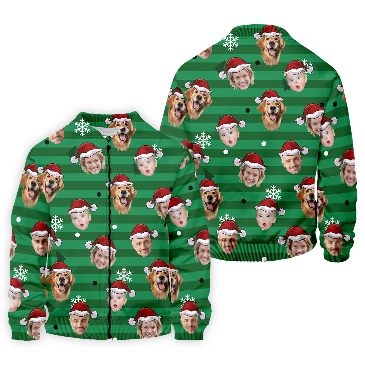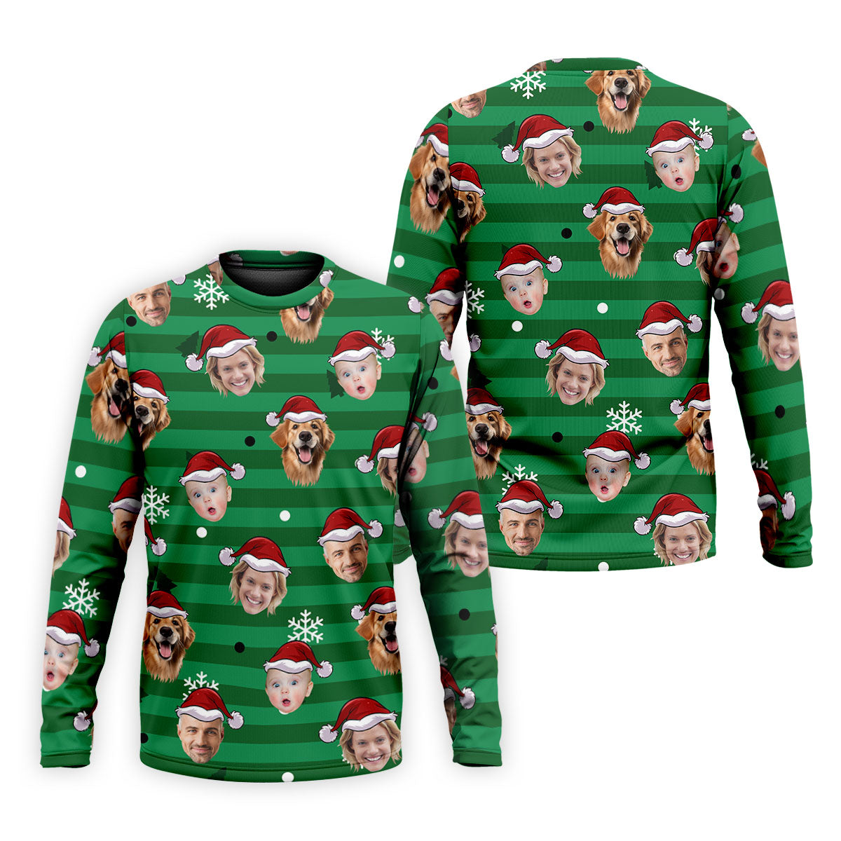 Custom Face Green Stripe Christmas Golf Shirt, Golf Tops For Men, Polo Shirts For Men, Christmas Golf Gift