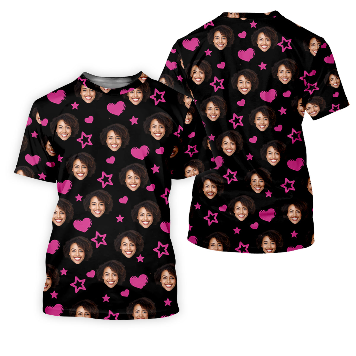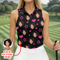 Custom Face Heart And Star Black Golf Shirt, Valentines Golf Gift, Golf Shirt For Women, Ladies Golf Polos