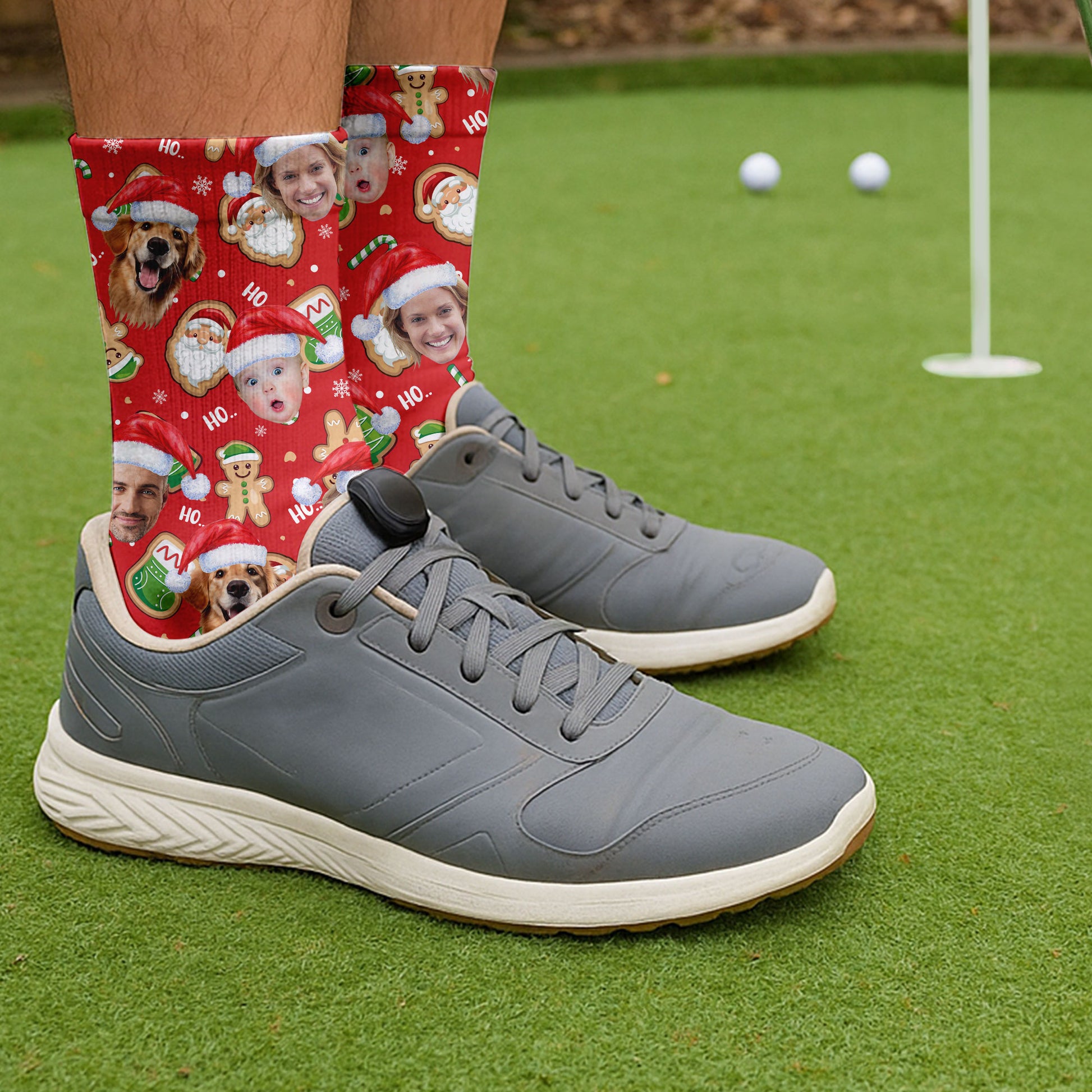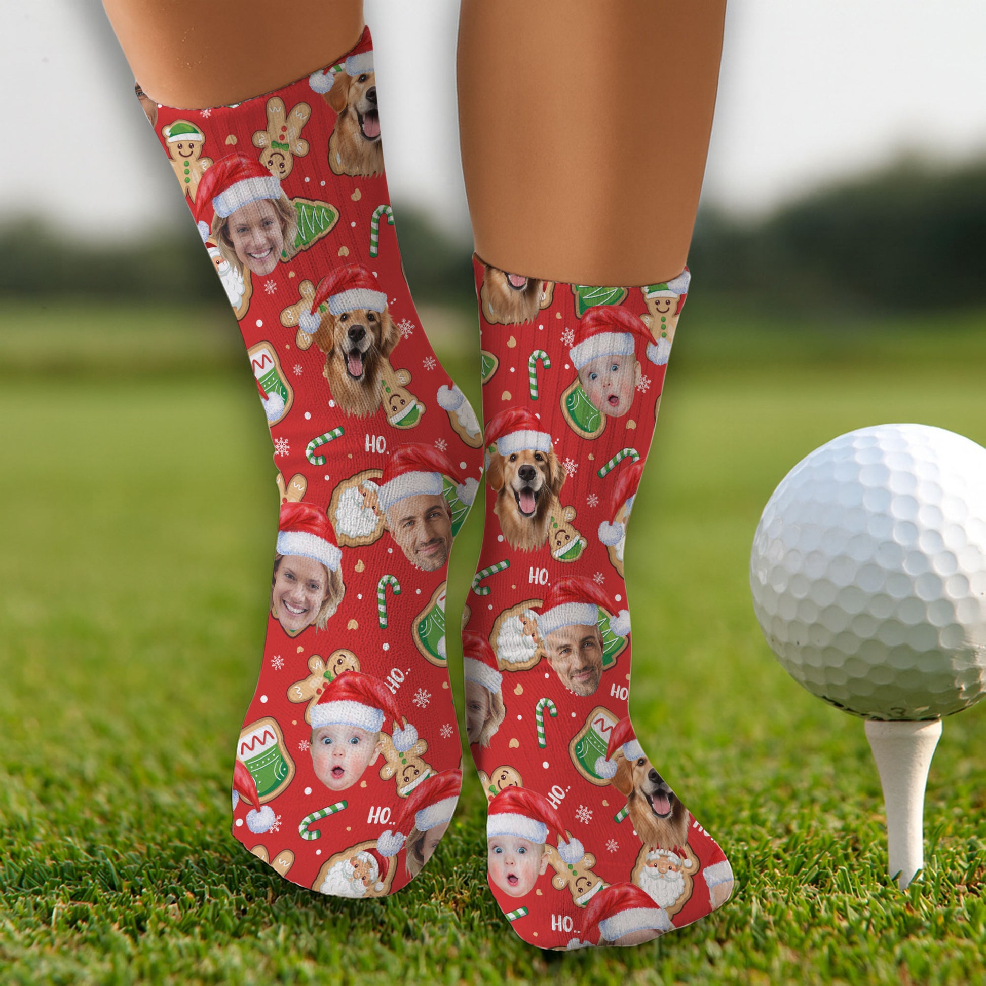 Custom Face Ho... Gingerbread Pattern Red Golf Socks, Christmas Golf Socks, Golf Gift Idea