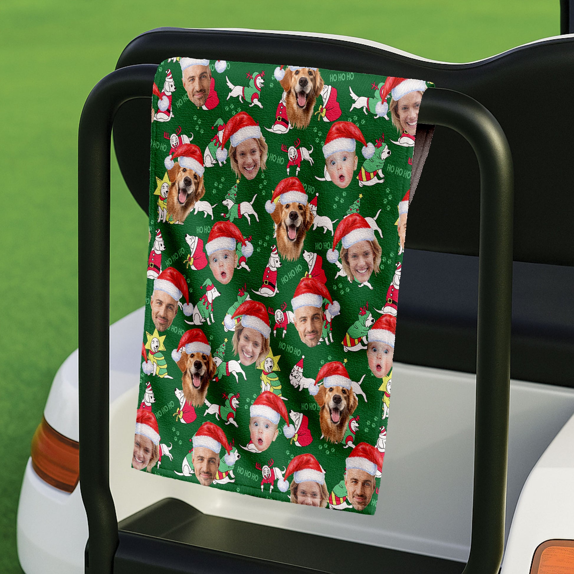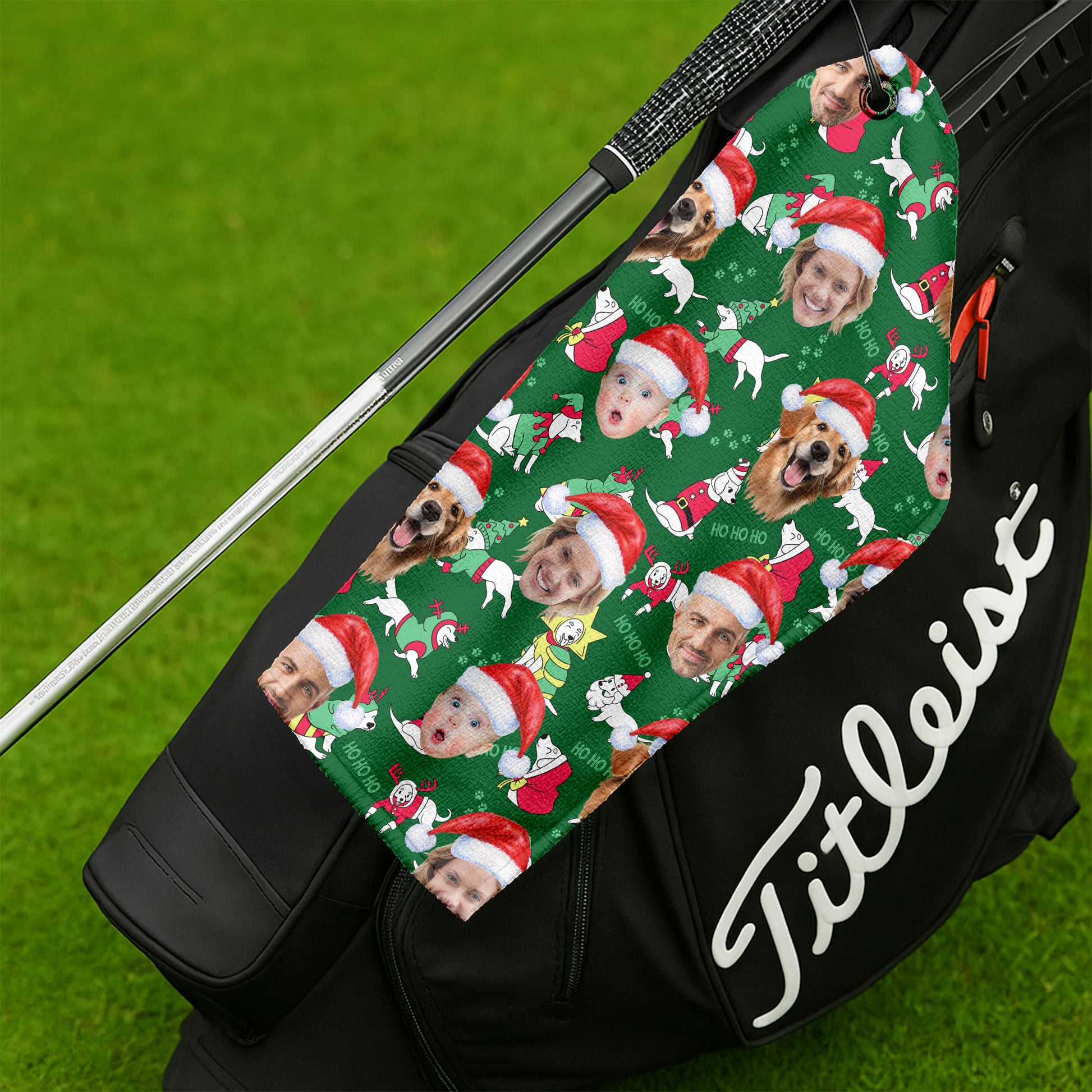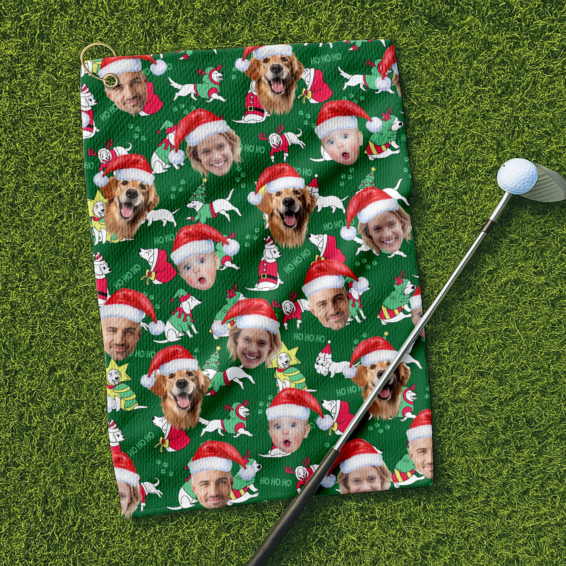 Custom Face Ho Ho Ho Cute White Dog Golf Towels, Christmas Golf Gift, Custom Golf Accessories