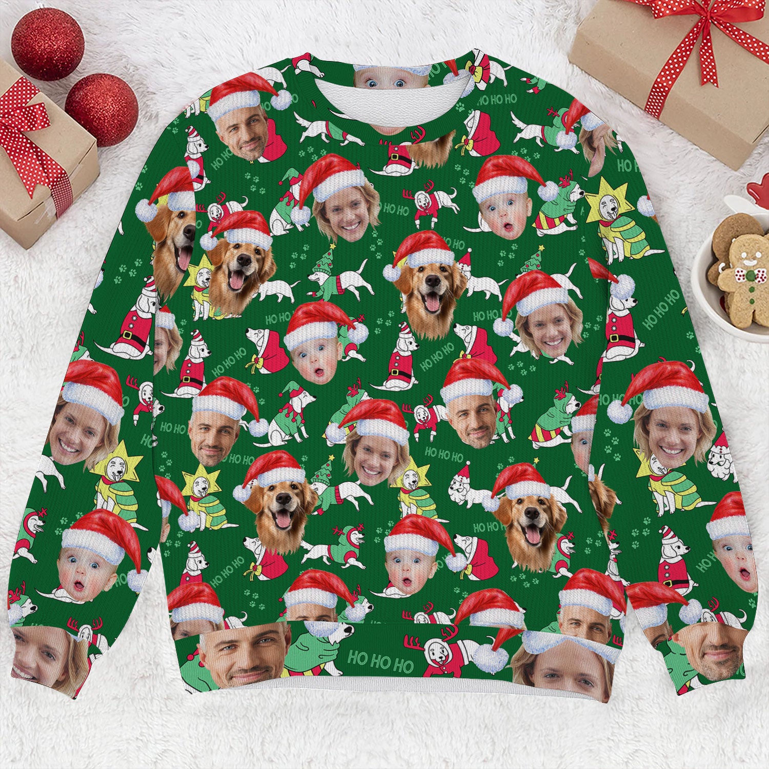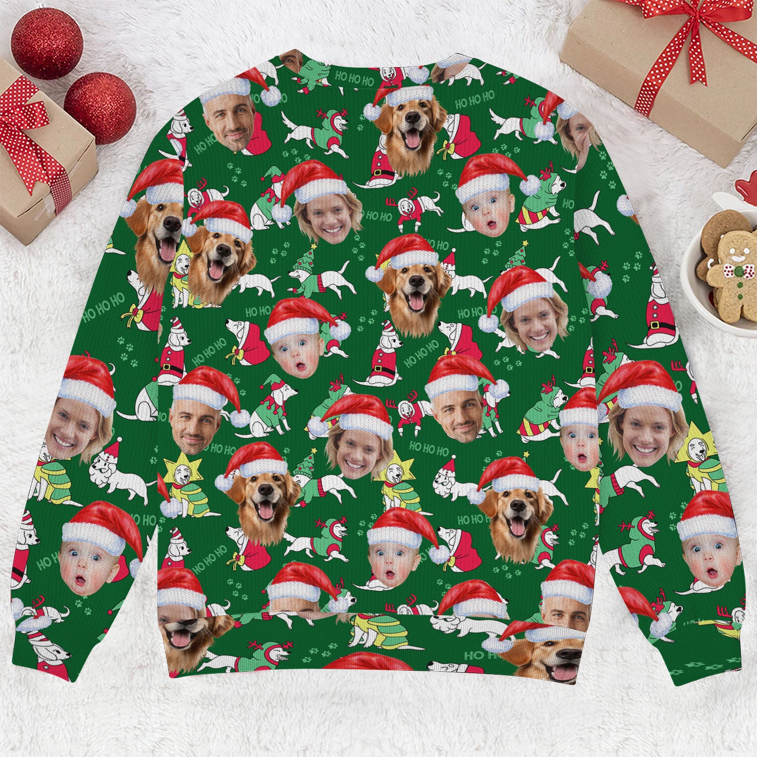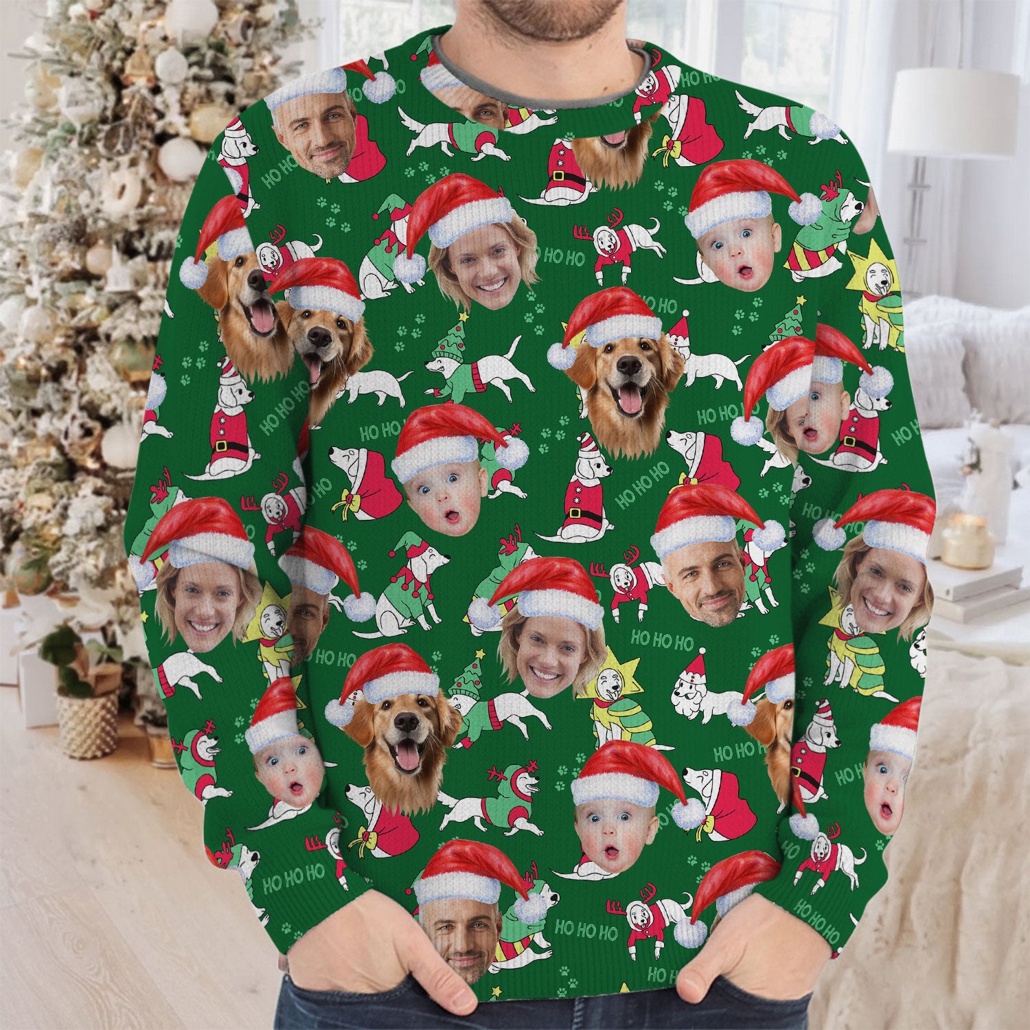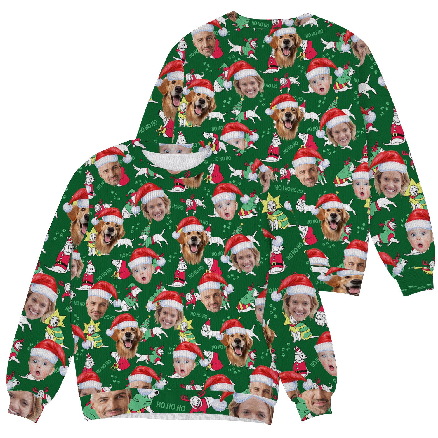 Custom Face Ho Ho Ho Cute White Dog Golf Ugly Sweater, Christmas Golf Shirt, Golf Sweater