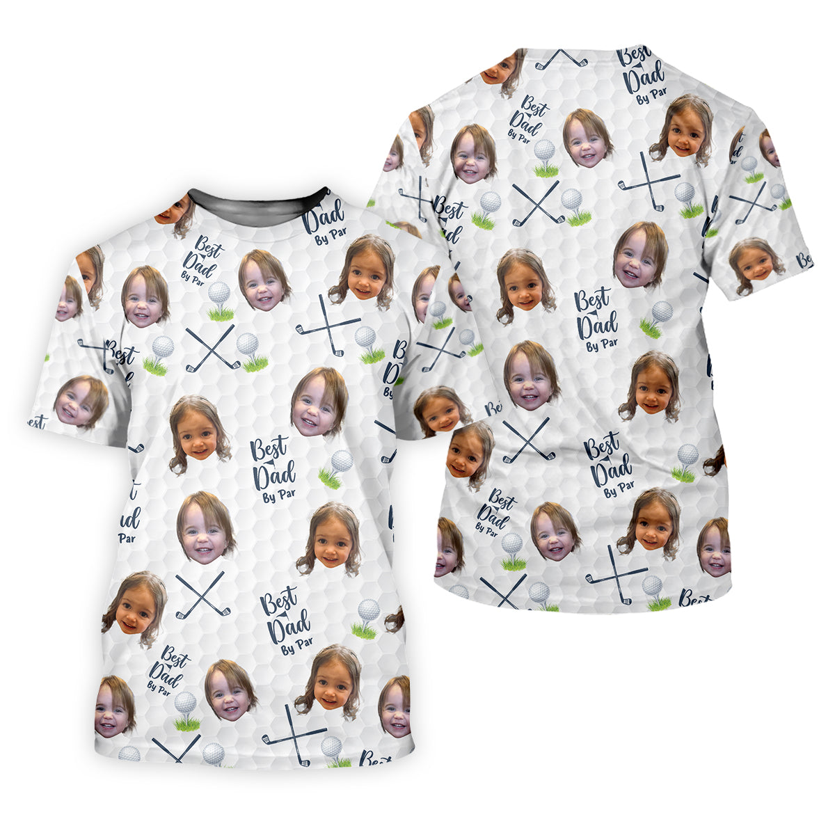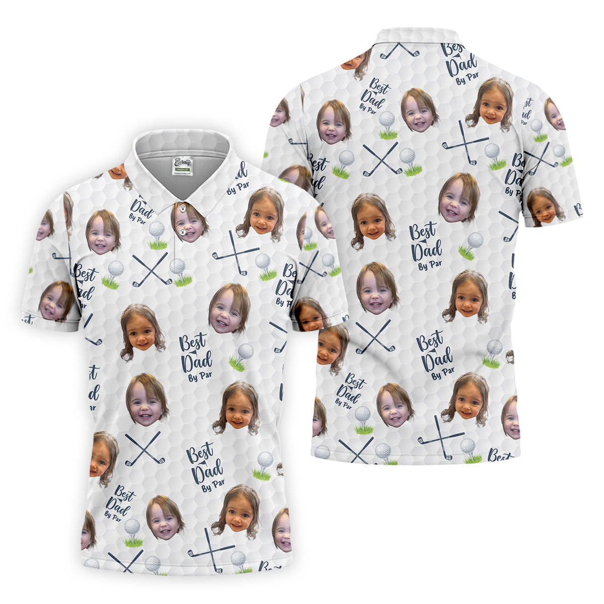 Custom Face Kids Photo, Best Papa By Par Funny Polo Golf Shirt, Christmas Golf Gift