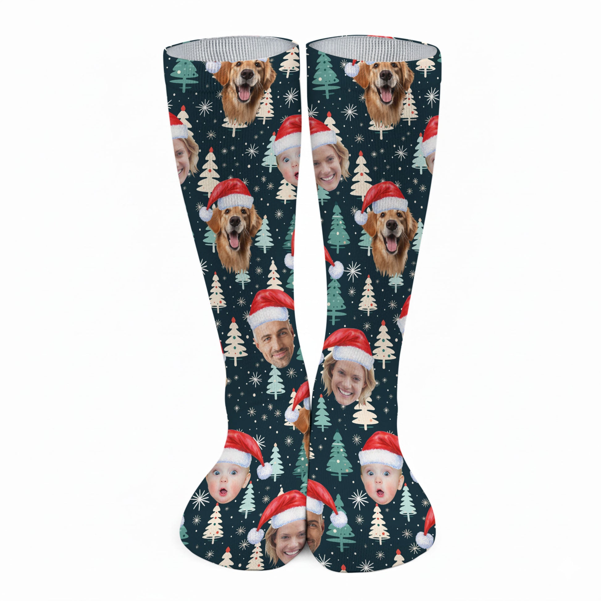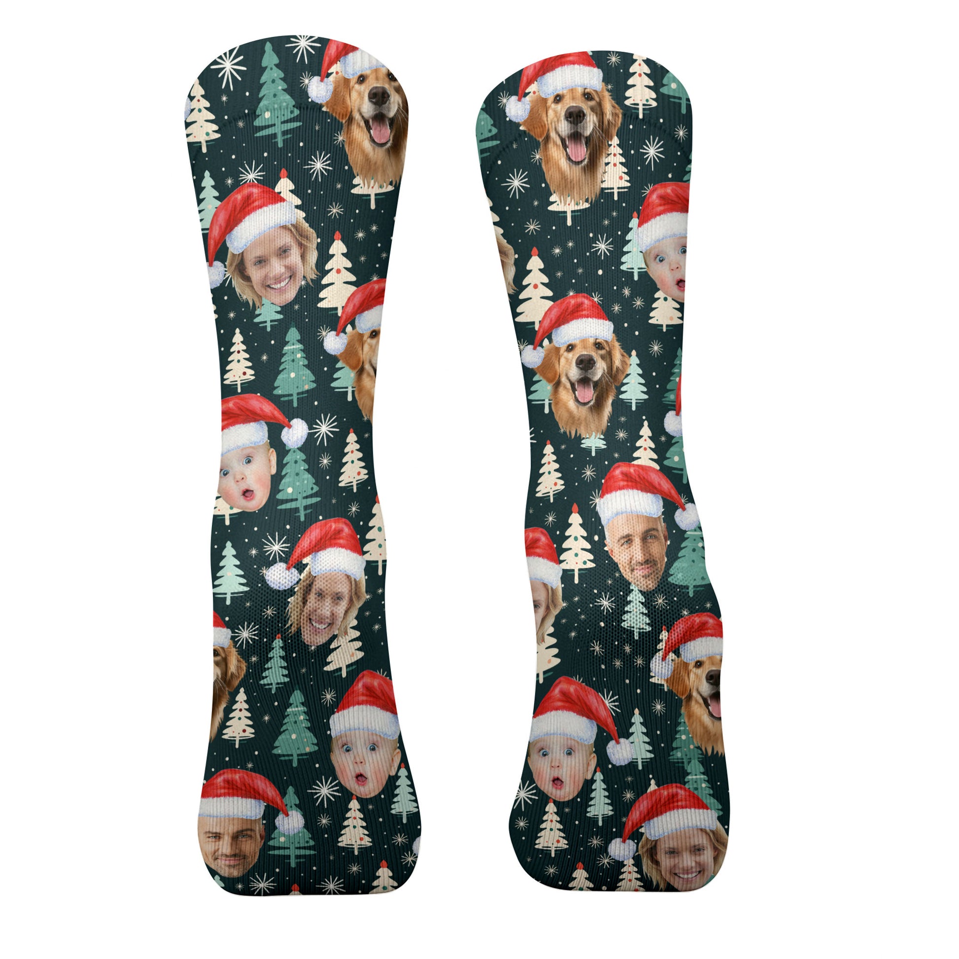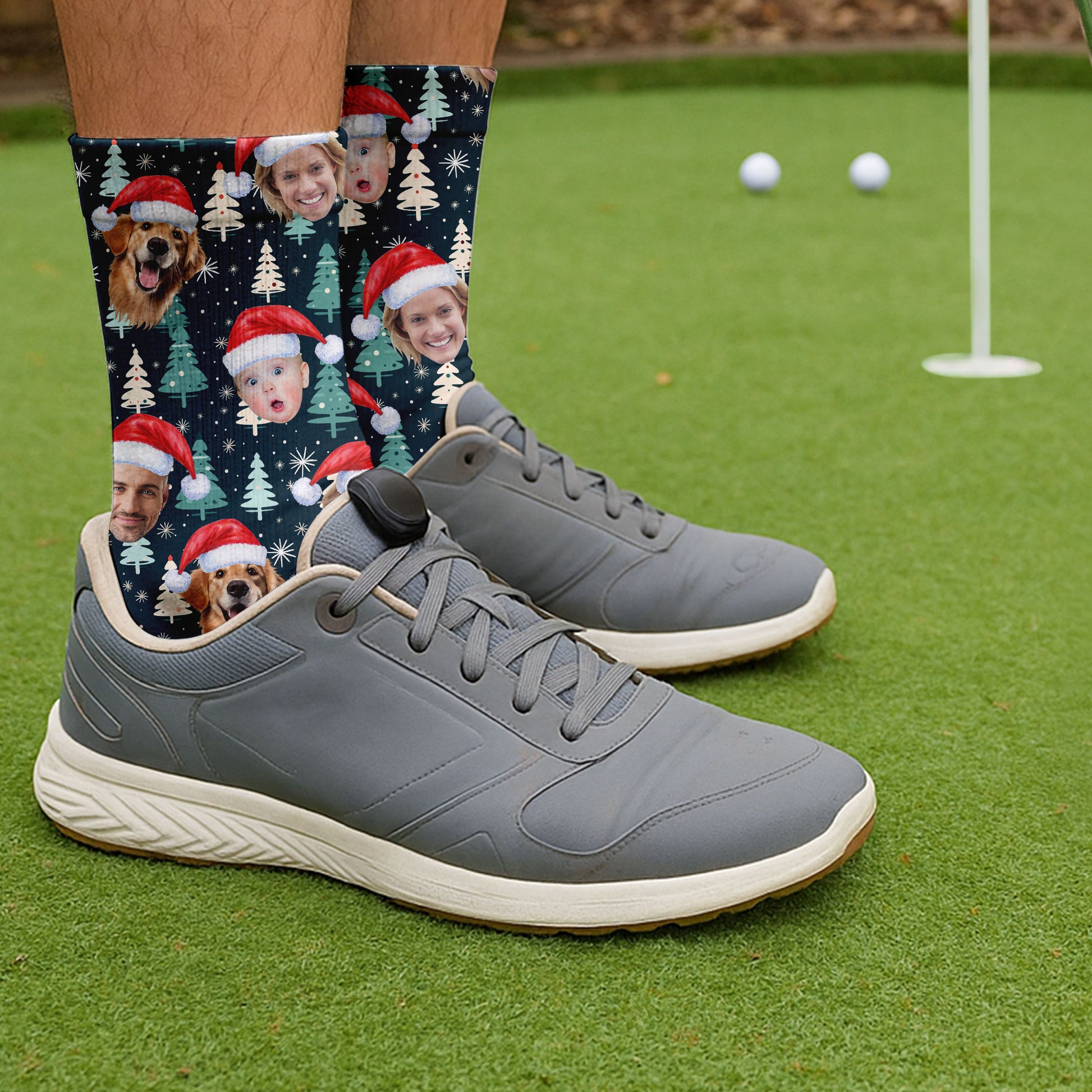 Custom Face Little Pine Tree Snowflake Pattern Golf Socks, Christmas Golf Socks, Golf Gift Idea