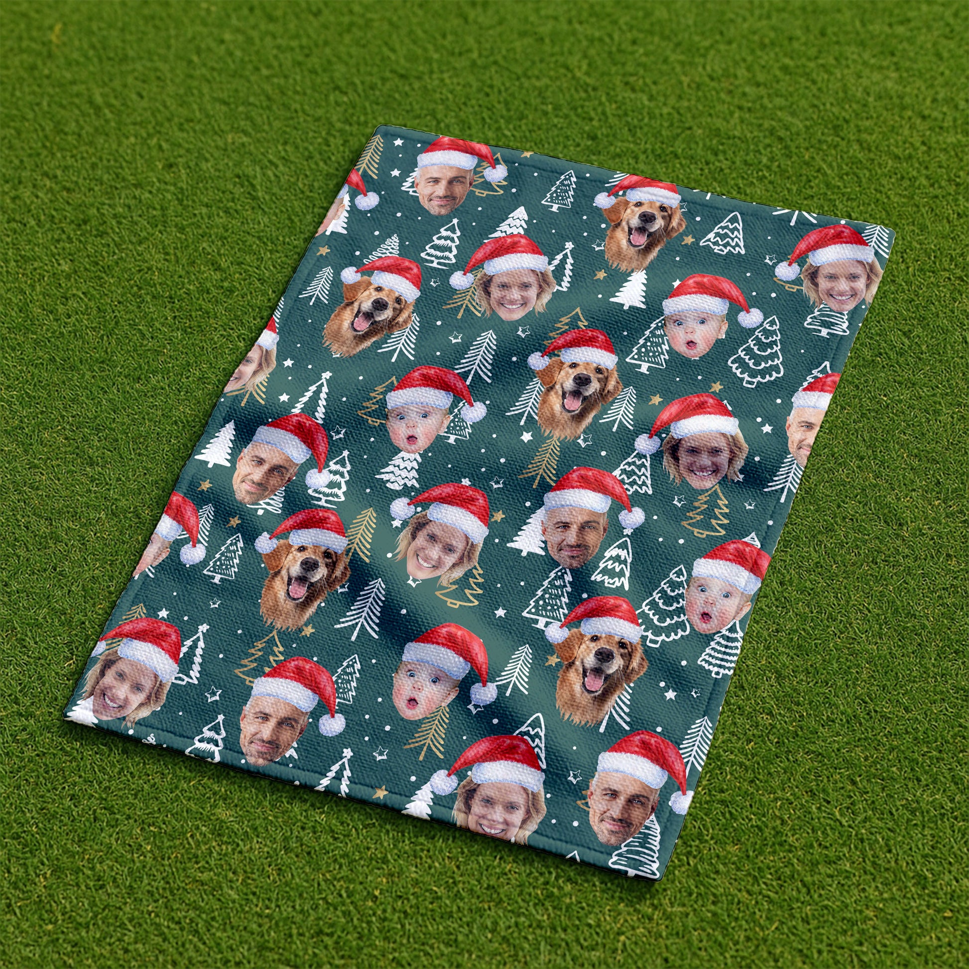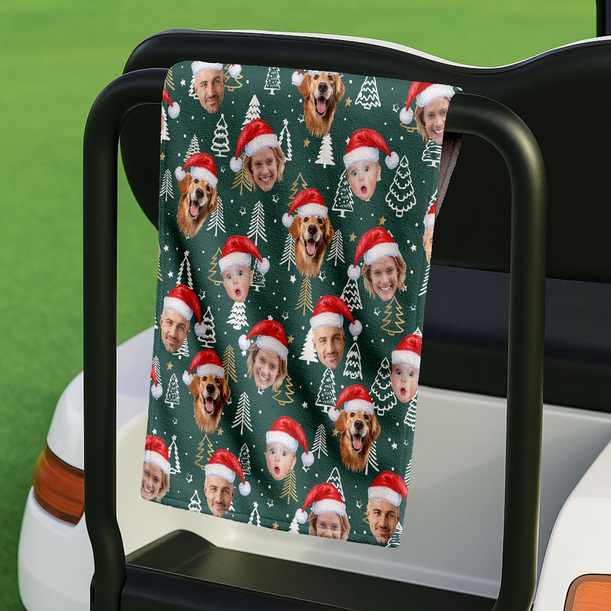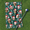 Custom Face Pine Tree Pattern Dark Green Golf Towels, Christmas Golf Gift, Custom Golf Accessories