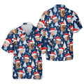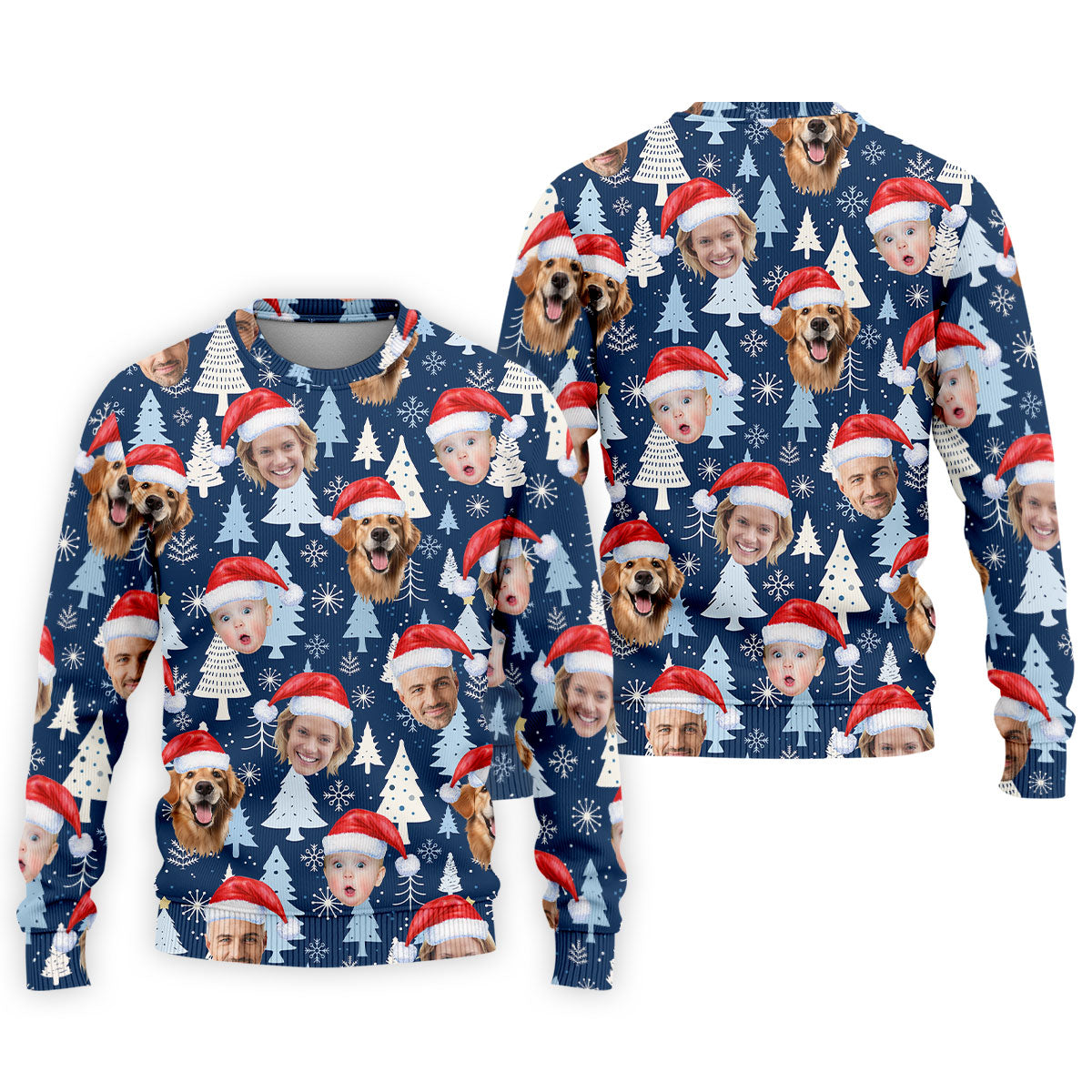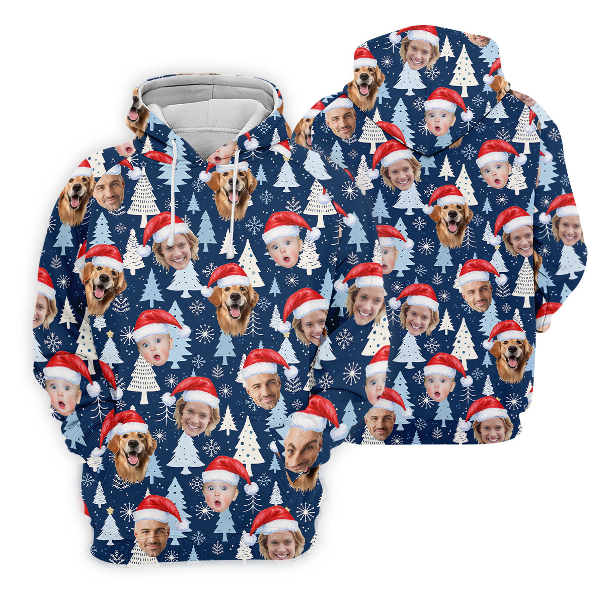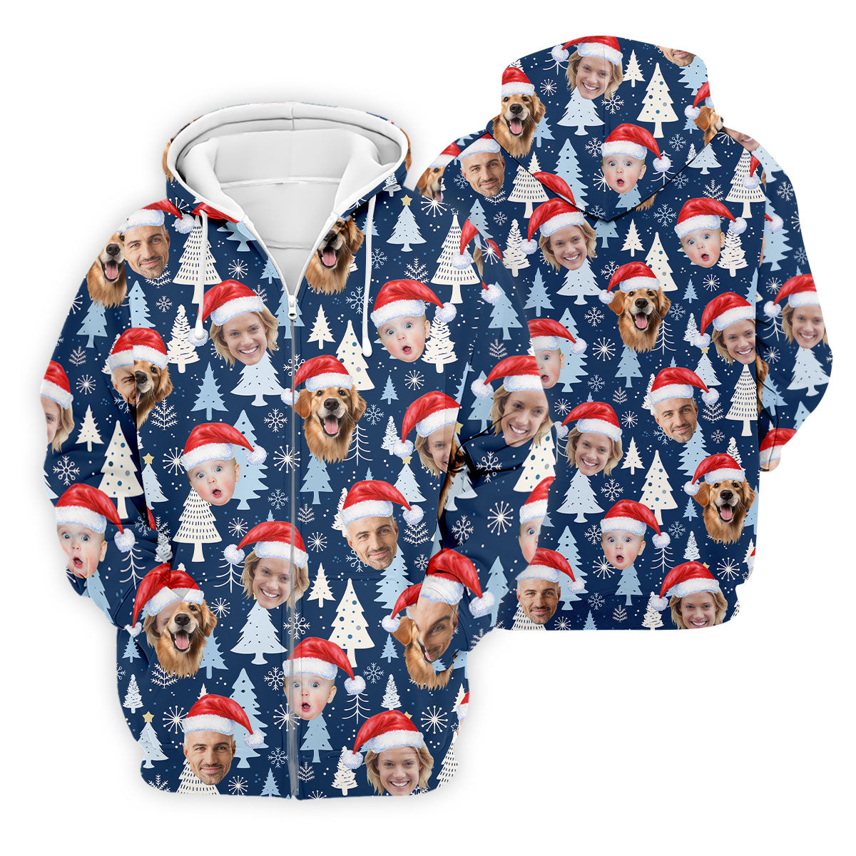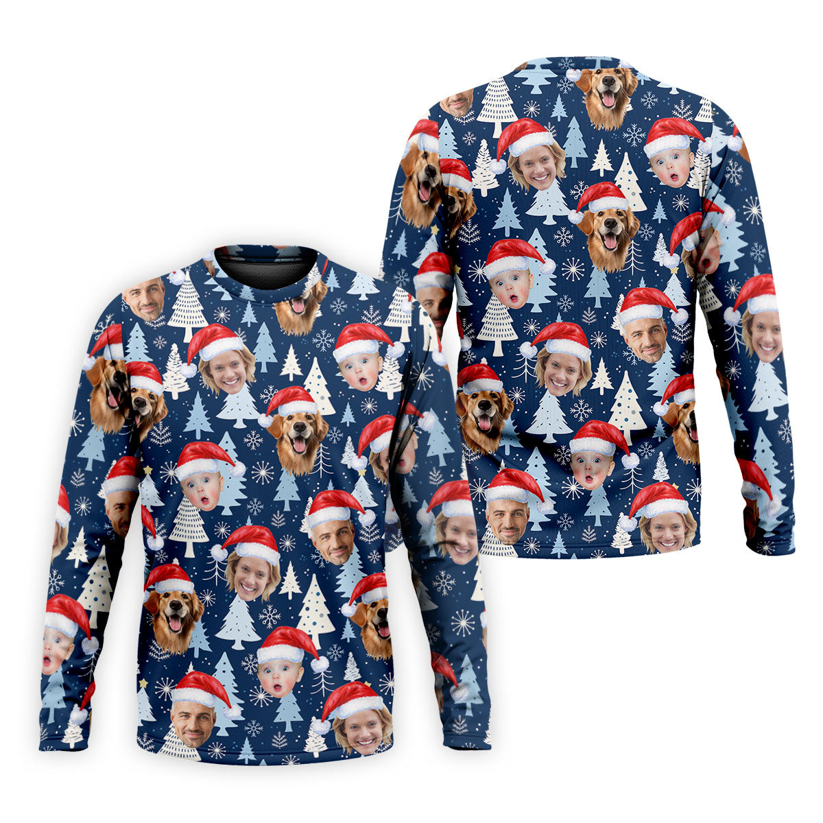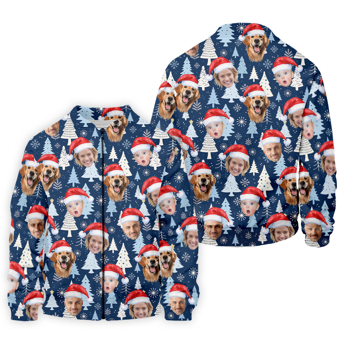 Custom Face Pine Tree Pattern White And Navy Christmas Golf Shirt, Golf Shirts For Men, Golf Gift For Men