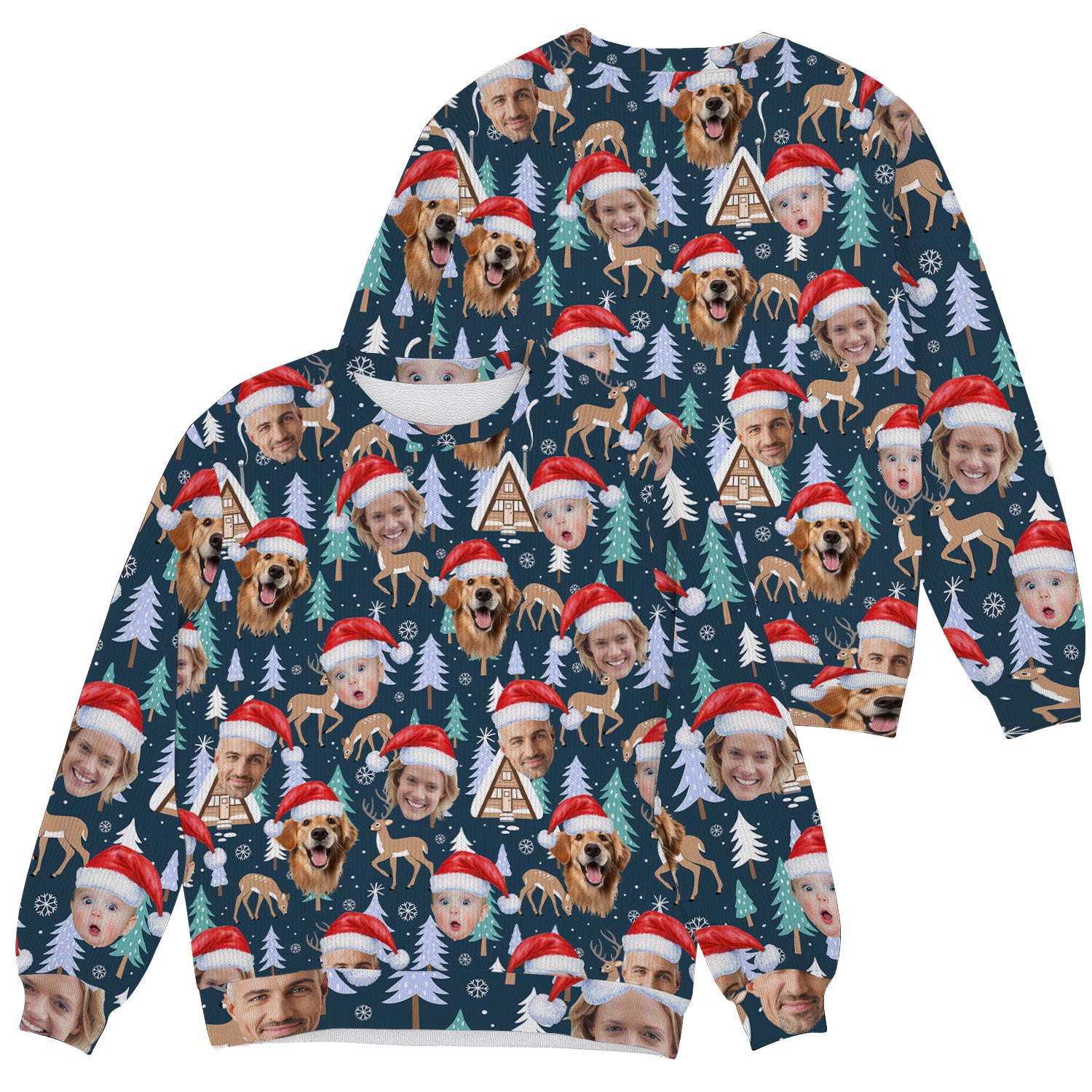 Custom Face Pine Tree Reindeer Dark Teal Green Golf Ugly Sweater, Christmas Golf Shirt, Golf Sweater