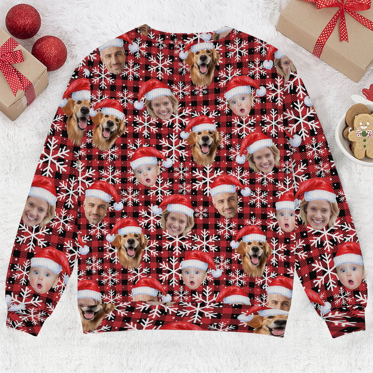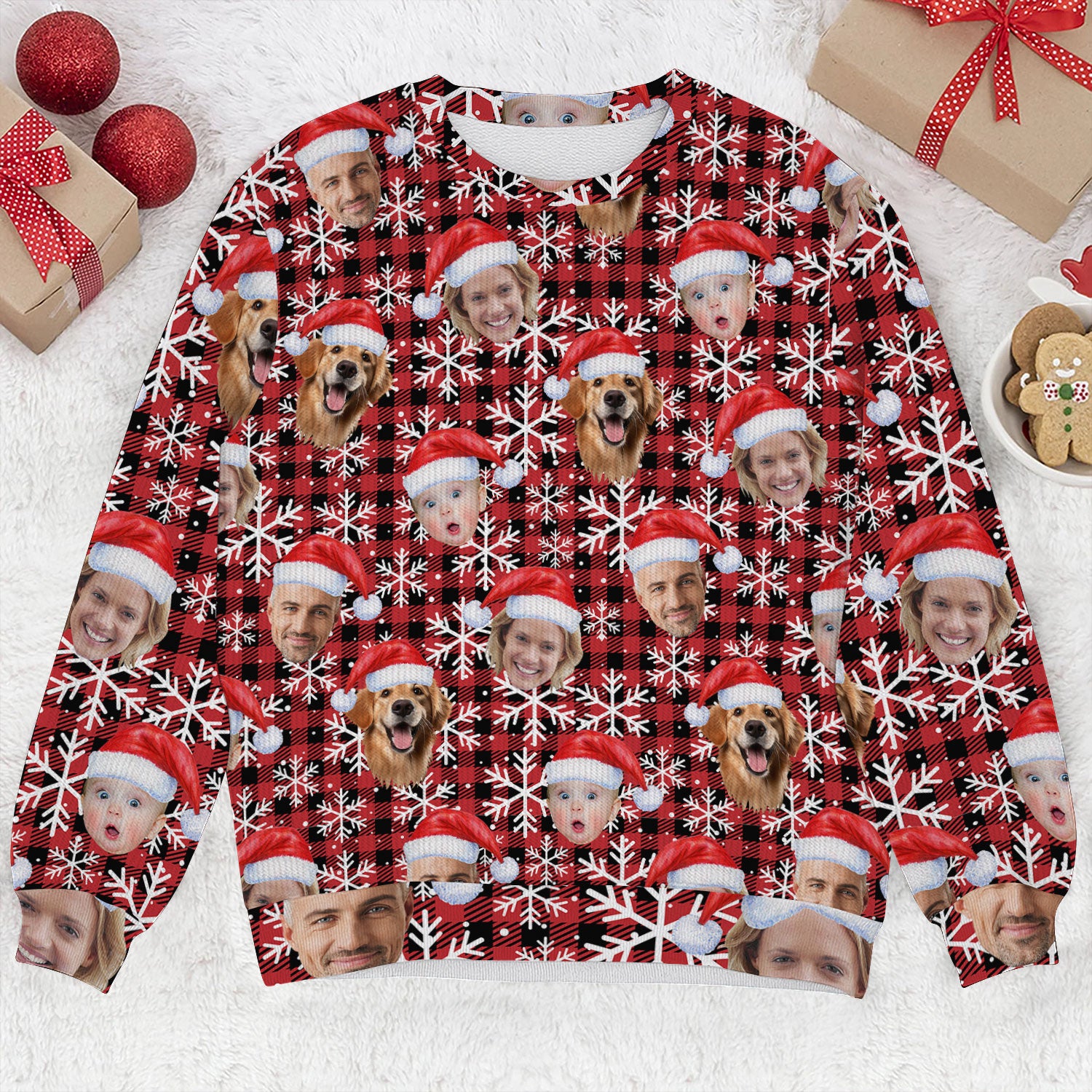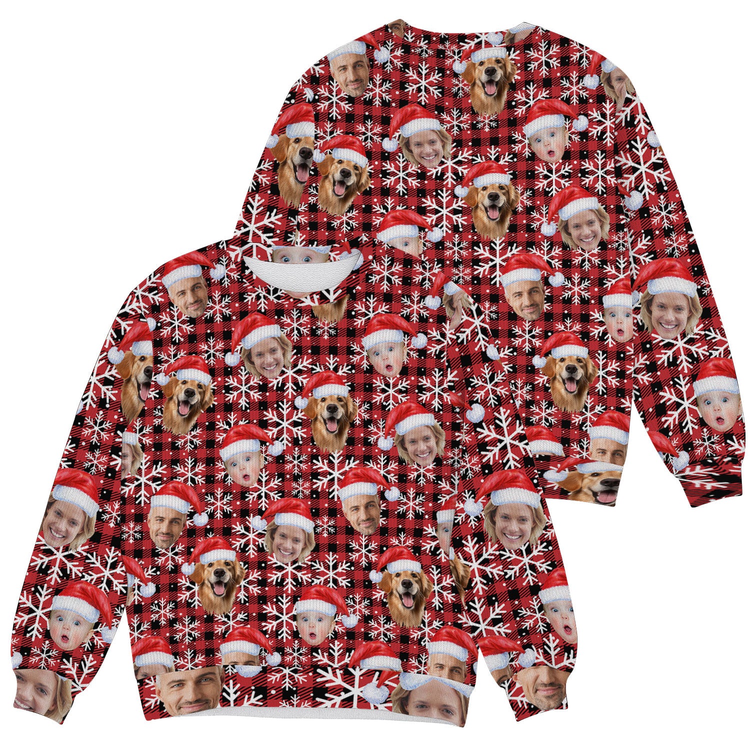 Custom Face Red And Black Checkered Golf Ugly Sweater, Golf Ugly Christmas Sweater, Christmas Golf Shirt