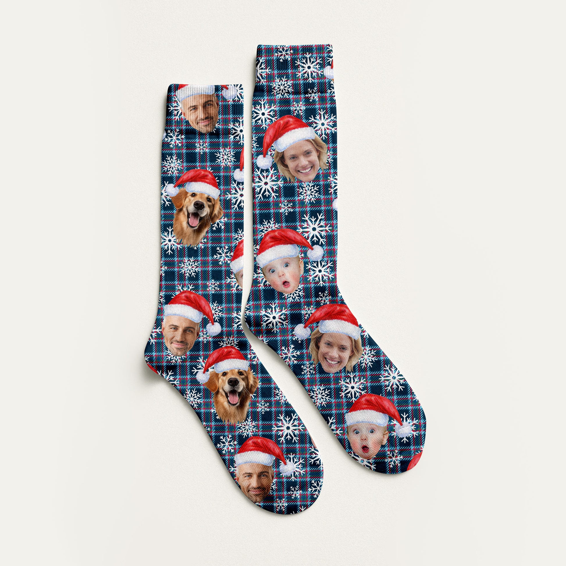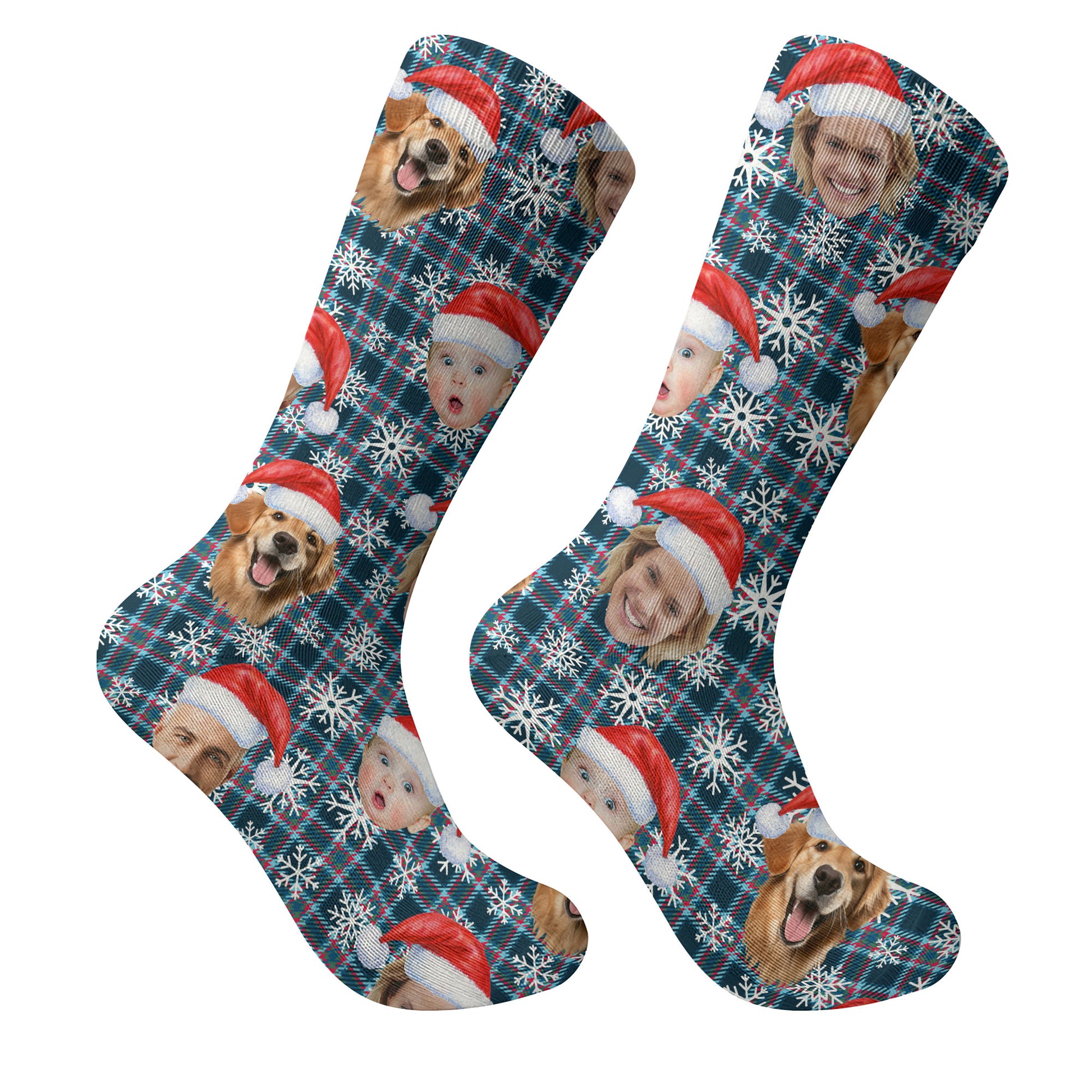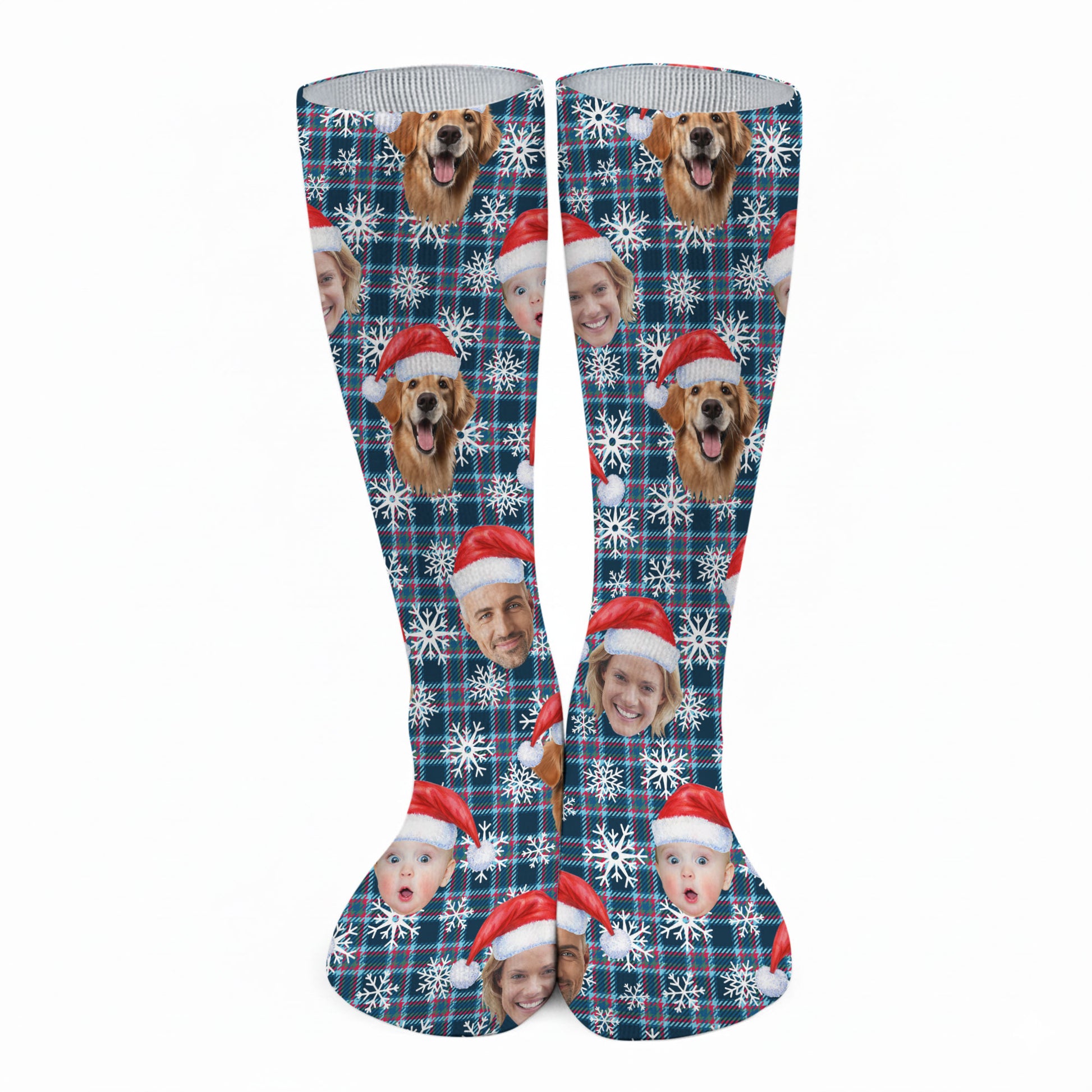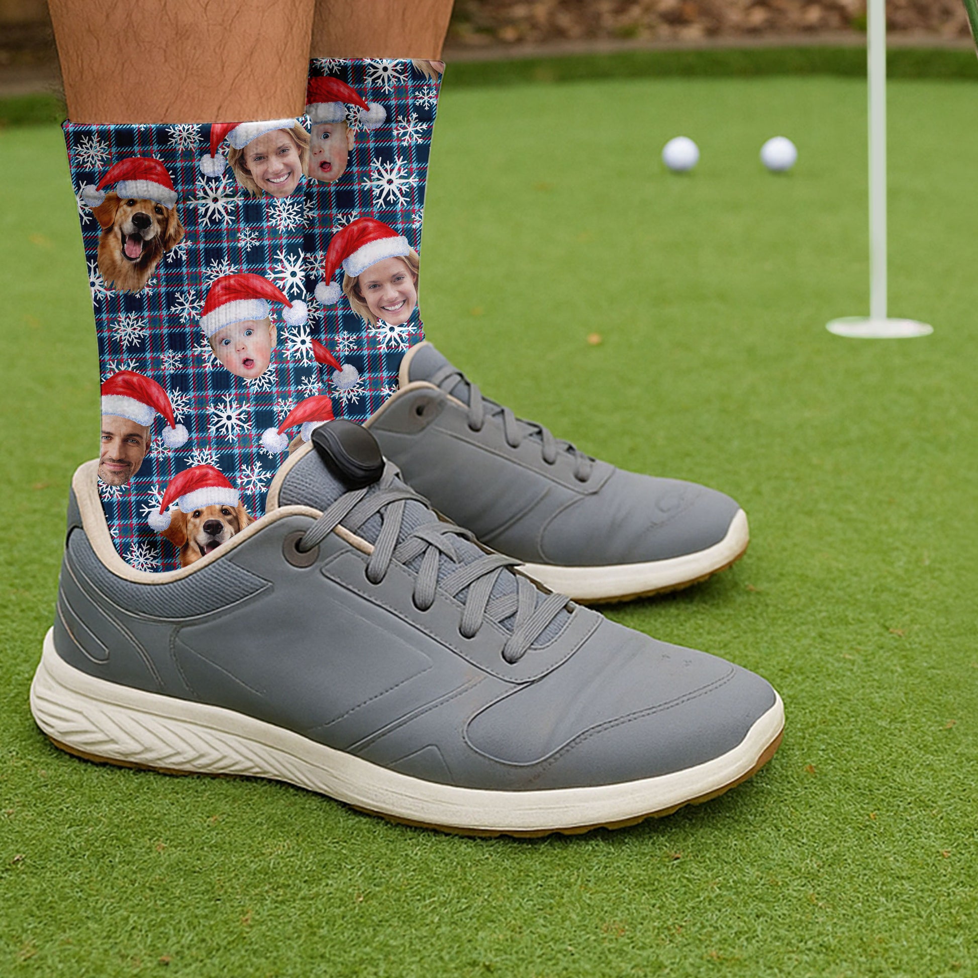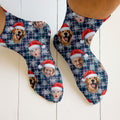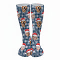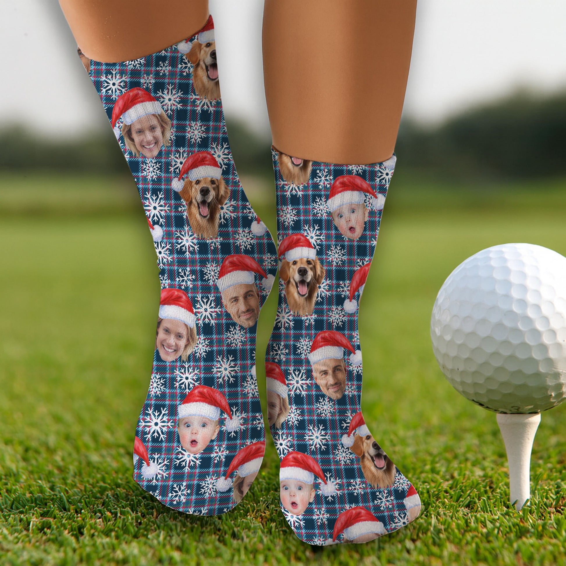 Custom Face Red And Blue Plaid Snowflakes Print Golf Socks, Christmas Golf Gift, Custom Golf Accessories
