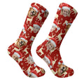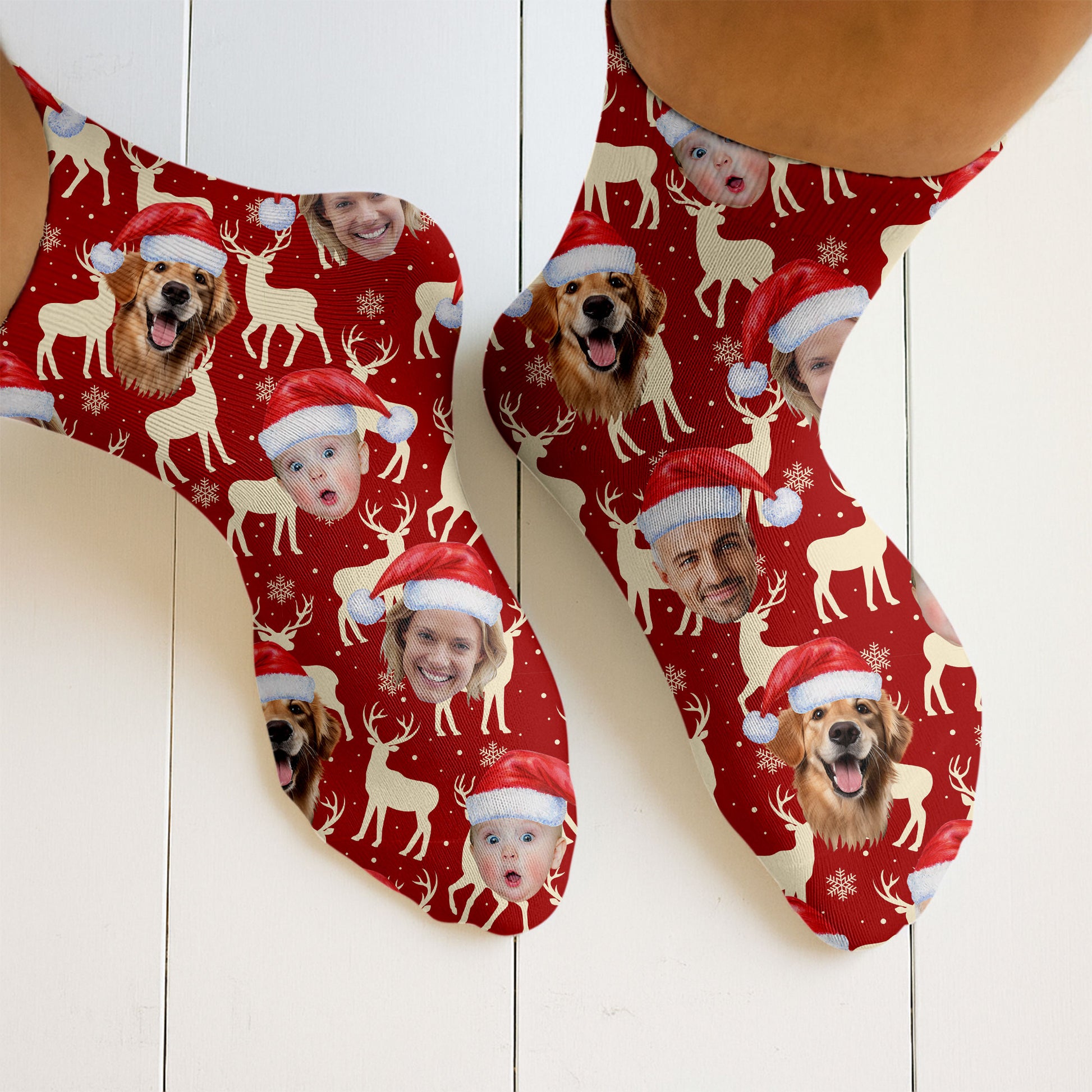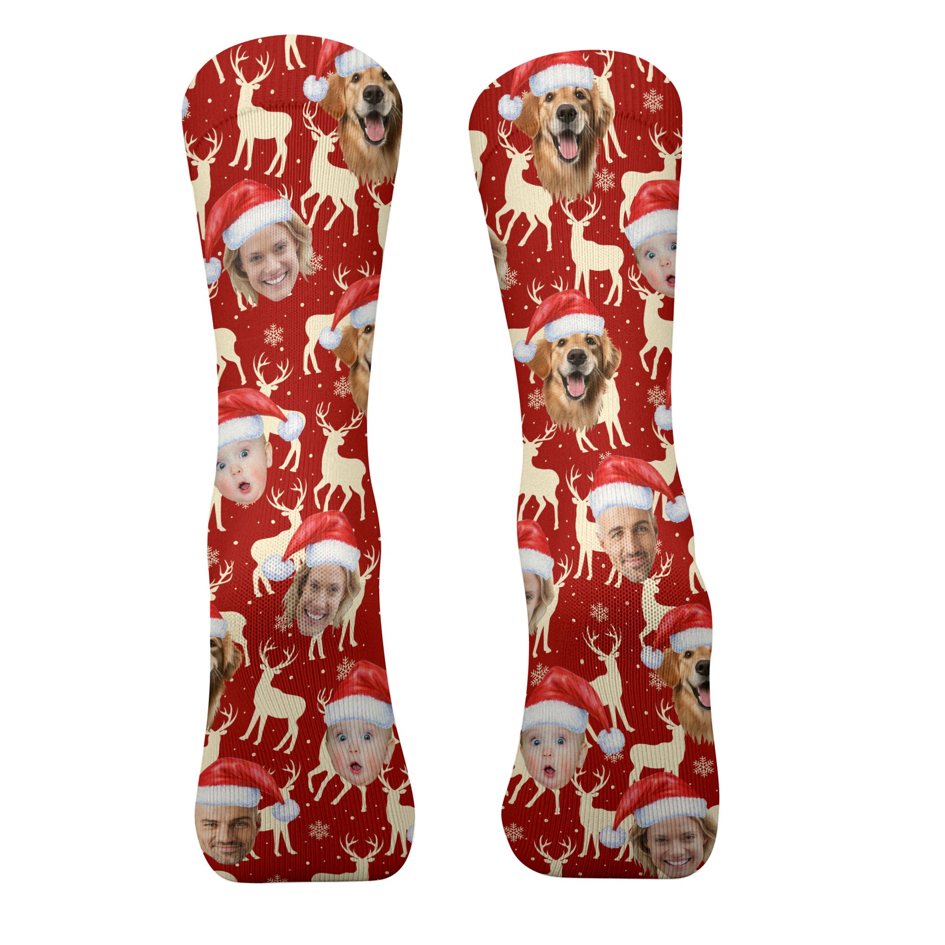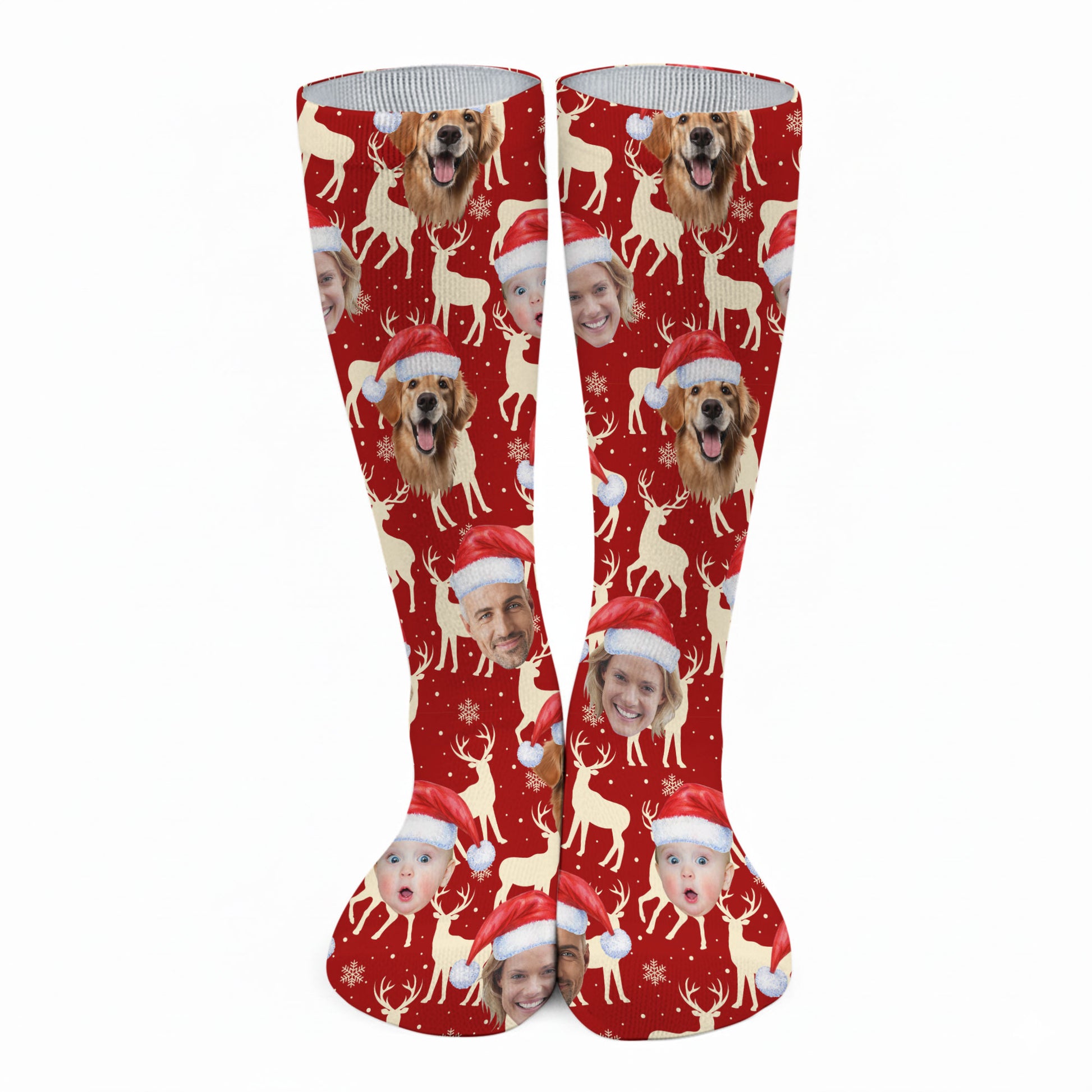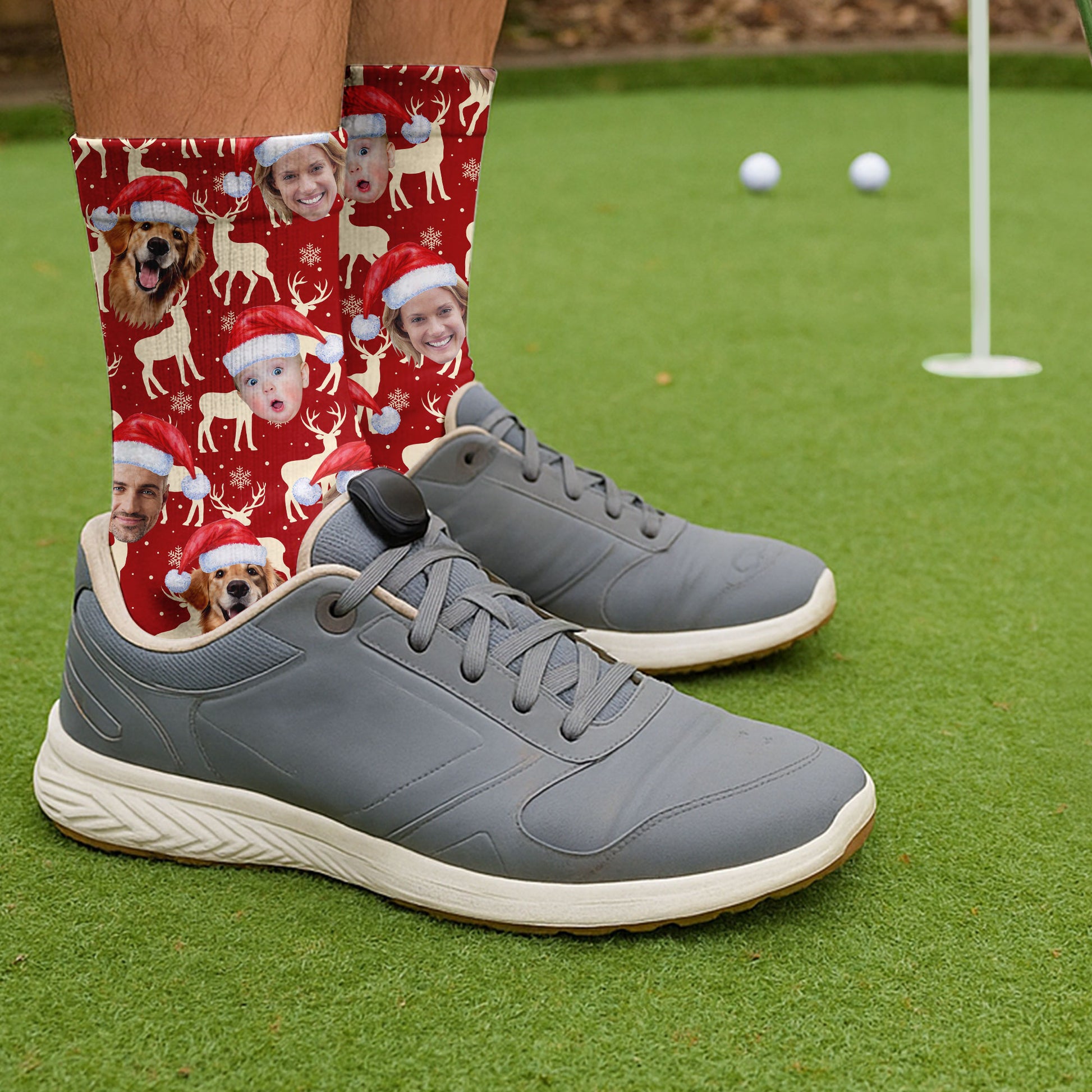 Custom Face Reindeer Pattern Beige And Red Golf Socks, Christmas Golf Gift, Custom Golf Accessories