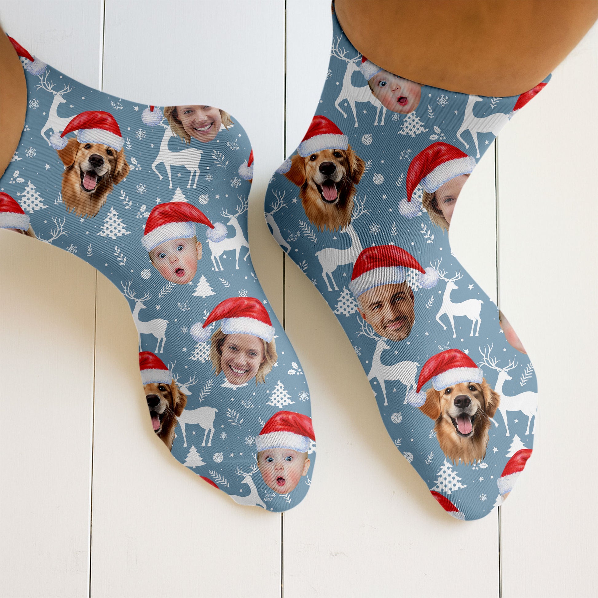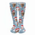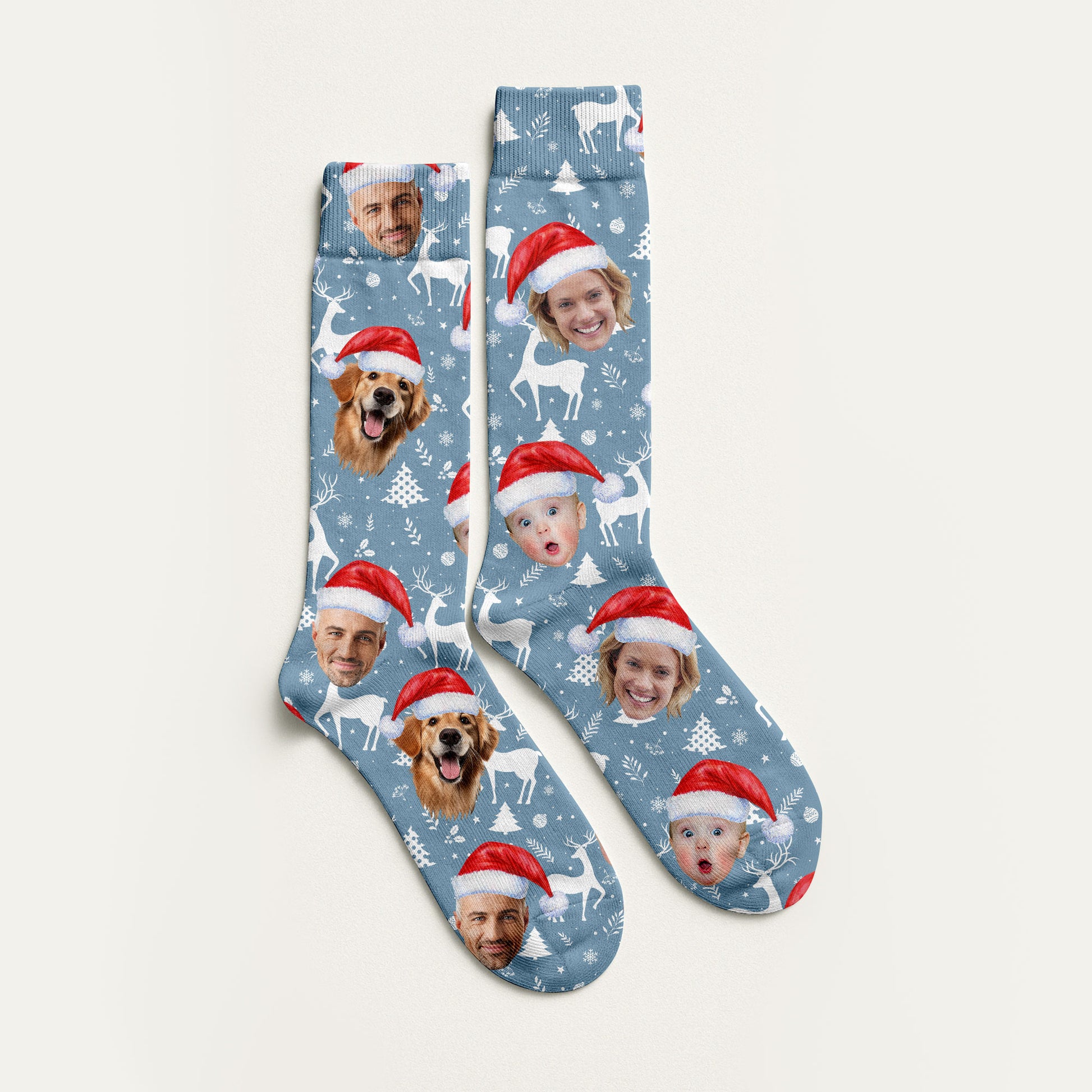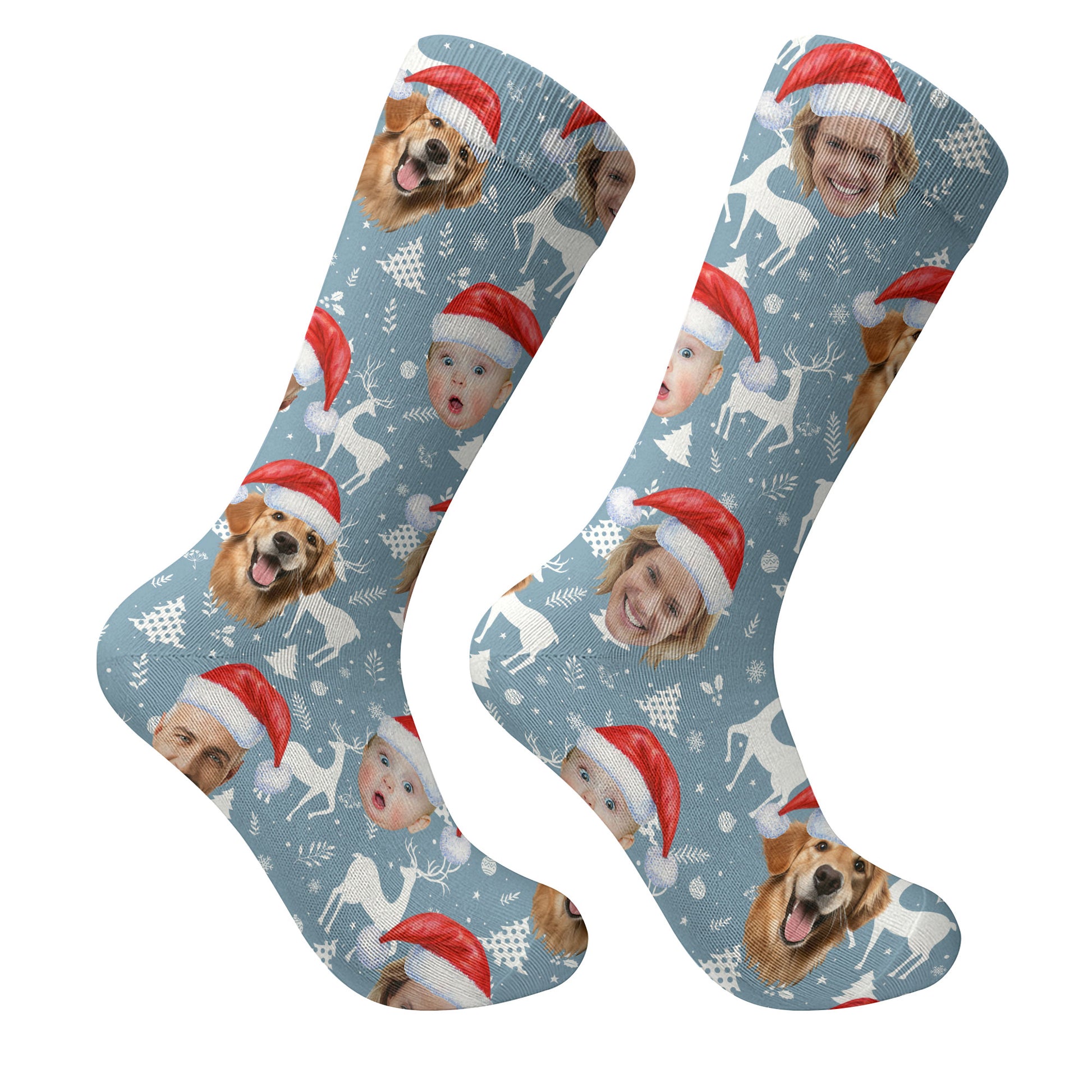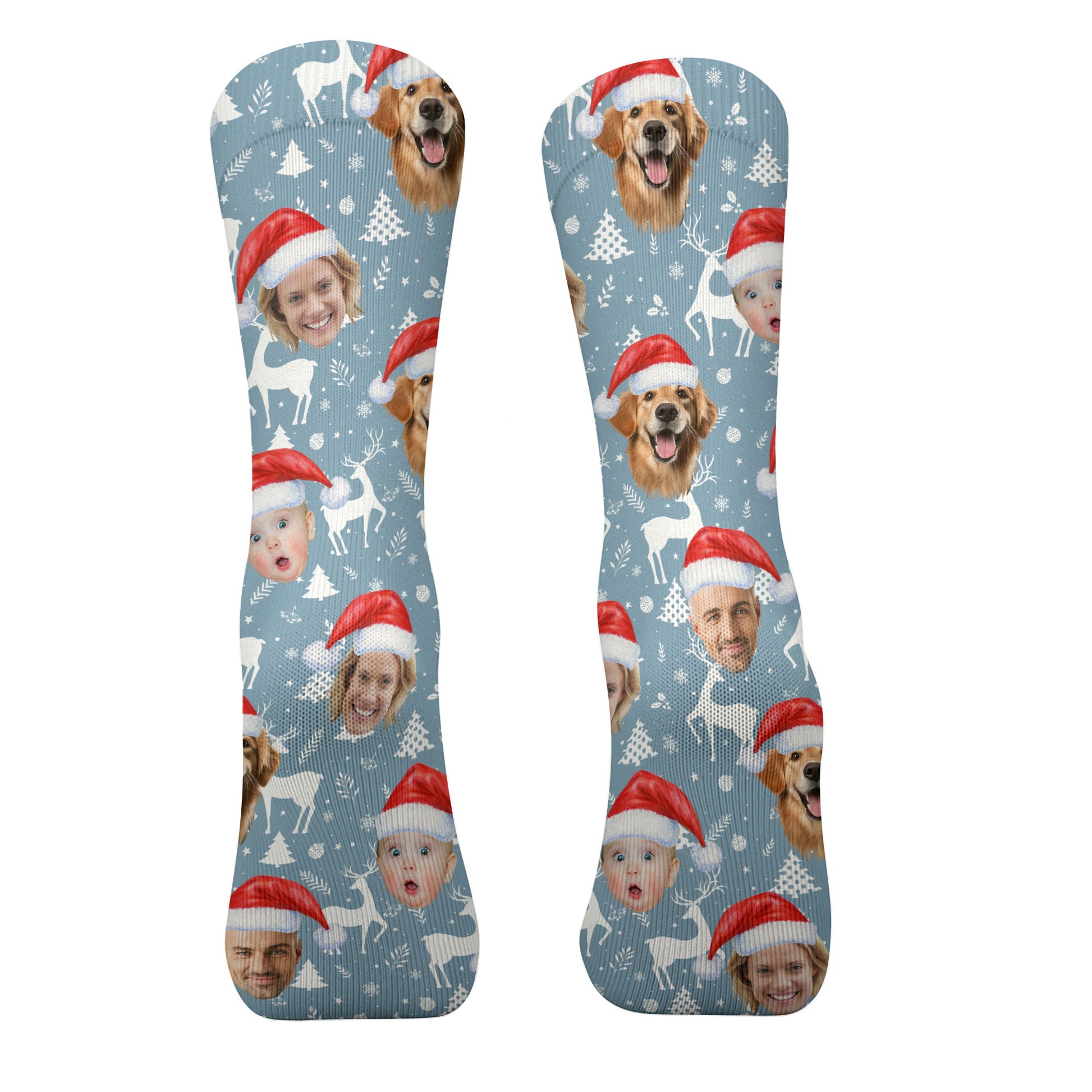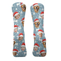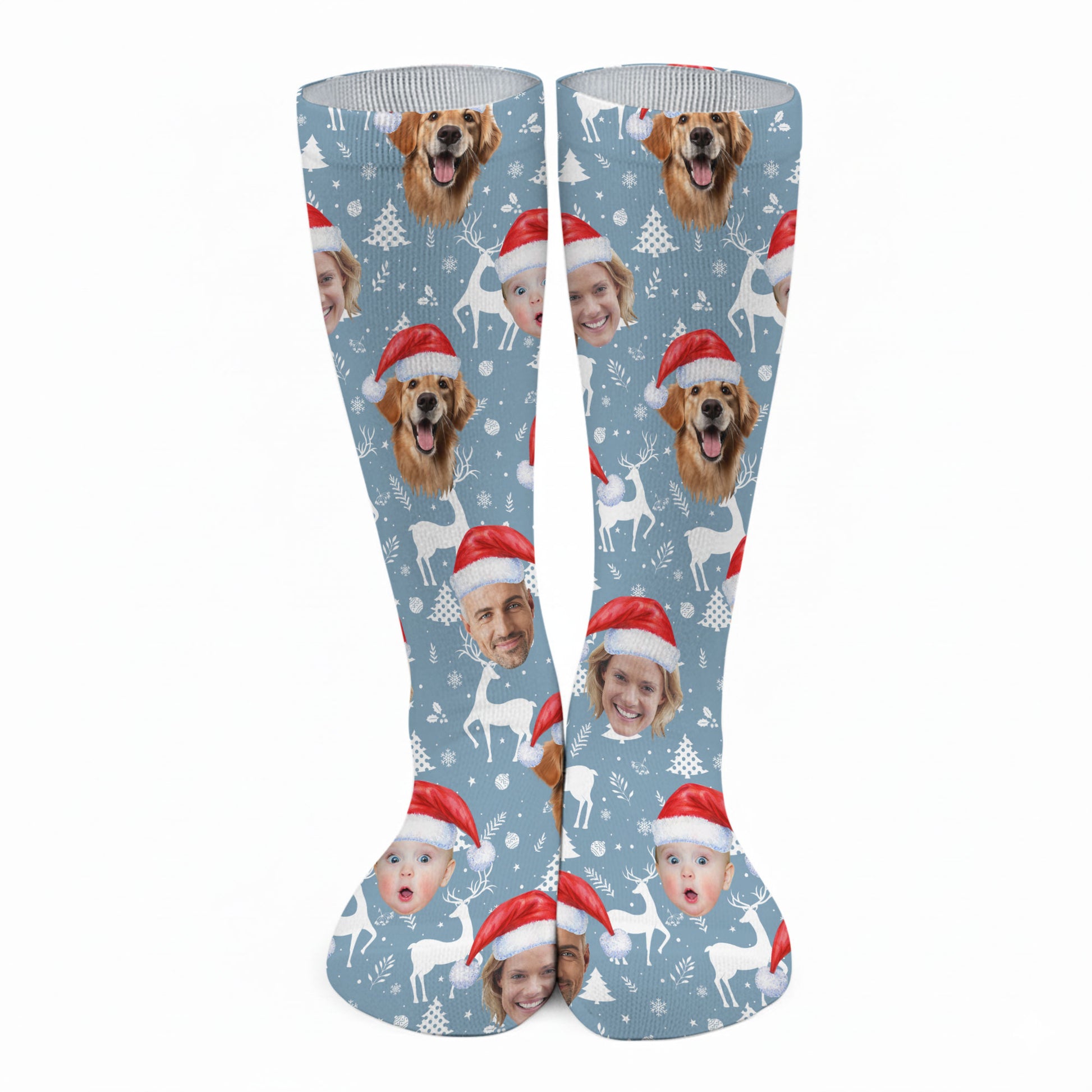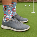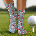 Custom Face Reindeer Pattern Ice Blue Golf Socks, Christmas Golf Socks, Golf Gift Idea