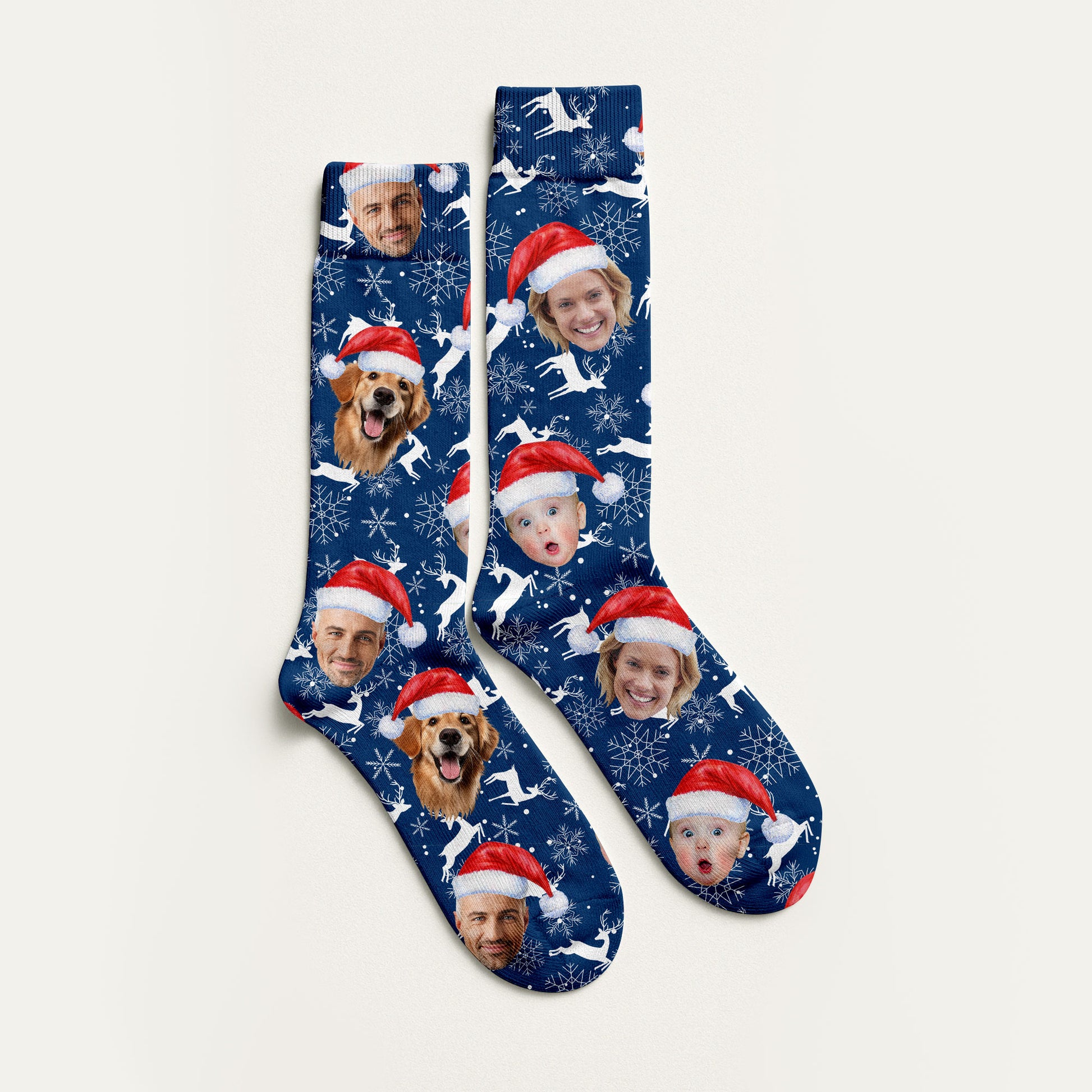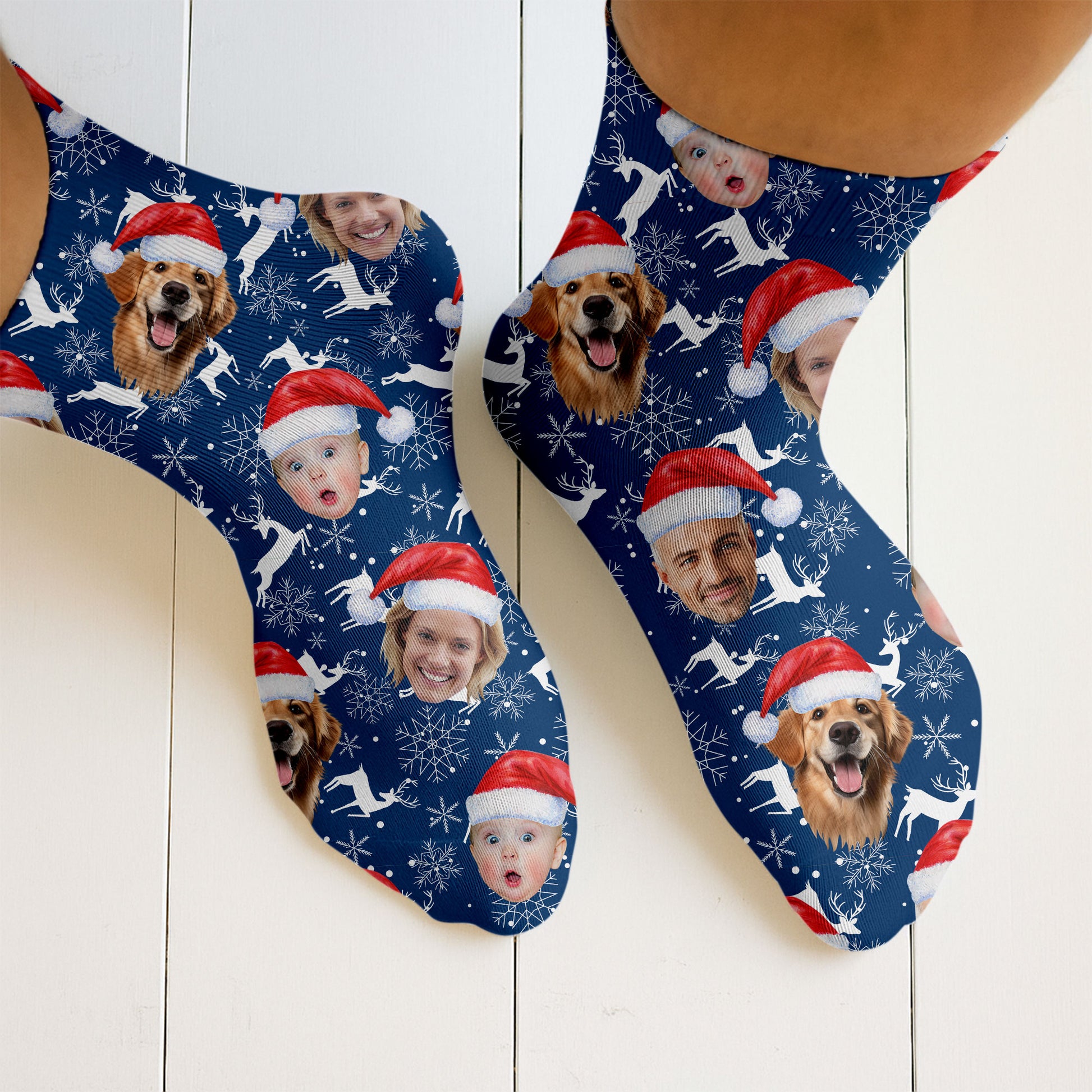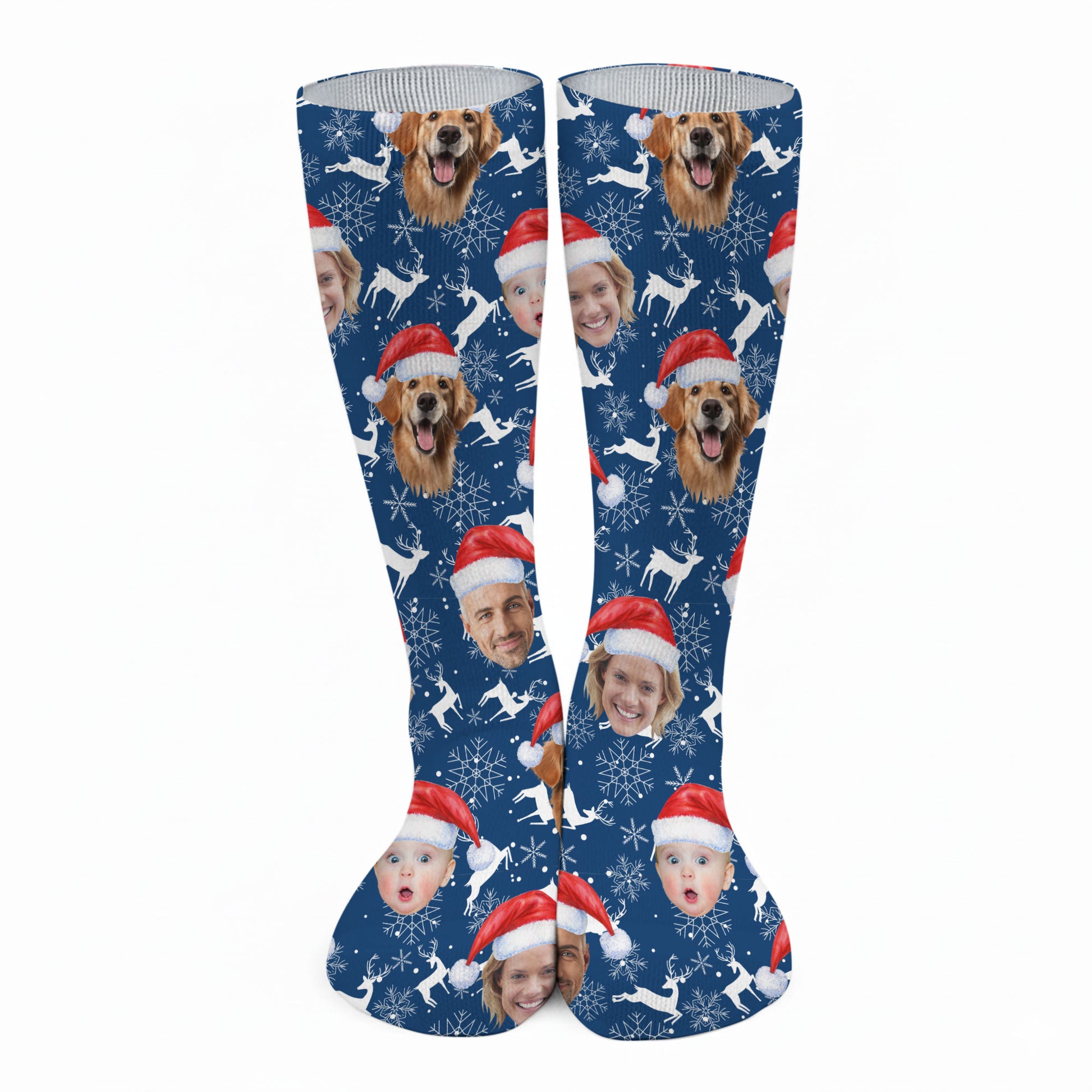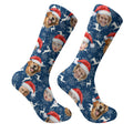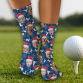 Custom Face Reindeer Pattern Navy Golf Socks, Christmas Golf Socks, Golf Gift Idea