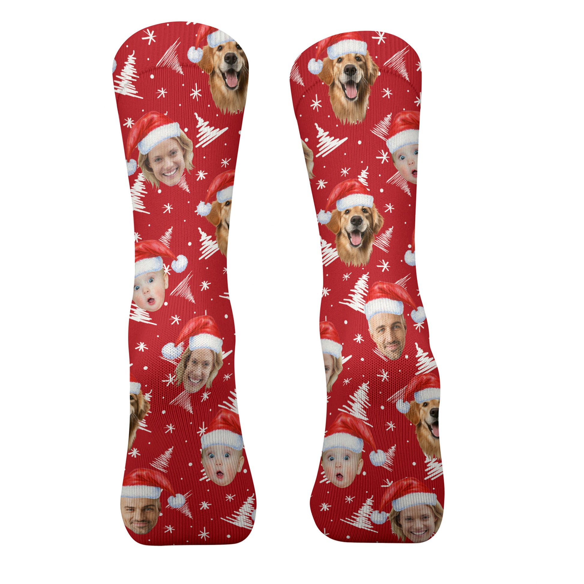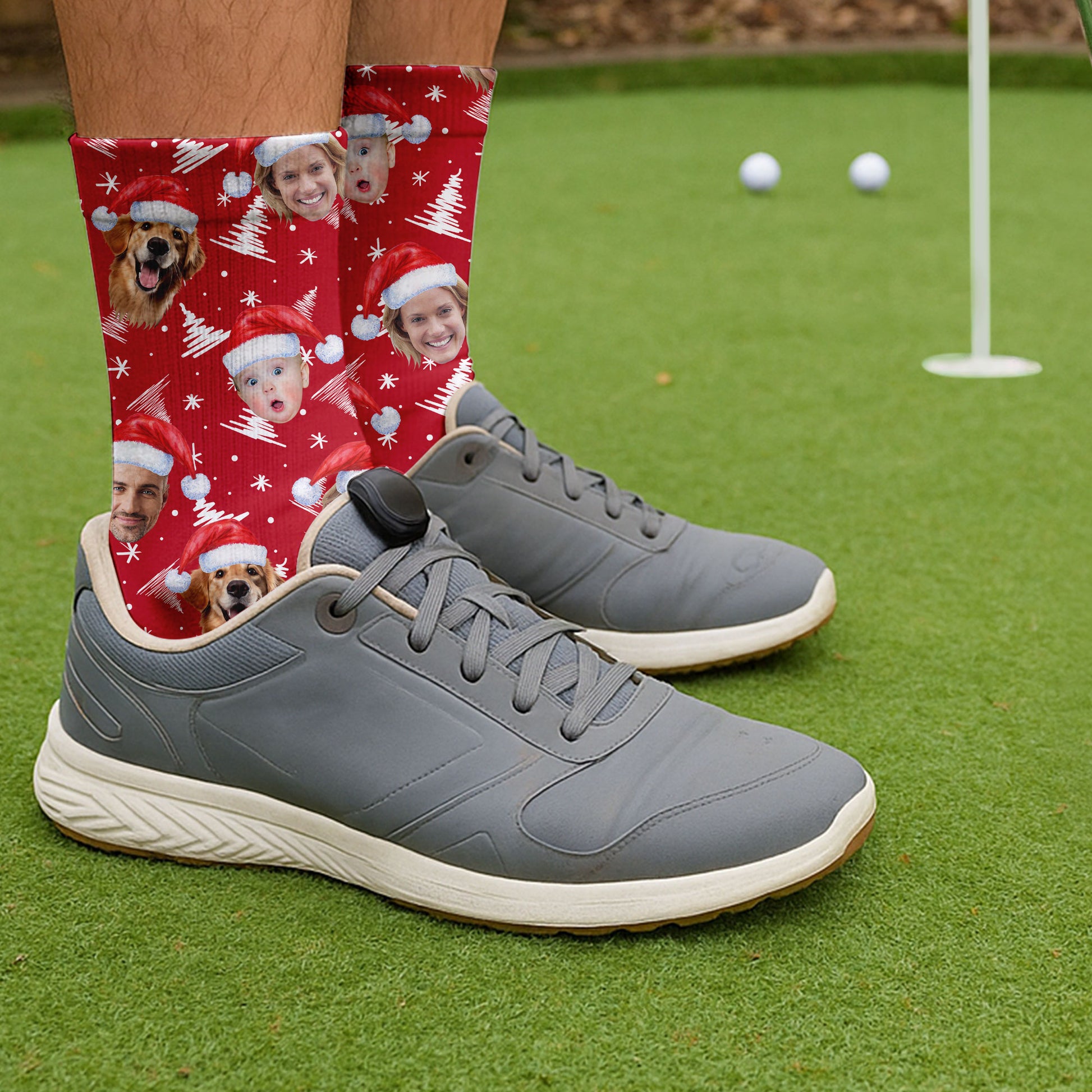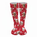 Custom Face Snow Pine Tree Red Golf Socks, Christmas Golf Gift, Custom Golf Accessories