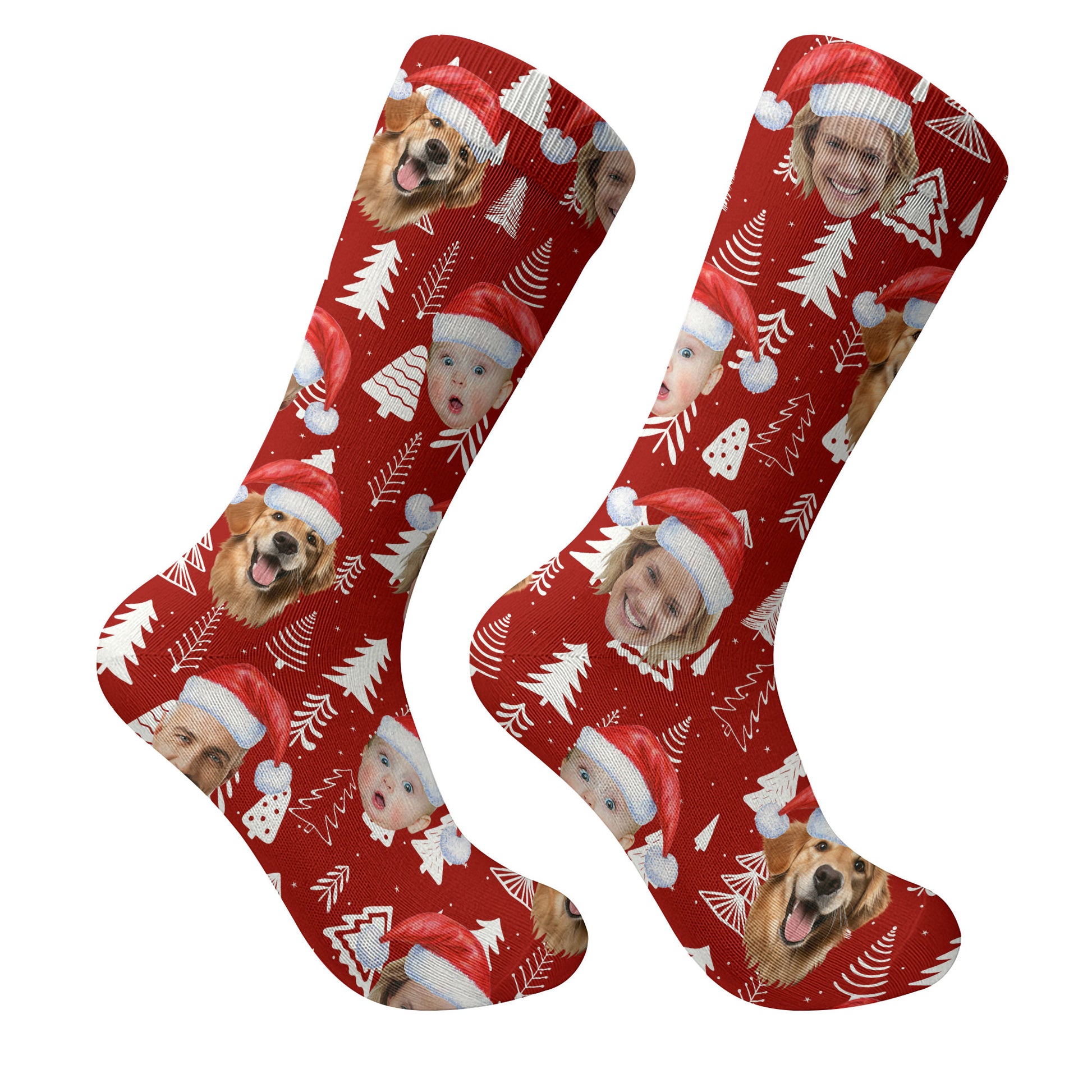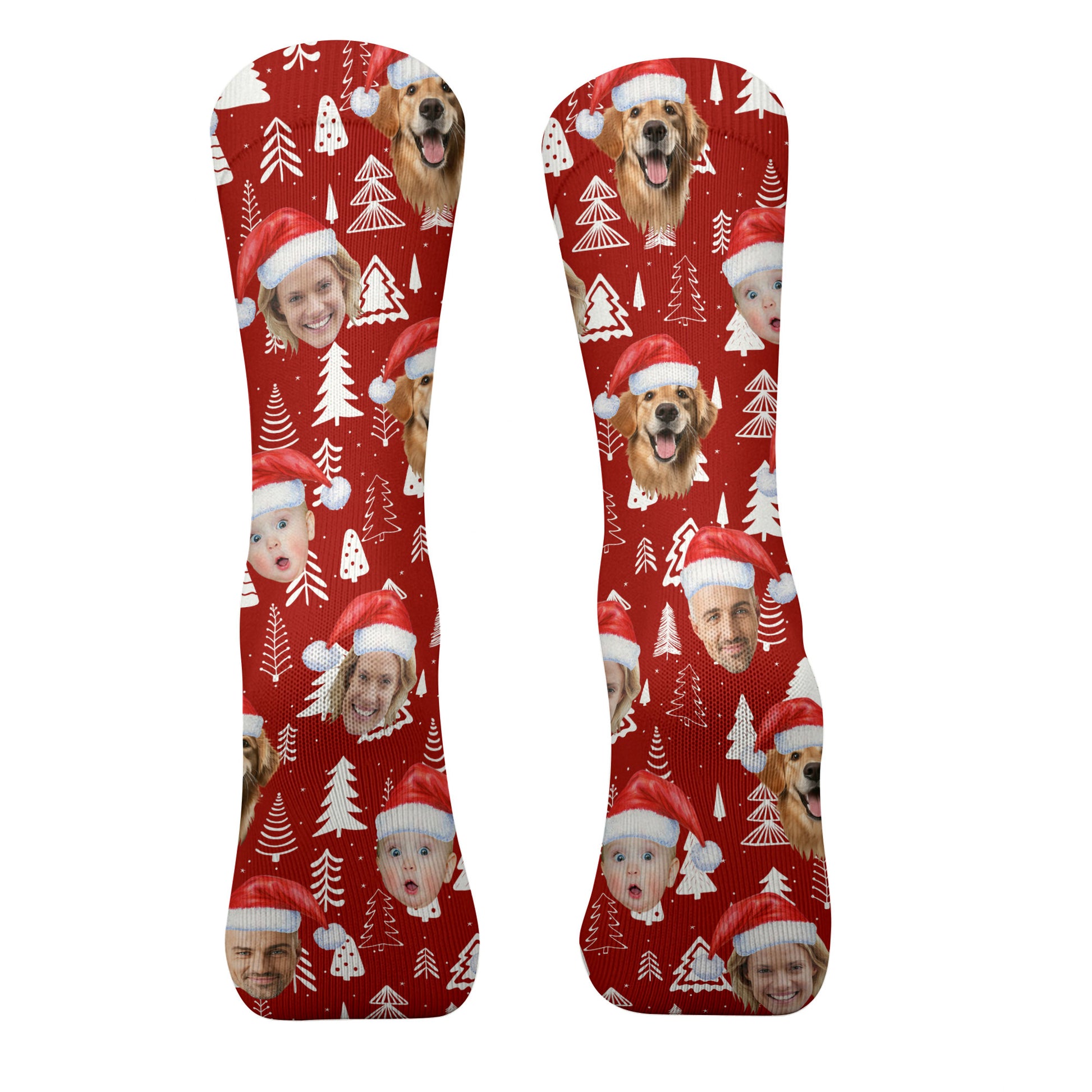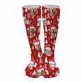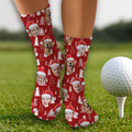 Custom Face Snow Pine Tree Red Golf Socks, Christmas Golf Socks, Golf Gift Idea