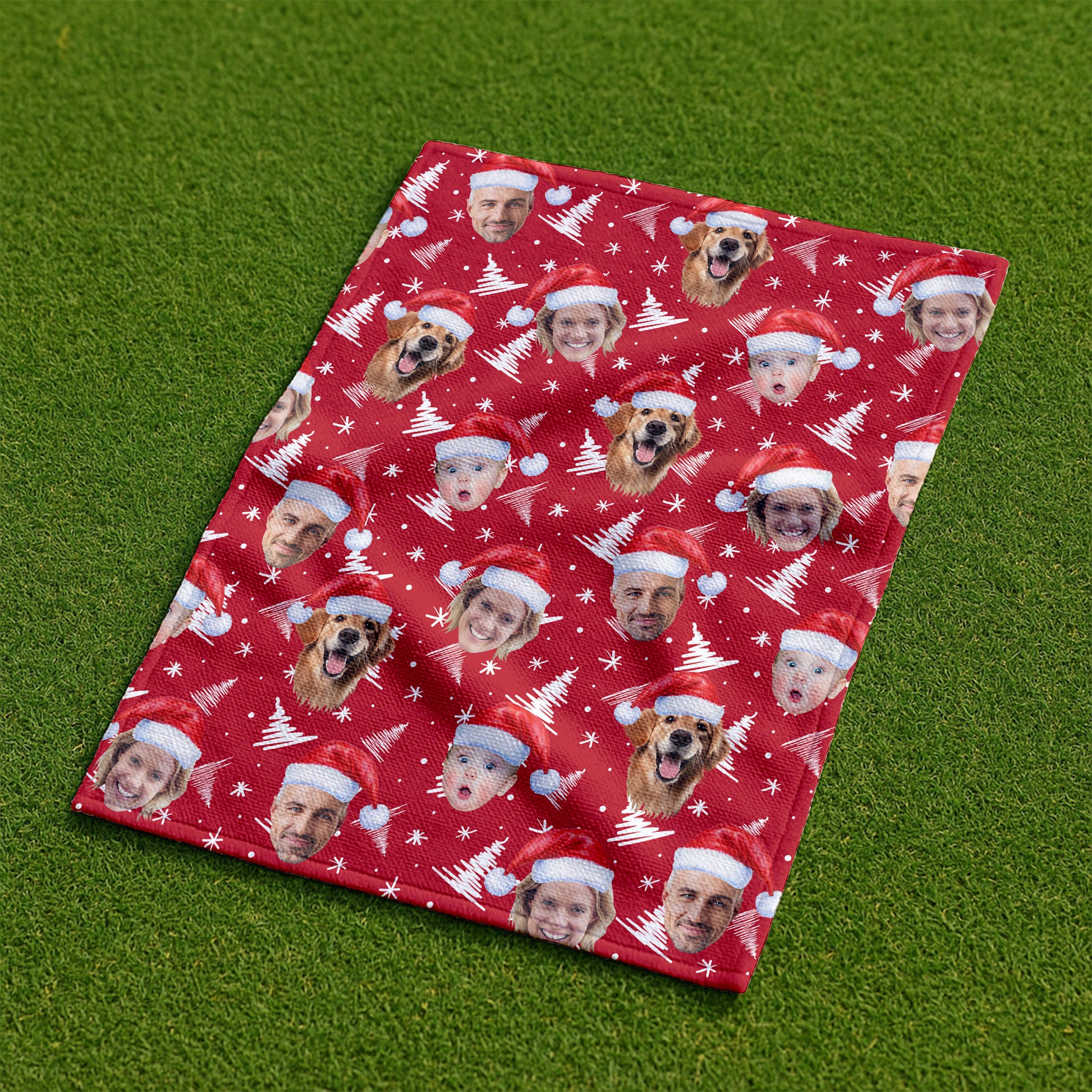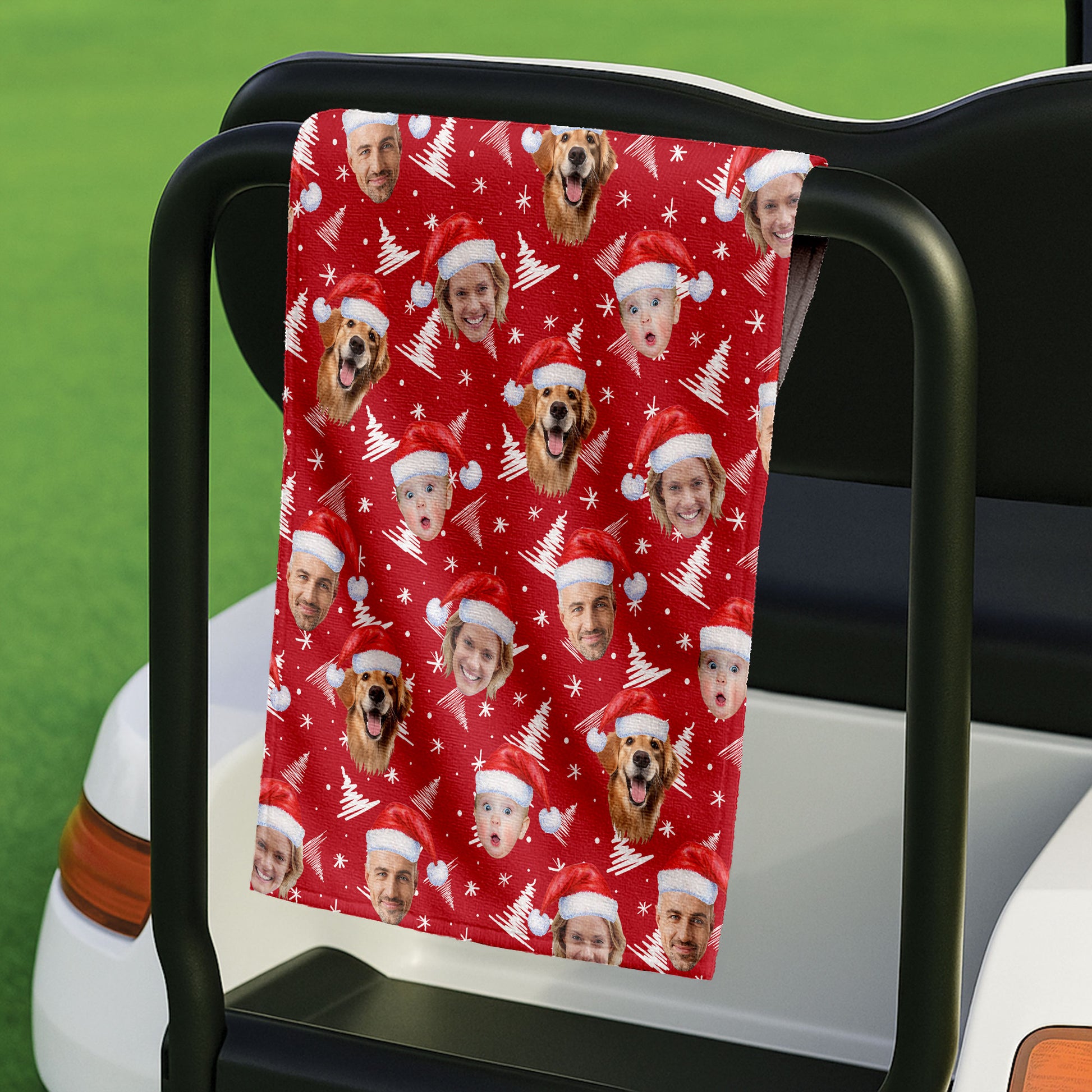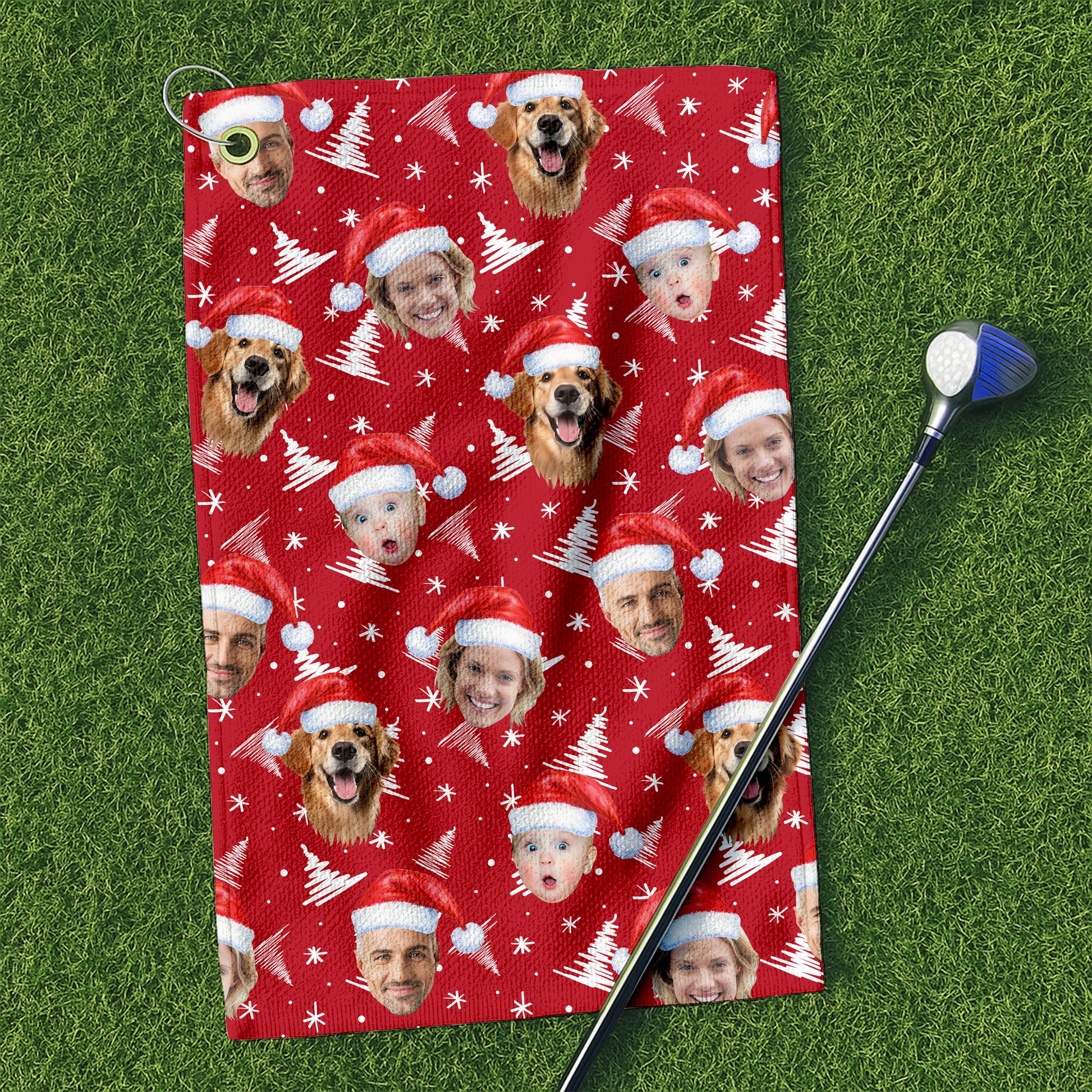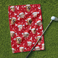 Custom Face Snow Pine Tree Red Golf Towels, Christmas Golf Gift, Custom Golf Accessories