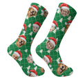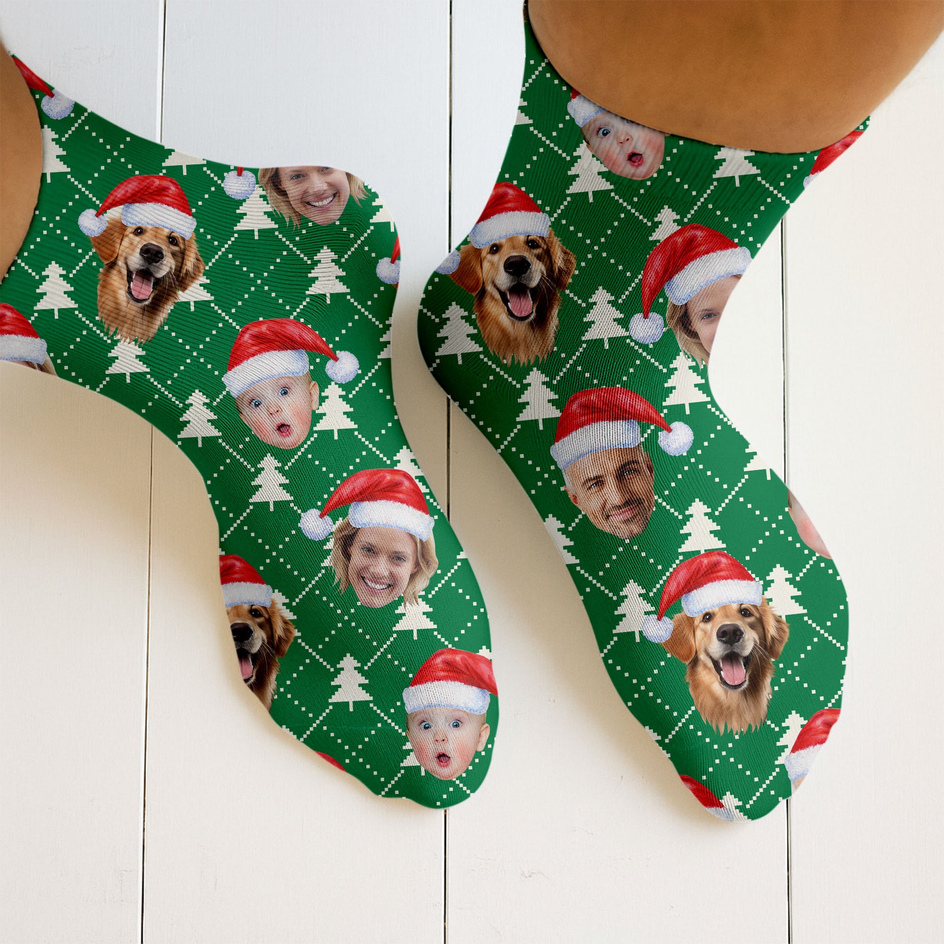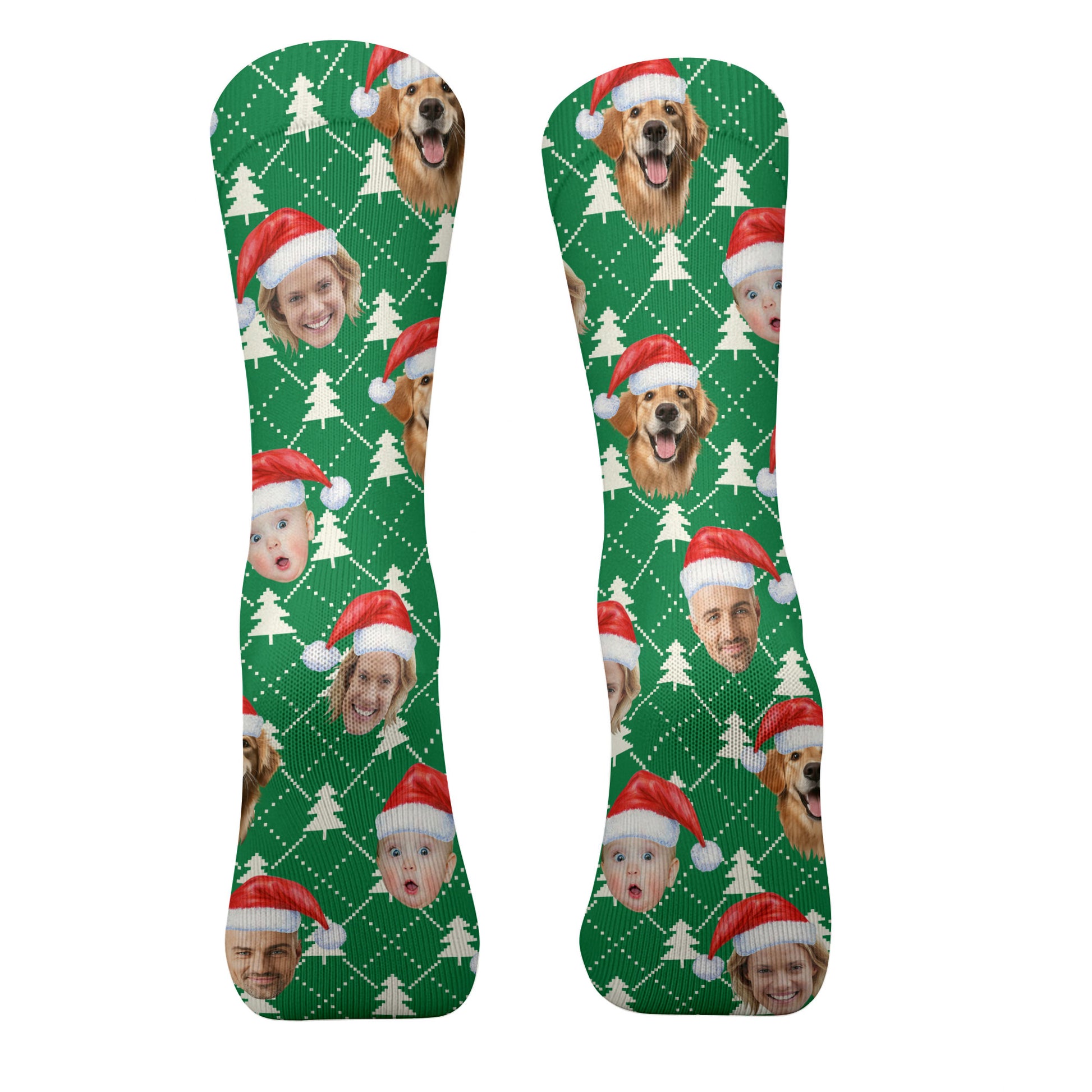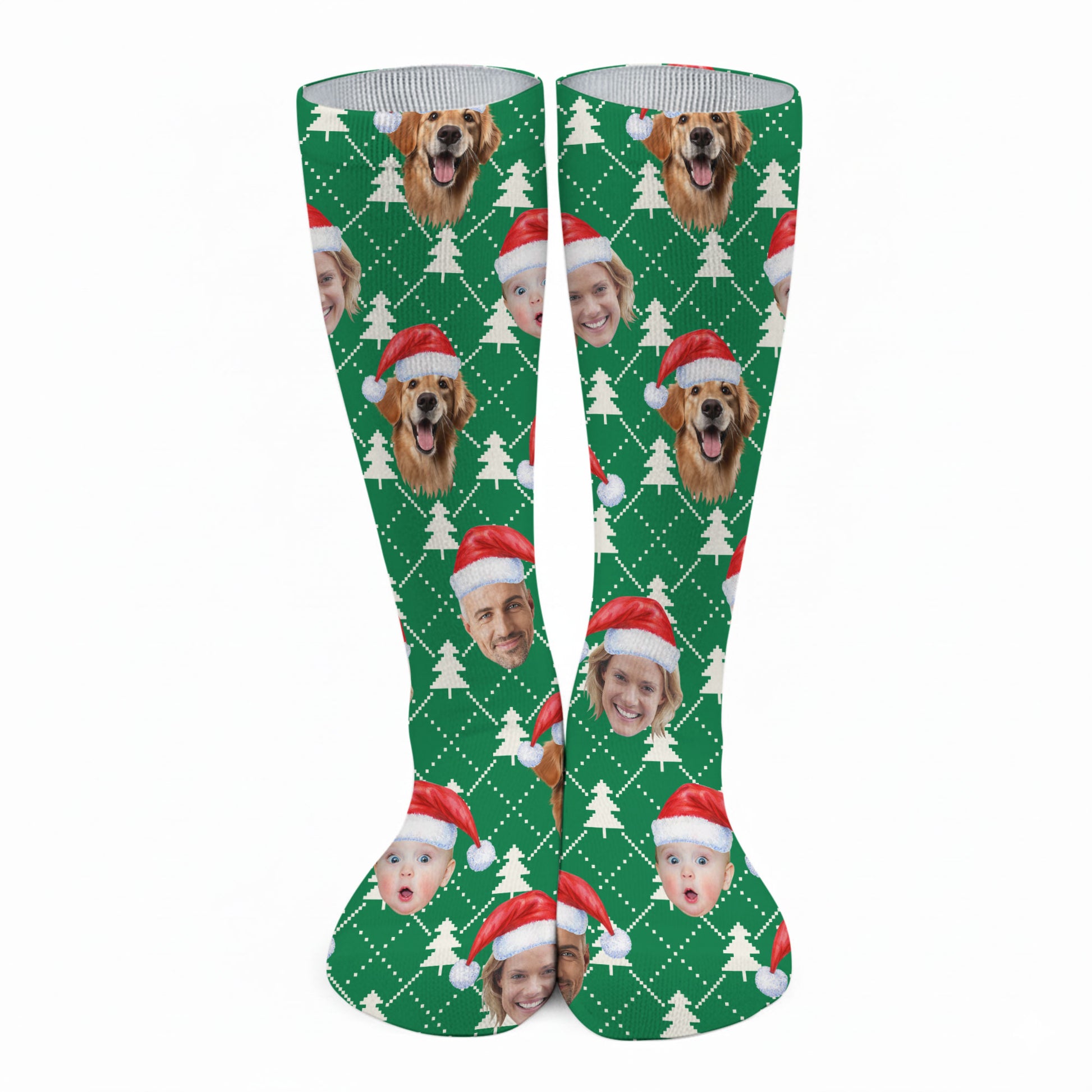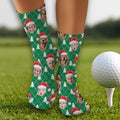 Custom Face Snow Pine Tree White Dotted Golf Socks, Christmas Golf Gift, Custom Golf Accessories