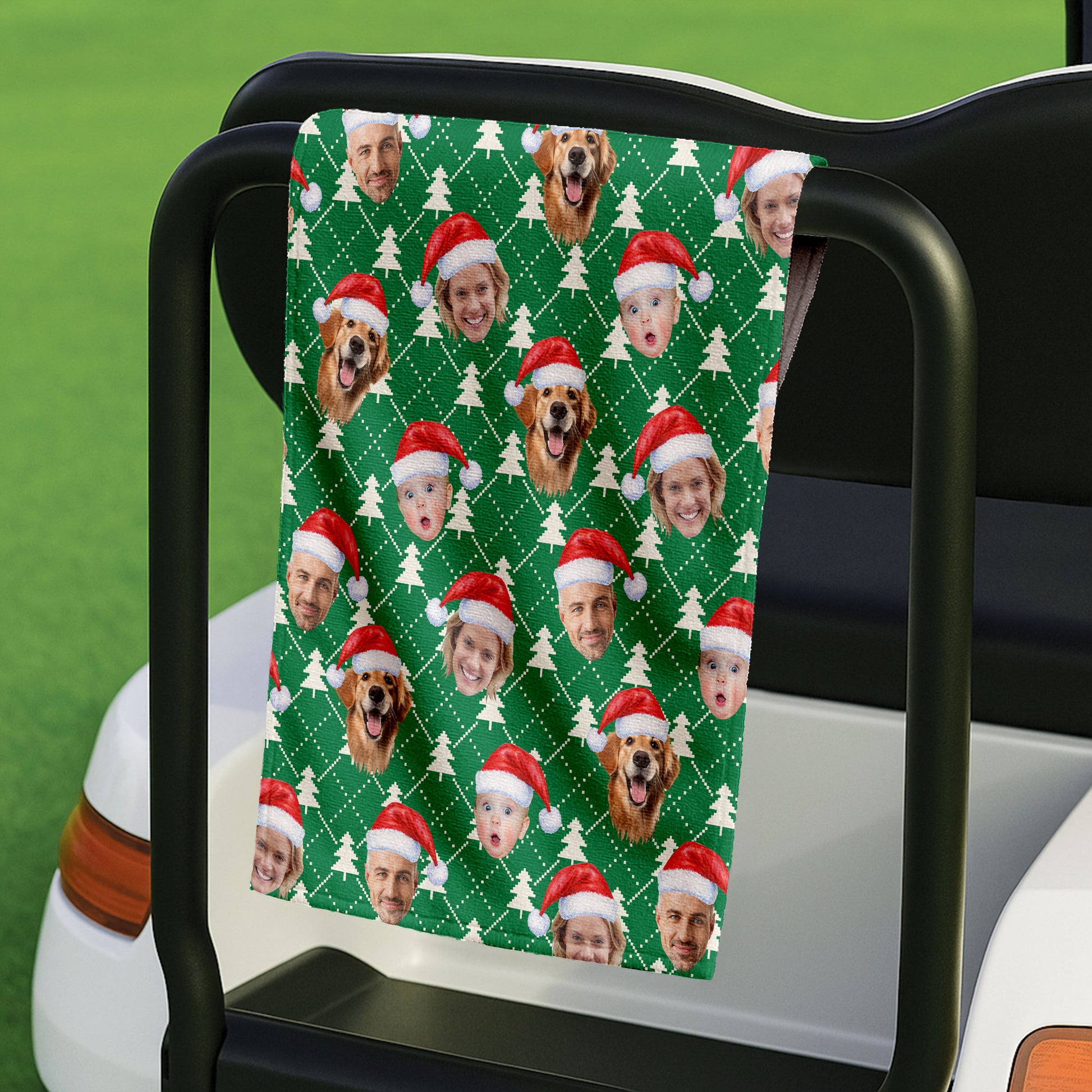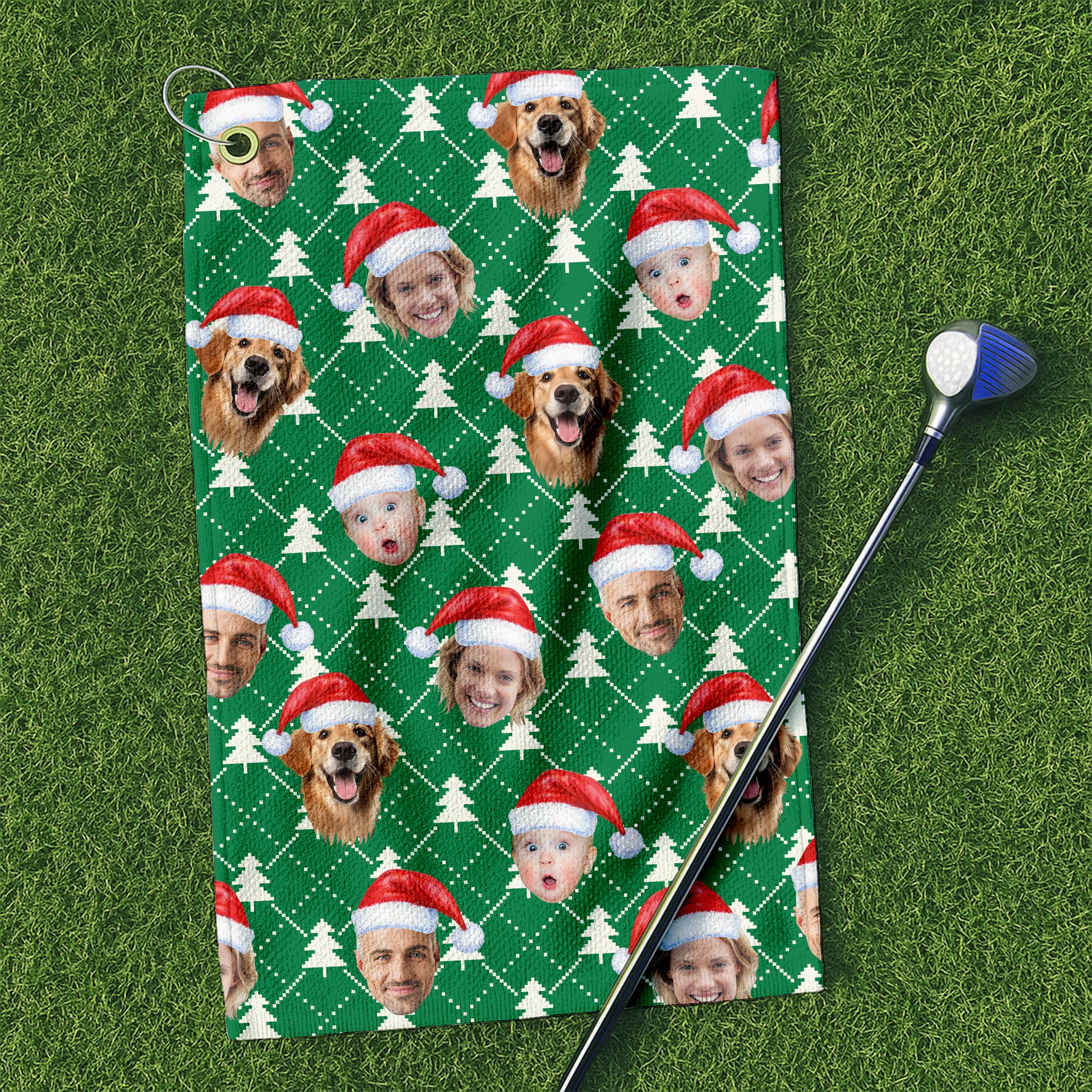 Custom Face Snow Pine Tree White Dotted Golf Towels, Christmas Golf Gift, Custom Golf Accessories