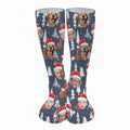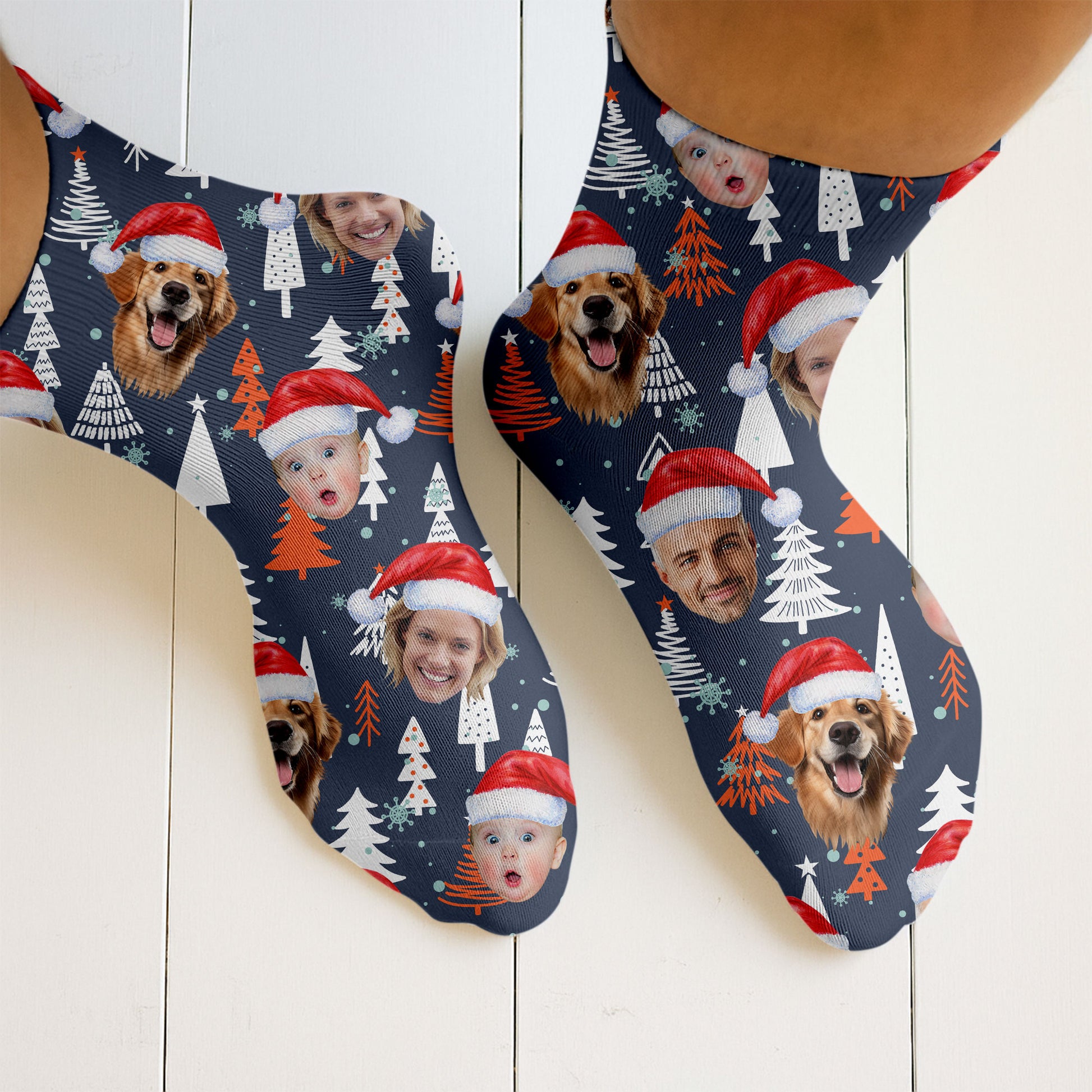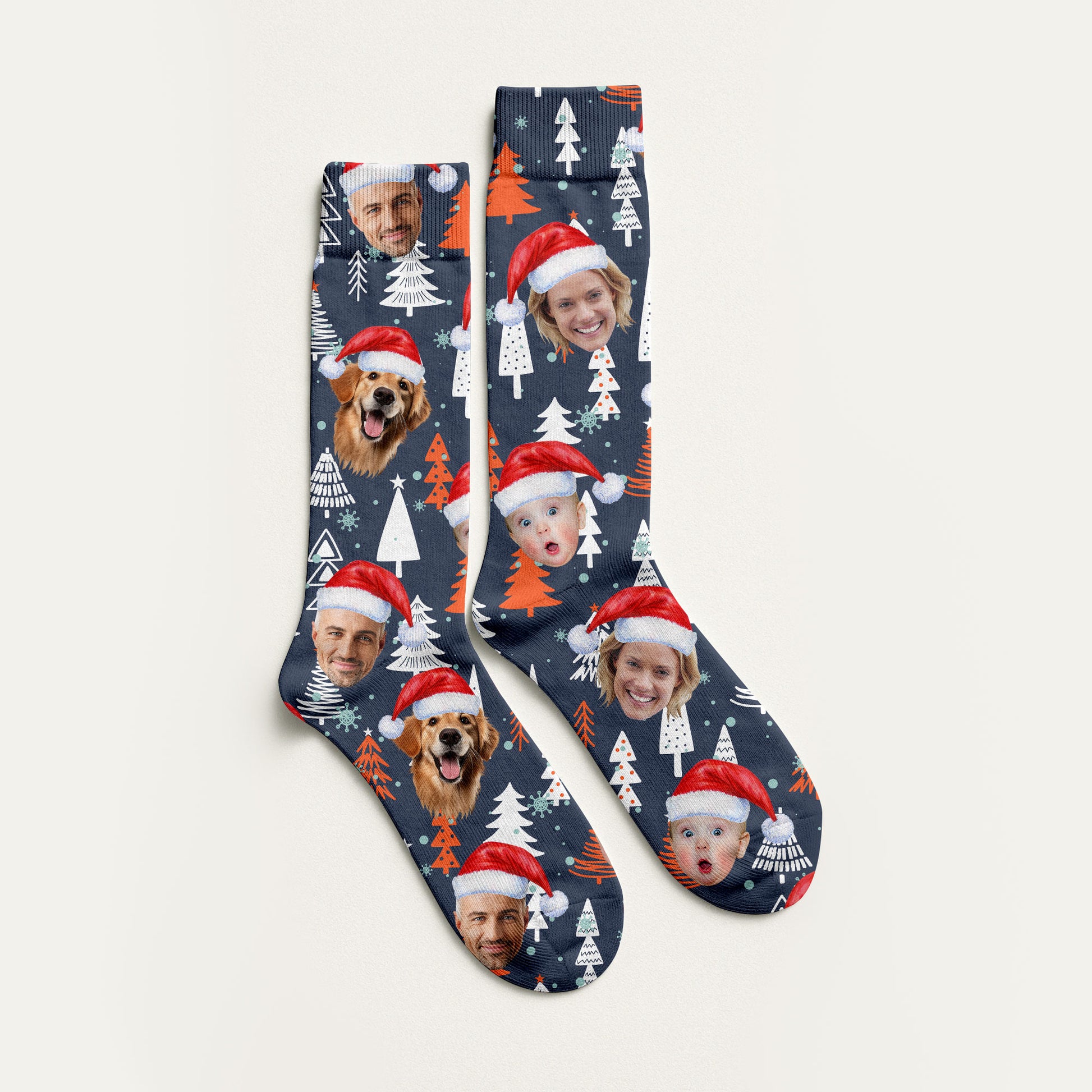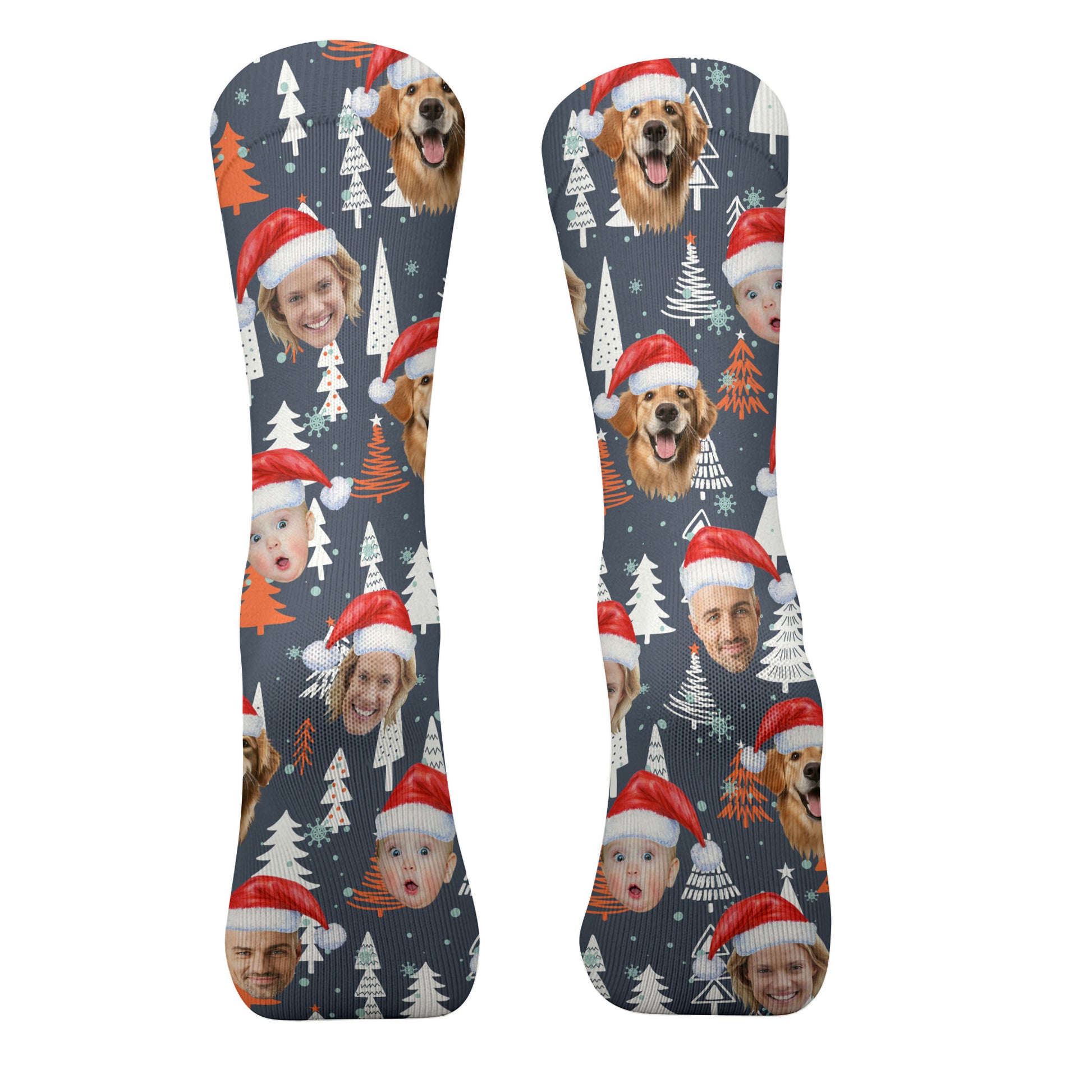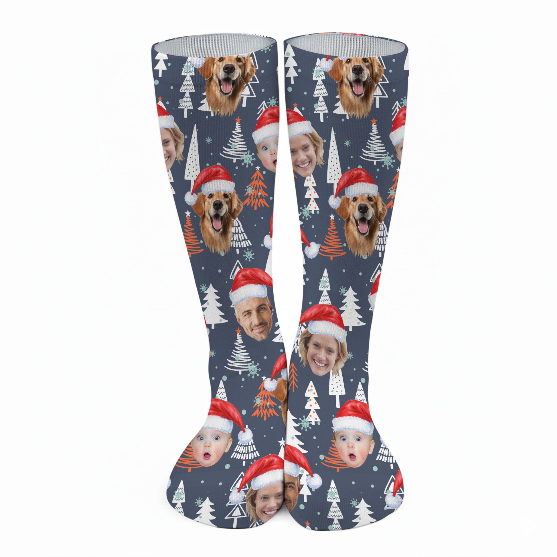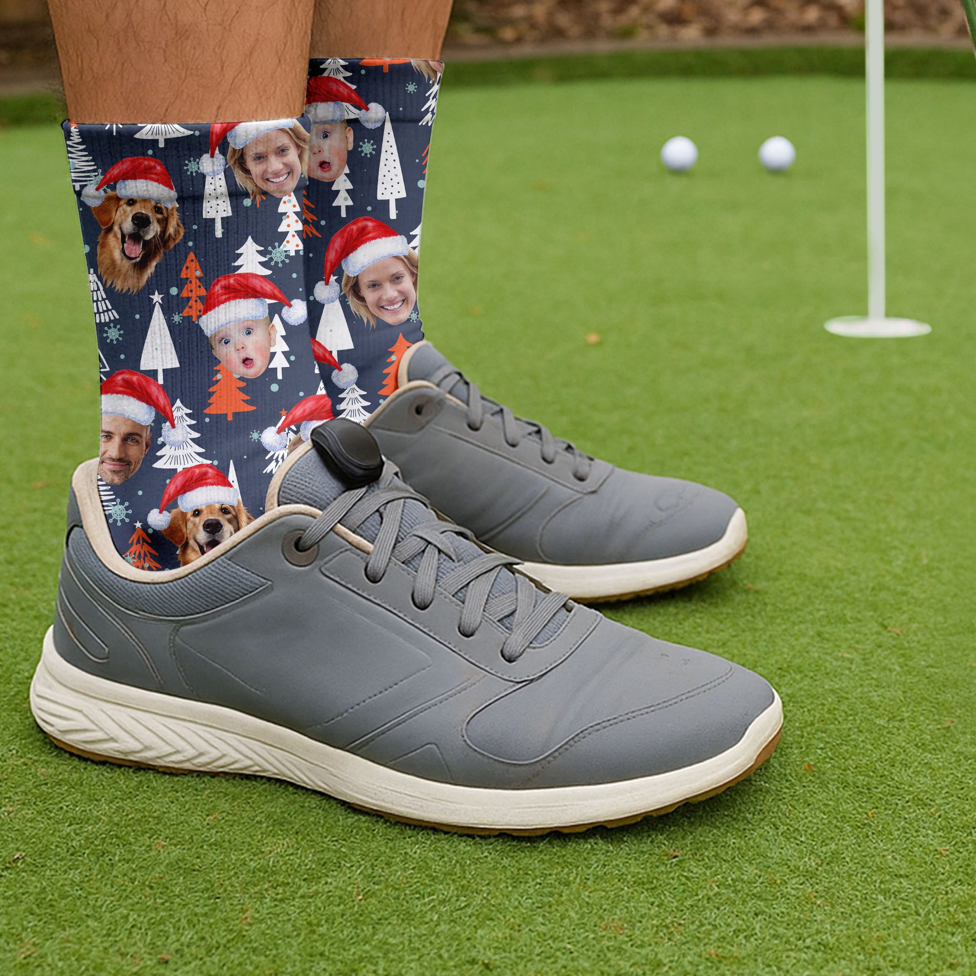 Custom Face White And Orange Xmas Pine Tree Golf Socks, Christmas Golf Gift, Custom Golf Accessories
