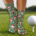 Custom Face Xmas Pine Tree Green Golf Socks, Christmas Golf Gift, Custom Golf Accessories
