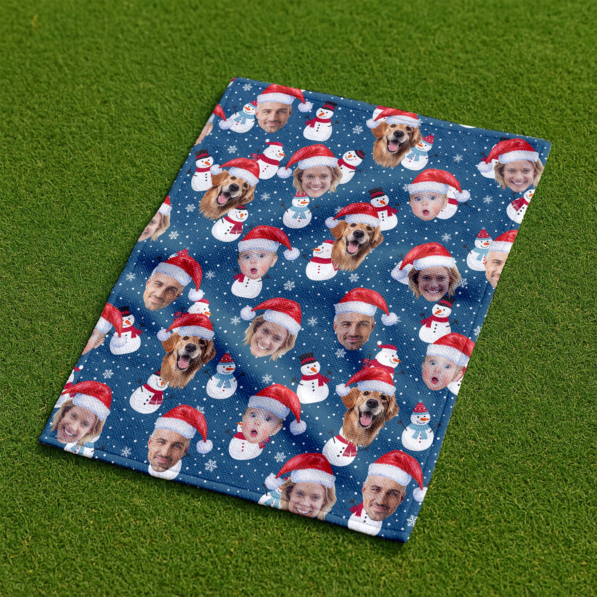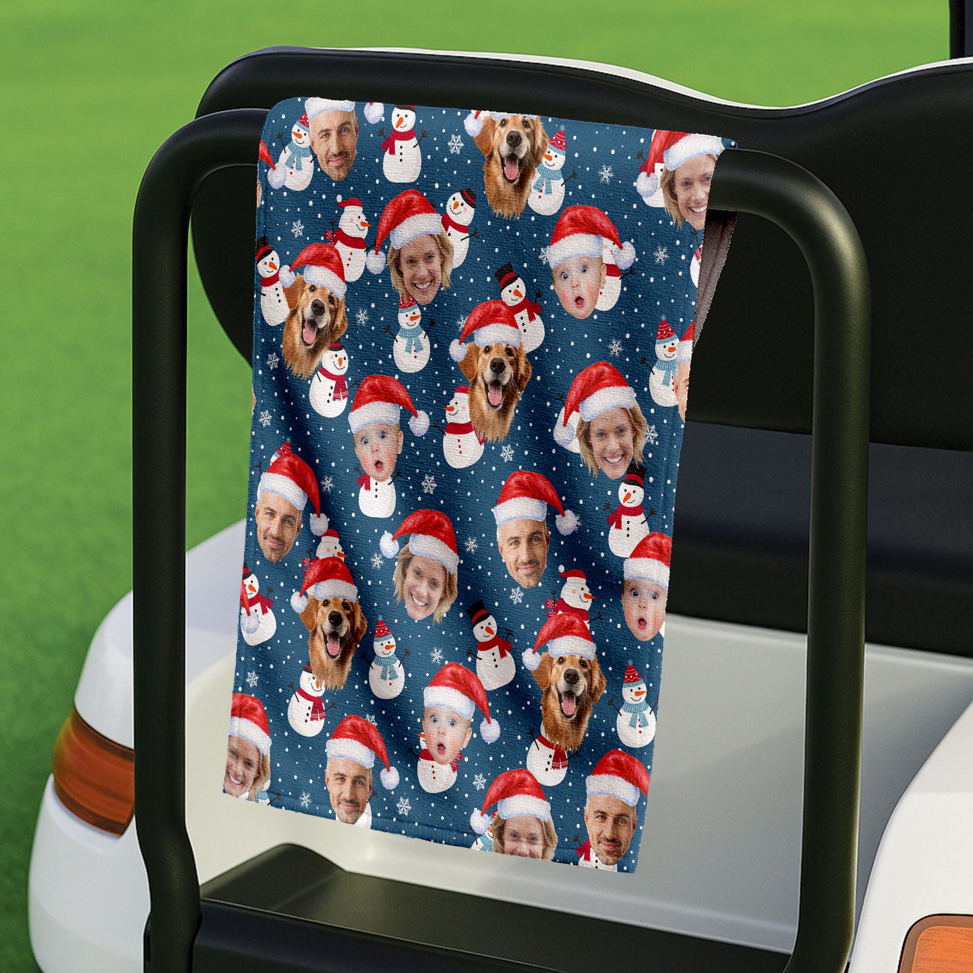 Custom Face Xmas Snowman Navy Golf Towels, Christmas Golf Gift, Custom Golf Accessories
