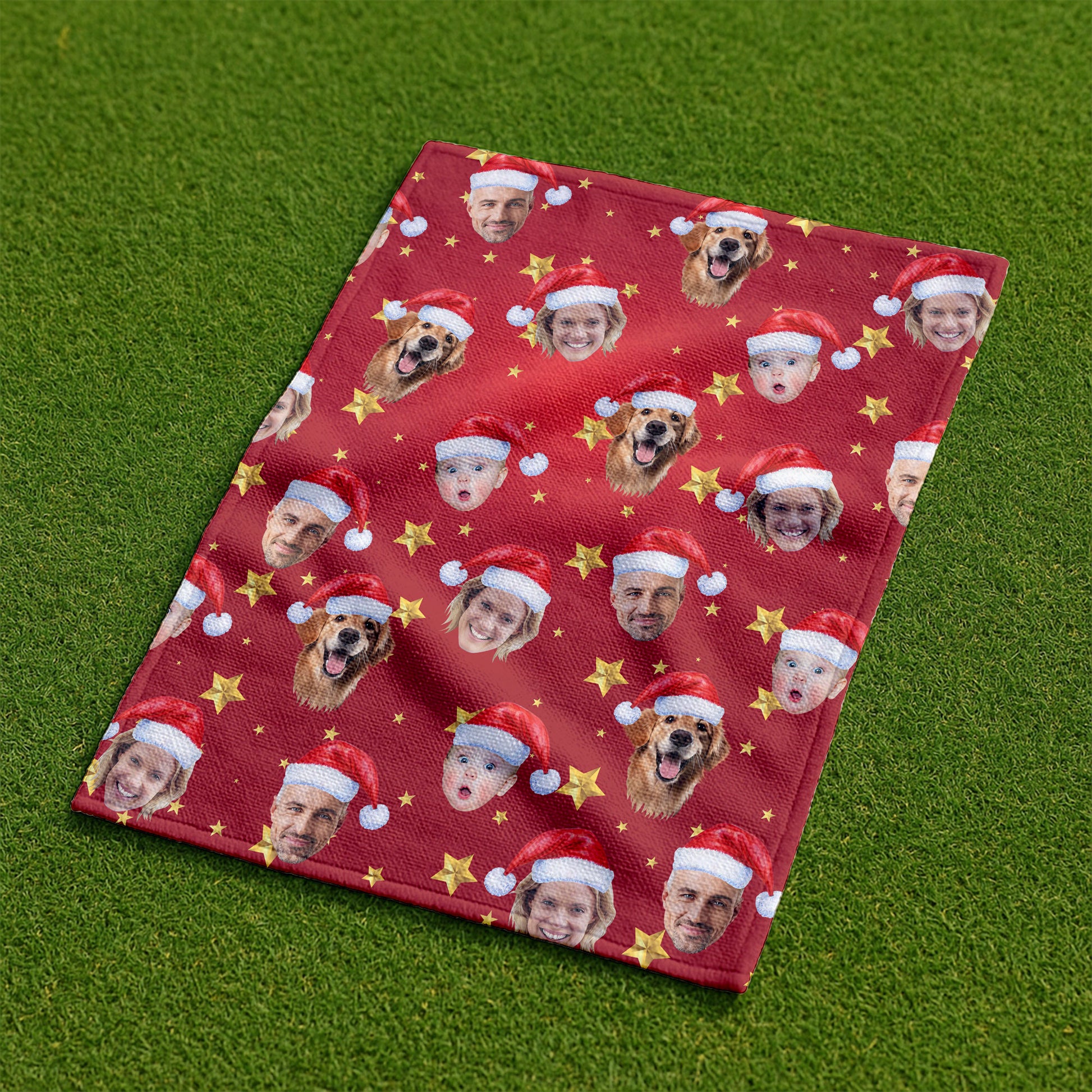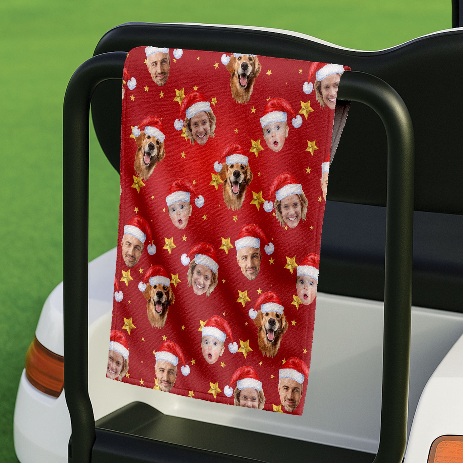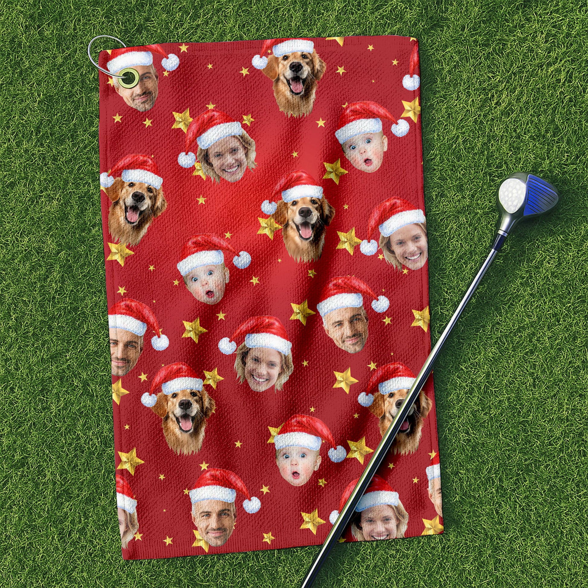 Custom Face Xmas Star Red Golf Towels, Christmas Golf Gift, Custom Golf Accessories