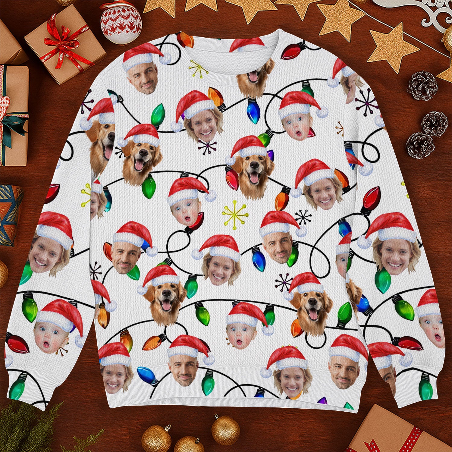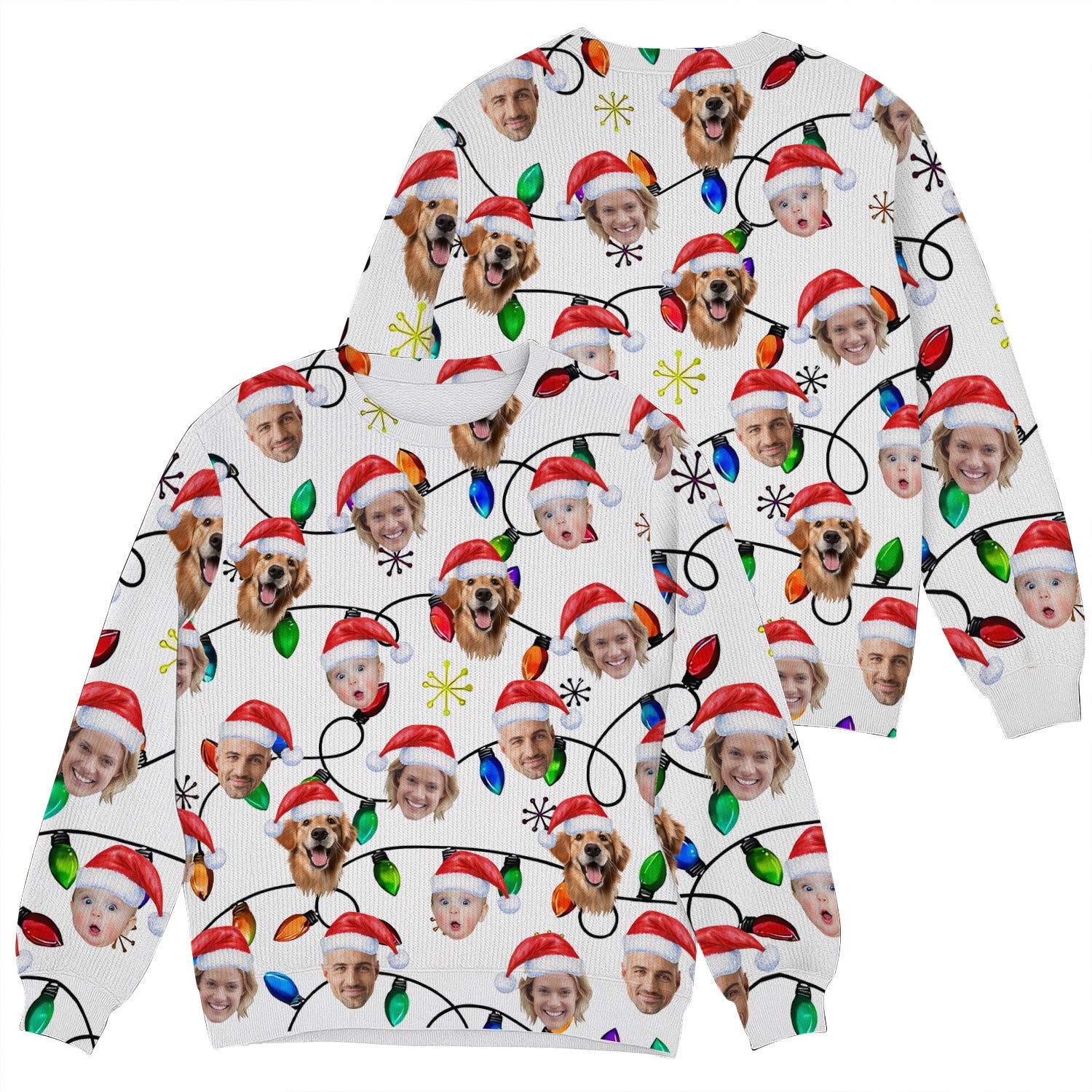 Custom Family Portrait Christmas Lights Pattern Vintage Print Ugly Sweater, Christmas Golf Shirt, Golf Sweater