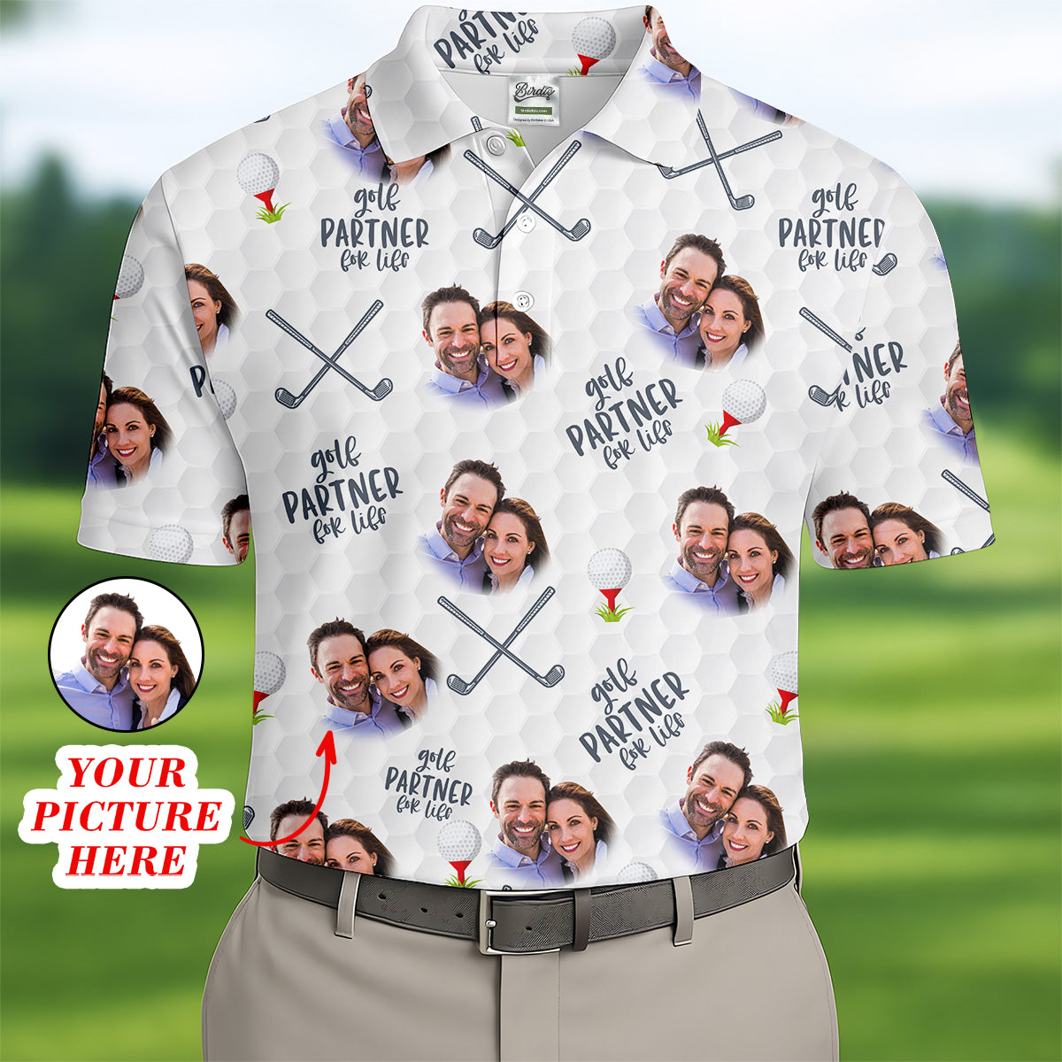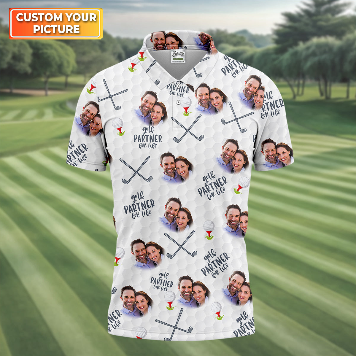 Personalized Golf Partner For Life Fun Golf Shirts Mens, Custom Face Golf Shirt, Golf Gift Ideas For Him,Matching Golf Shirts