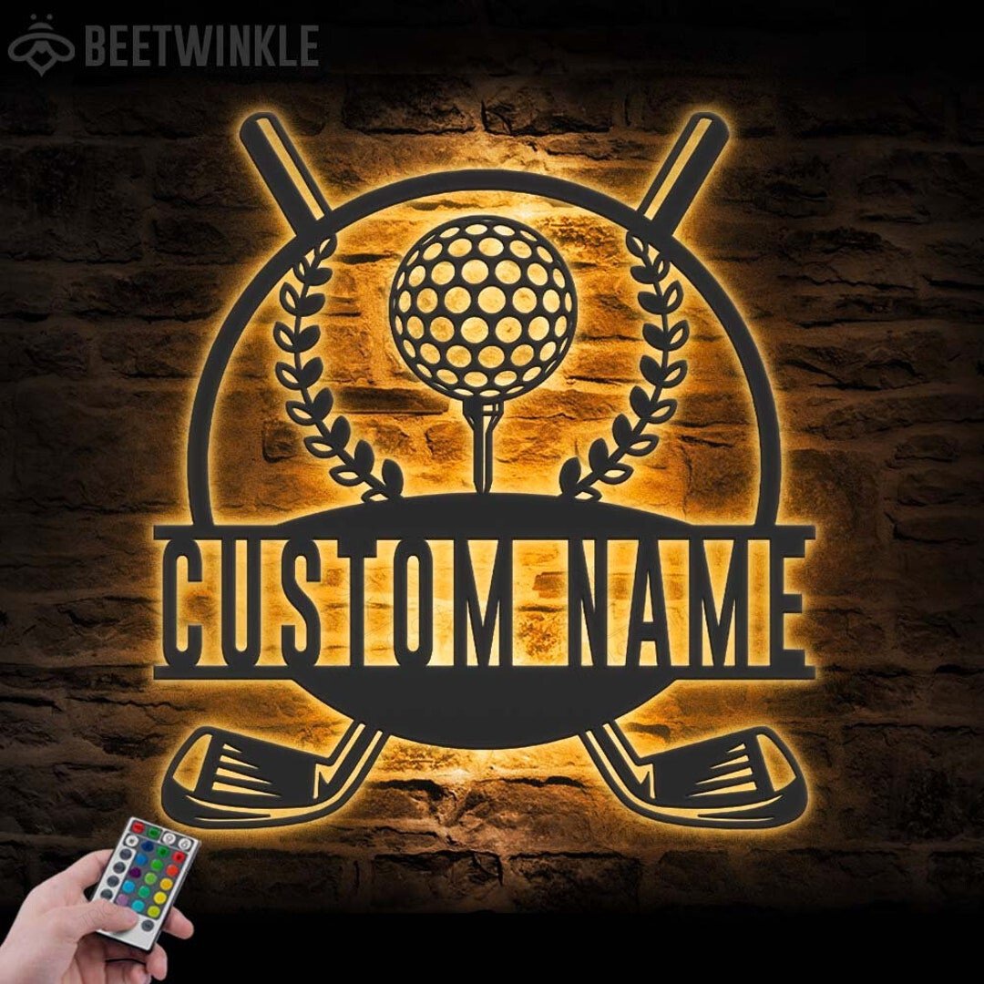 Make golf a part of your home décor with this unique Custom Golfing Cut Metal Sign. It's an ideal way to show off your golf prowess and make all golfers envious. The LED Wall Art LED Light provides just enough of a touch to add charm to any room. Personalize it with your Golfer Name Sign and really spruce up the golf course décor in your home or man cave. This Home Decor 19th Hole Golf Club Decoration is perfect for gifts too! Whether celebrating a birthday, Xmas, Housewarming, or just any special occasion, this golf club metal sign will surely stand out among other presents!